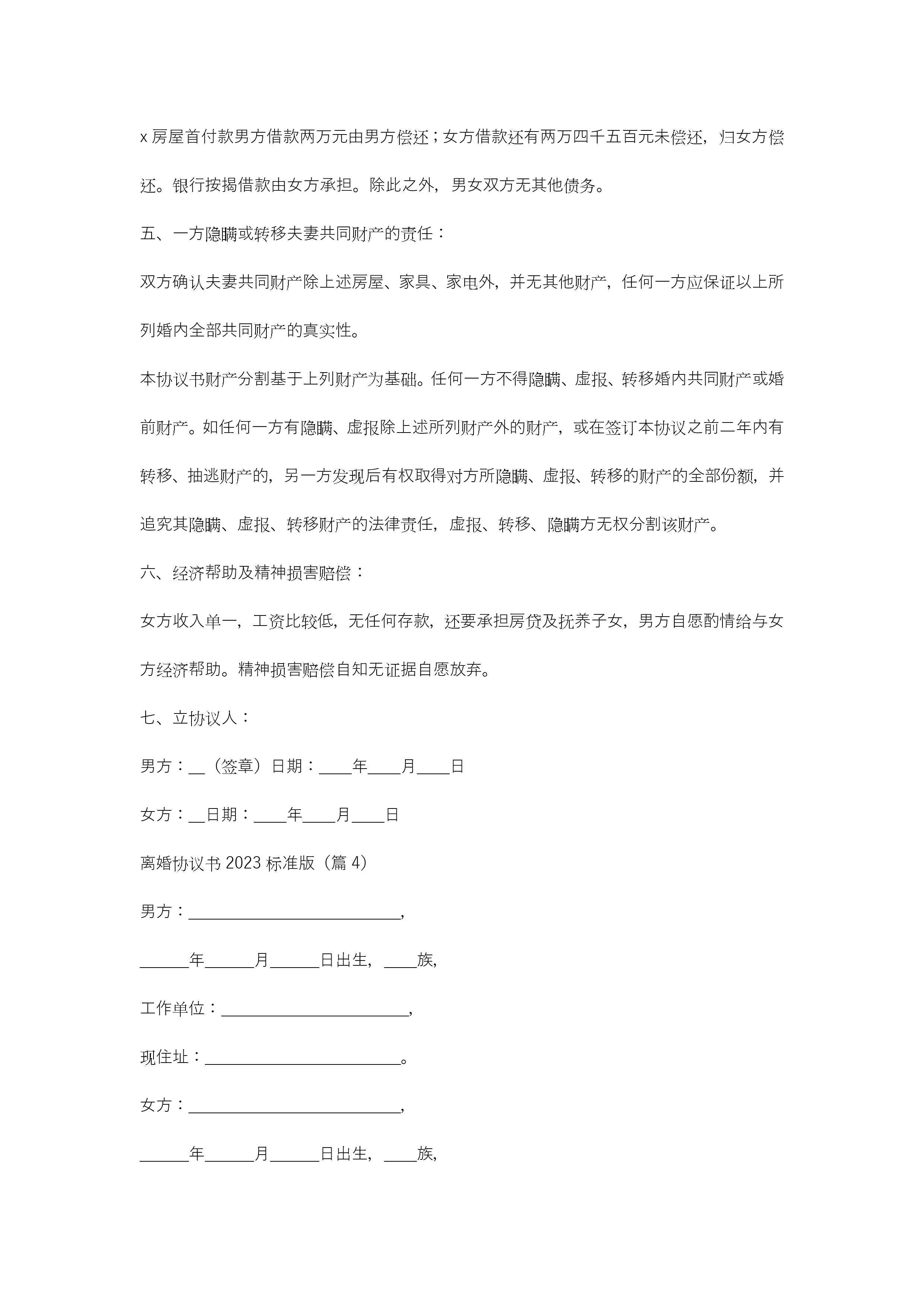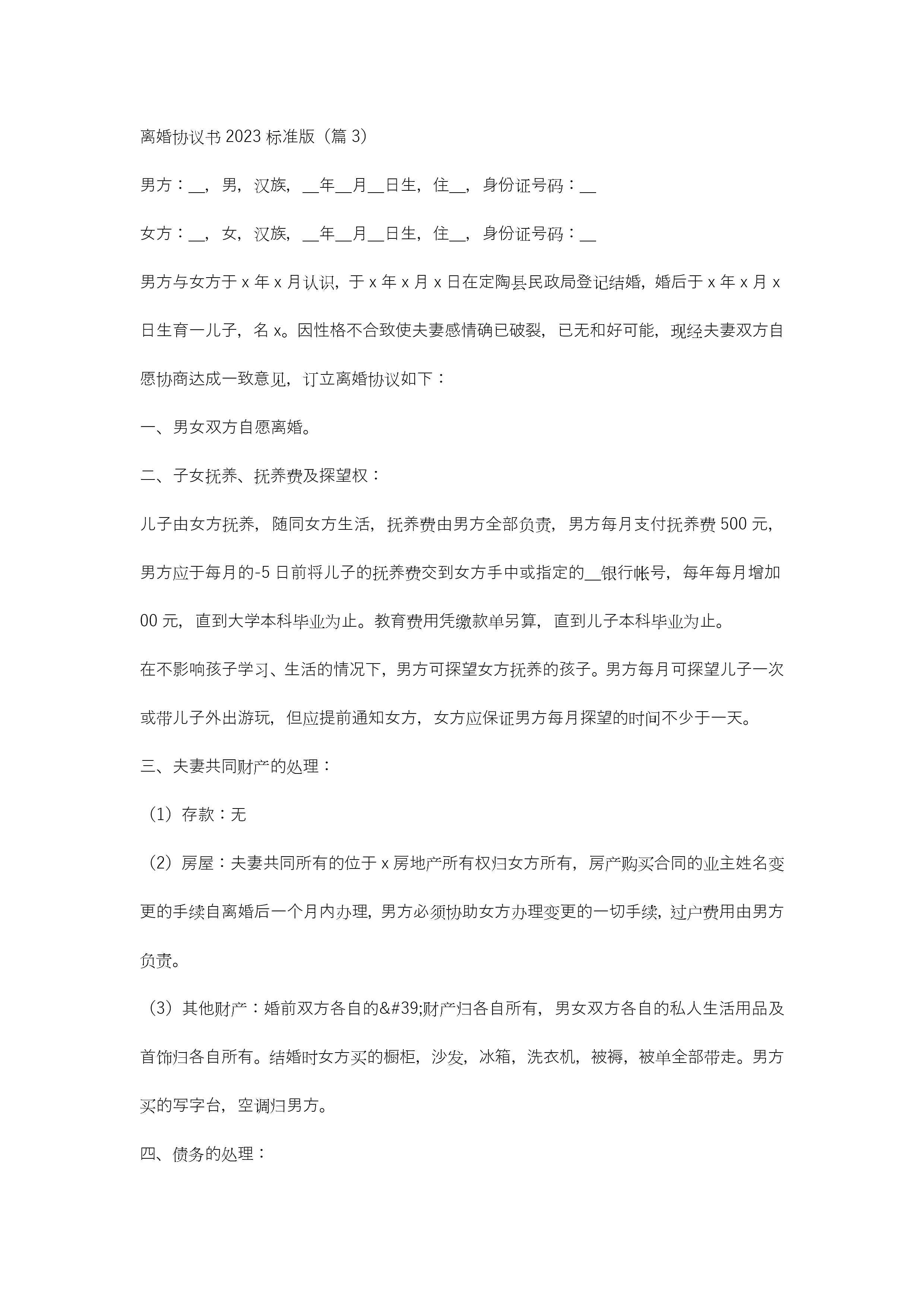 离婚协议书2023标准版(10篇)精选jugei3月21日 19:46更新关注415 离婚协议书2023标准版(10篇)精选此内容为付费资源,请付费后查看¥10.9 单篇文档限时特惠¥15个人会员开通企业会员开通立即下载无需登陆!可直接快捷下载单个模板付费资源© 版权声明THE ENDWord模板# 实用文档# 实用模板# 合同模板# 合同范本 如有问题,可点击最底部“联系我们”联系客服 分享QQ空间微博QQ好友海报分享复制链接收藏