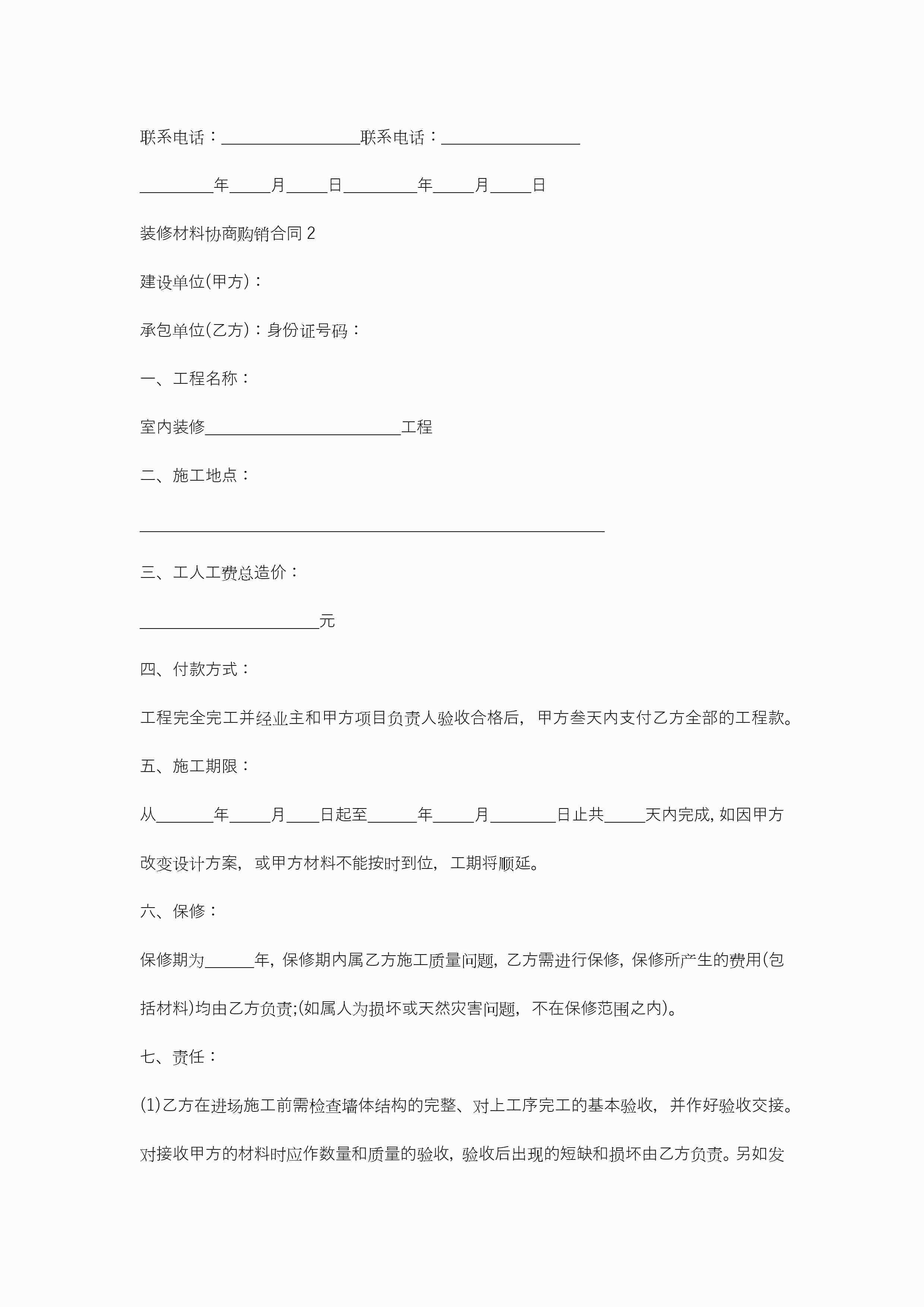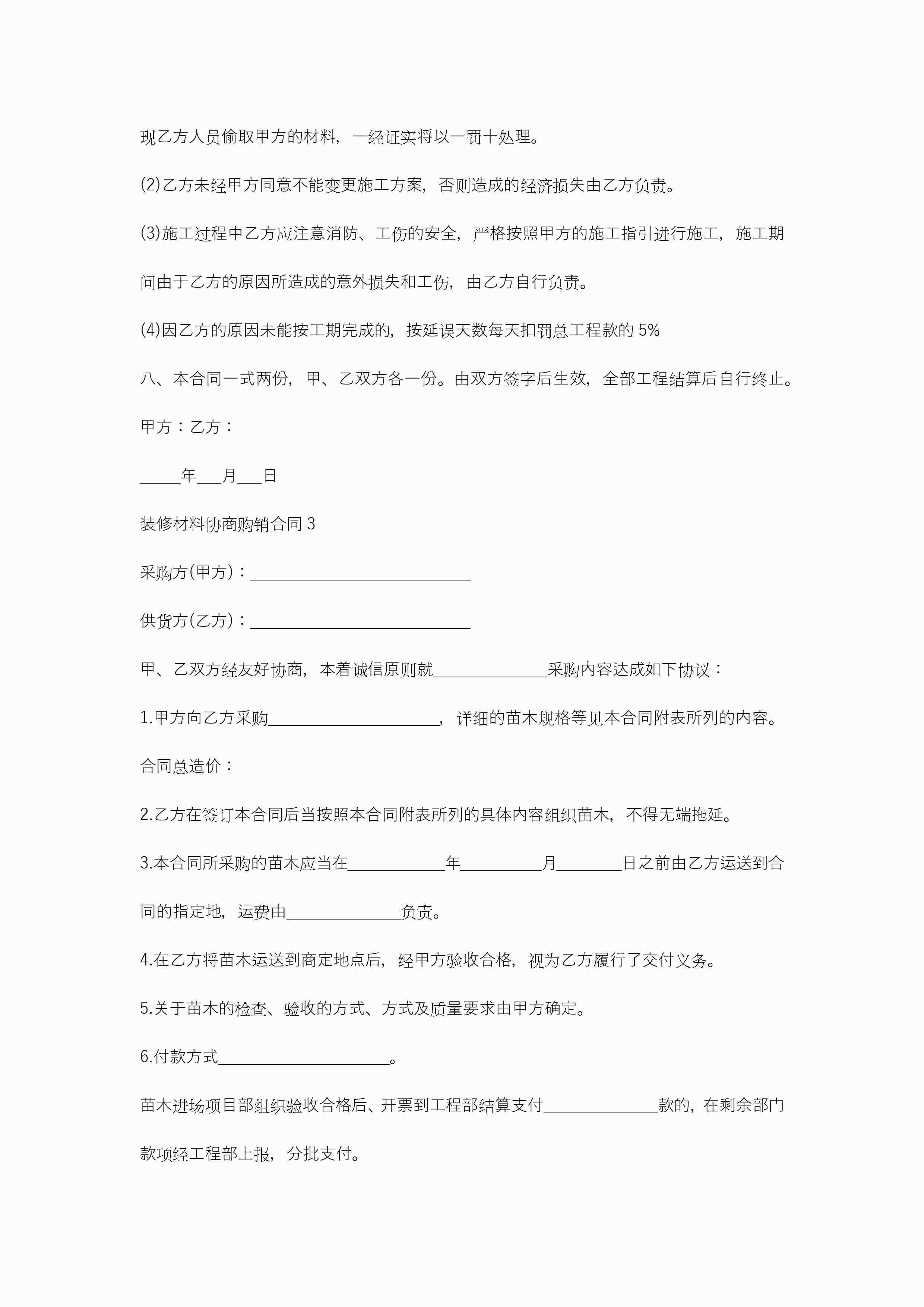 装修材料协商购销合同5篇jugei3月21日 19:46更新关注368 装修材料协商购销合同5篇此内容为付费资源,请付费后查看¥10.9 单篇文档限时特惠¥15个人会员开通企业会员开通立即下载无需登陆!可直接快捷下载单个模板付费资源© 版权声明THE ENDWord模板# 实用文档# 合同模板# 合同范本# 装修材料协商购销合同 如有问题,可点击最底部“联系我们”联系客服 分享QQ空间微博QQ好友海报分享复制链接收藏