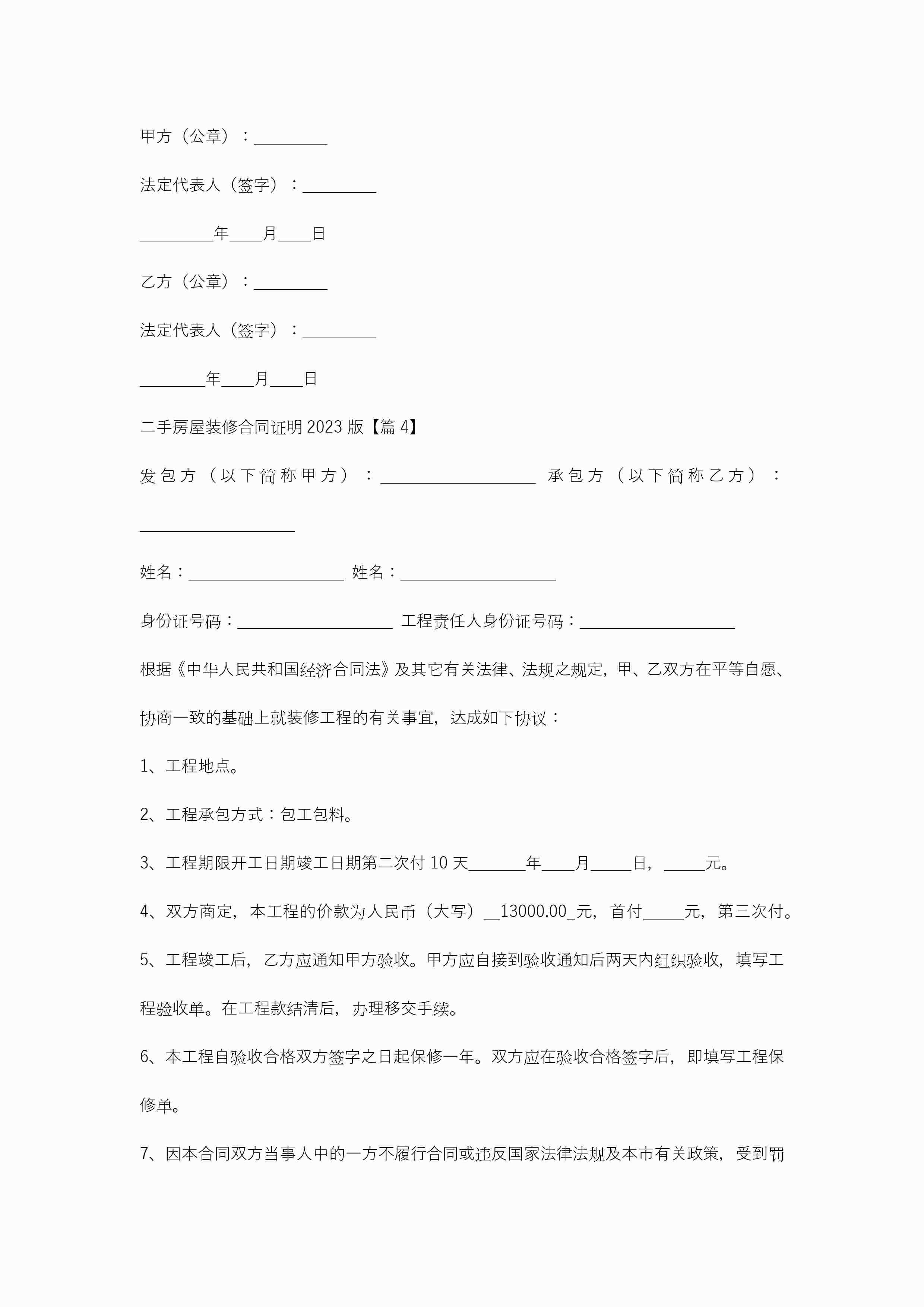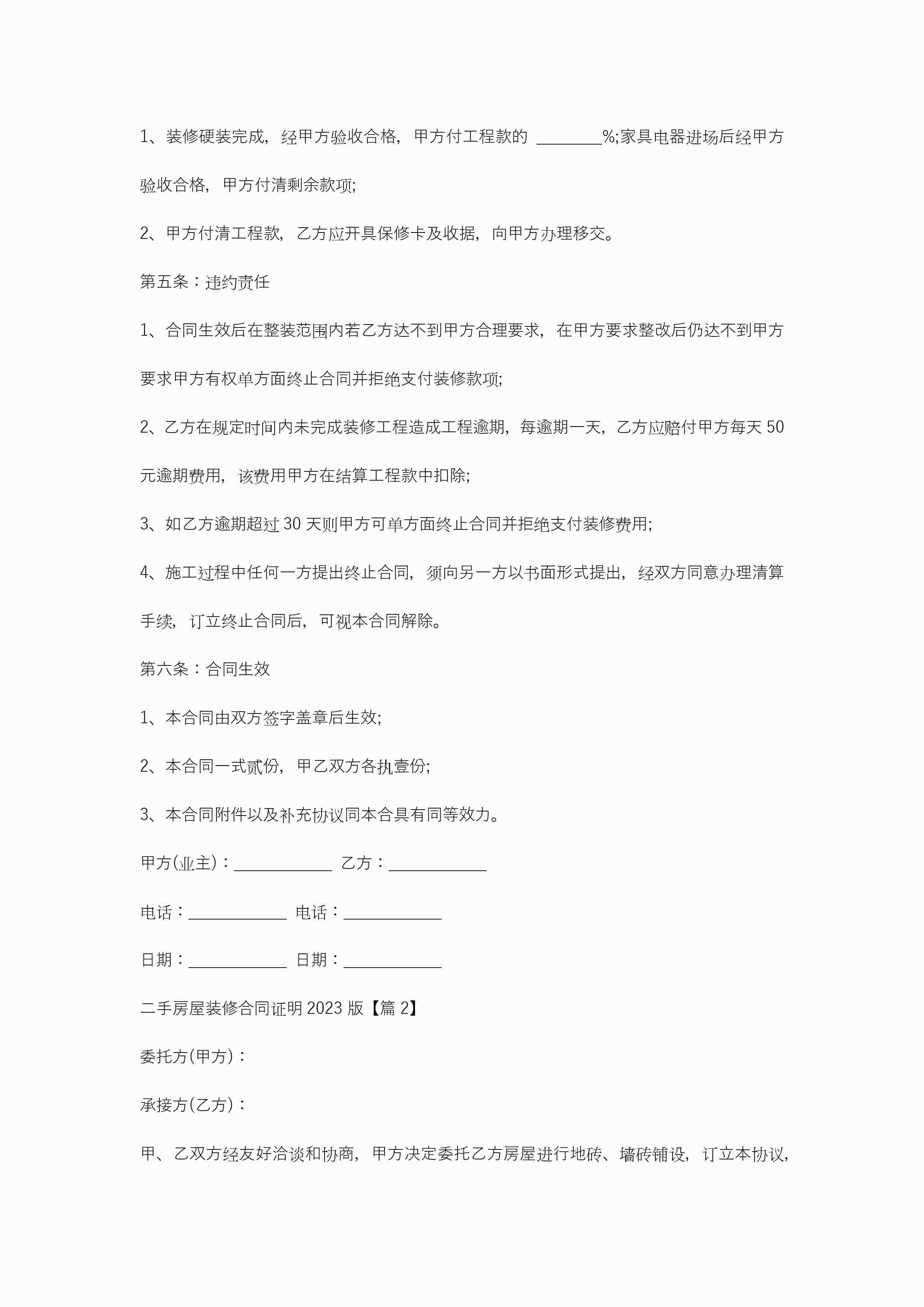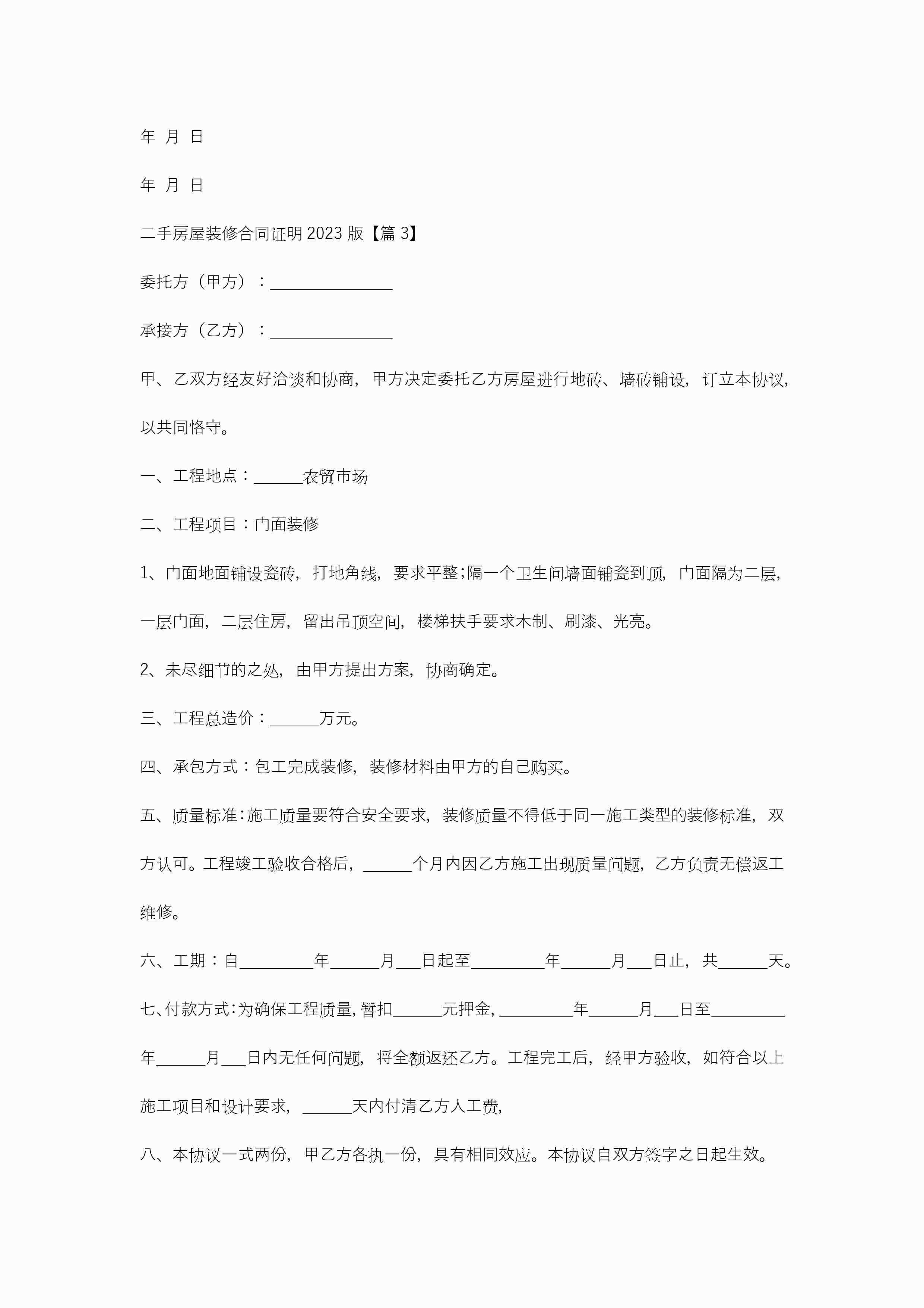 二手房屋装修合同证明2023版(精选8篇)jugei3月21日 19:47更新关注511 二手房屋装修合同证明2023版(精选8篇)此内容为付费资源,请付费后查看¥10.9 单篇文档限时特惠¥15个人会员开通企业会员开通立即下载无需登陆!可直接快捷下载单个模板付费资源© 版权声明THE ENDWord模板# 实用文档# 实用模板# 合同模板# 合同范本 如有问题,可点击最底部“联系我们”联系客服 分享QQ空间微博QQ好友海报分享复制链接收藏