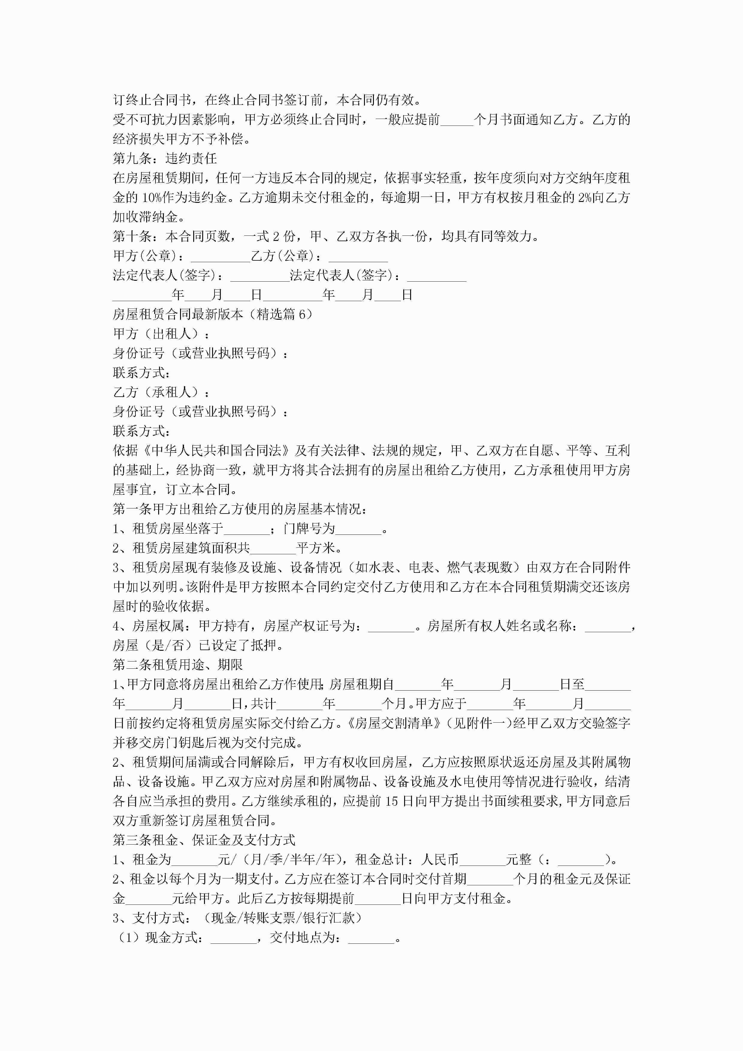 房屋租赁合同最新版本(十篇)jugei3月22日 00:34更新关注382 房屋租赁合同最新版本(十篇)此内容为付费资源,请付费后查看¥10.9 单篇文档限时特惠¥15个人会员开通企业会员开通立即下载无需登陆!可直接快捷下载单个模板付费资源© 版权声明THE ENDWord模板# 实用文档# 实用模板# 合同模板# 合同范本 如有问题,可点击最底部“联系我们”联系客服 分享QQ空间微博QQ好友海报分享复制链接收藏