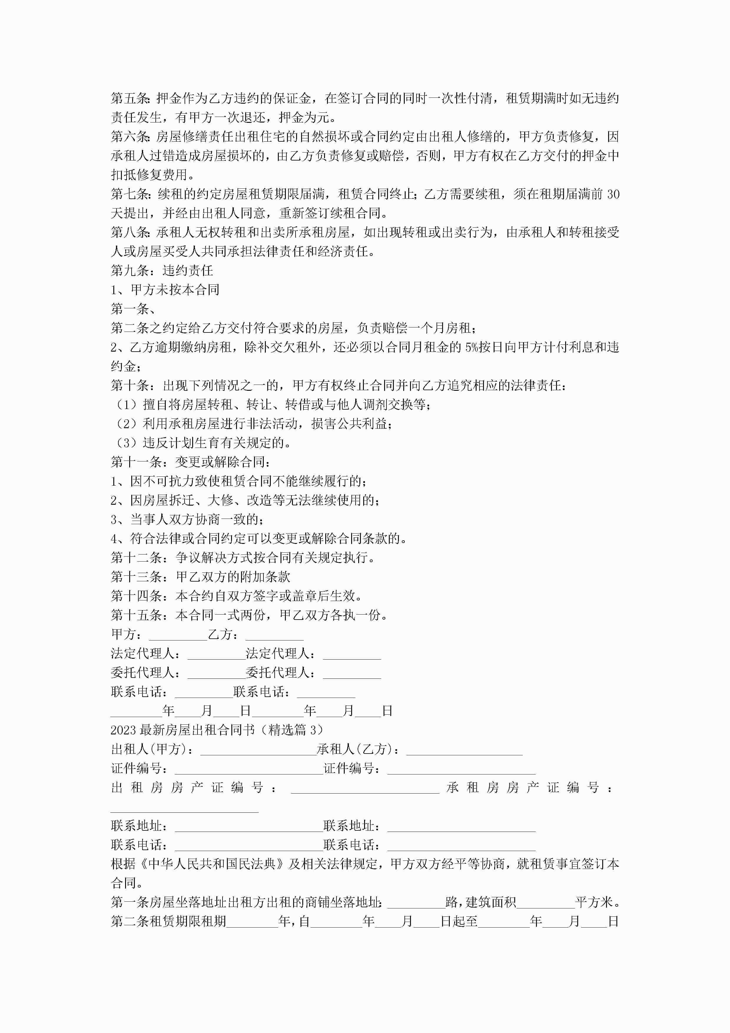 2023最新房屋出租合同书(11篇)jugei3月22日 00:34更新关注250 2023最新房屋出租合同书(11篇)此内容为付费资源,请付费后查看¥10.9 单篇文档限时特惠¥15个人会员开通企业会员开通立即下载无需登陆!可直接快捷下载单个模板付费资源© 版权声明THE ENDWord模板# 实用文档# 实用模板# 合同模板# 合同范本 如有问题,可点击最底部“联系我们”联系客服 分享QQ空间微博QQ好友海报分享复制链接收藏