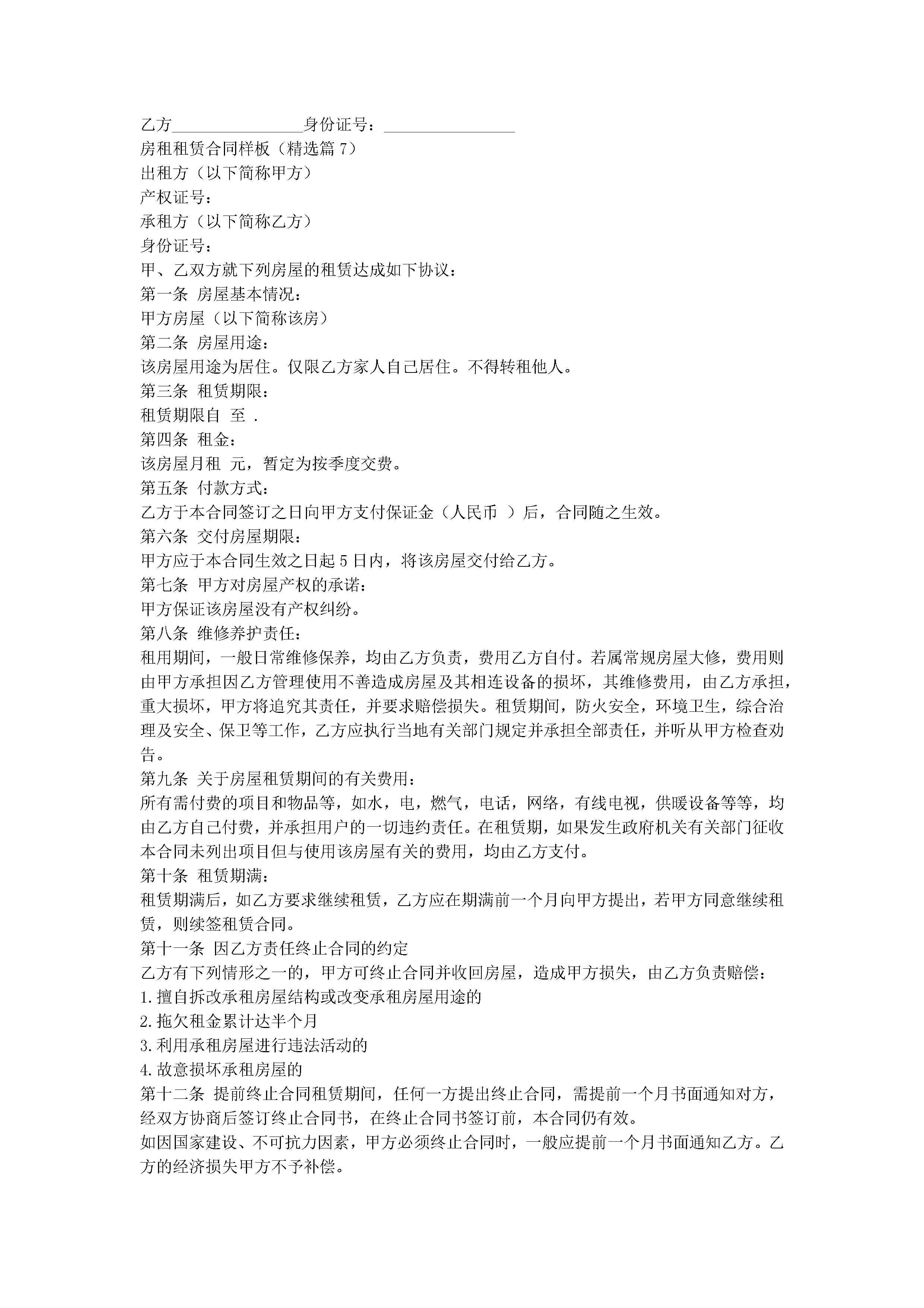 房租租赁合同样板(精选14篇)jugei3月22日 00:34更新关注280 房租租赁合同样板(精选14篇)此内容为付费资源,请付费后查看¥10.9 单篇文档限时特惠¥15个人会员开通企业会员开通立即下载无需登陆!可直接快捷下载单个模板付费资源© 版权声明THE ENDWord模板# 实用文档# 实用模板# 合同模板# 合同范本 如有问题,可点击最底部“联系我们”联系客服 分享QQ空间微博QQ好友海报分享复制链接收藏