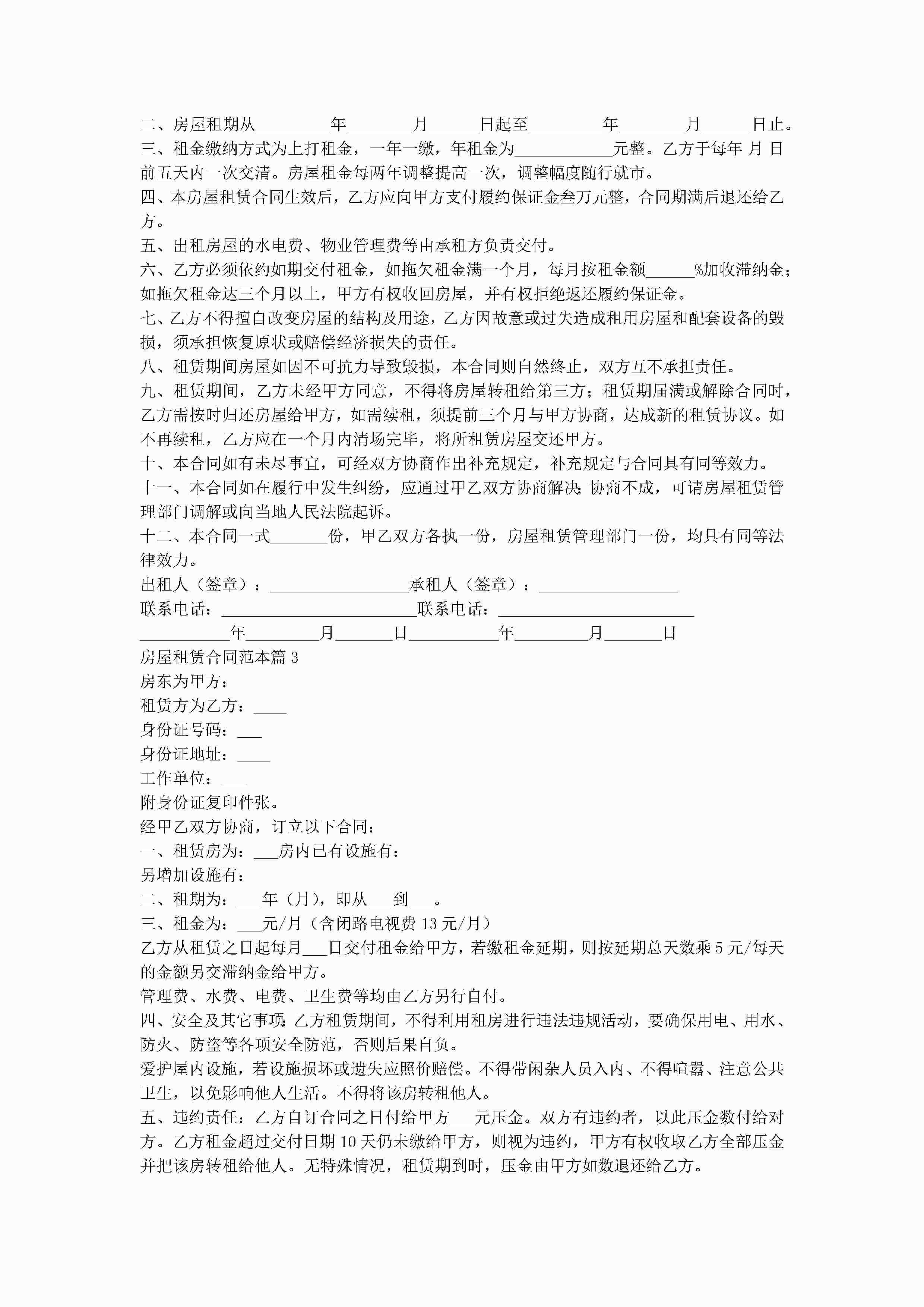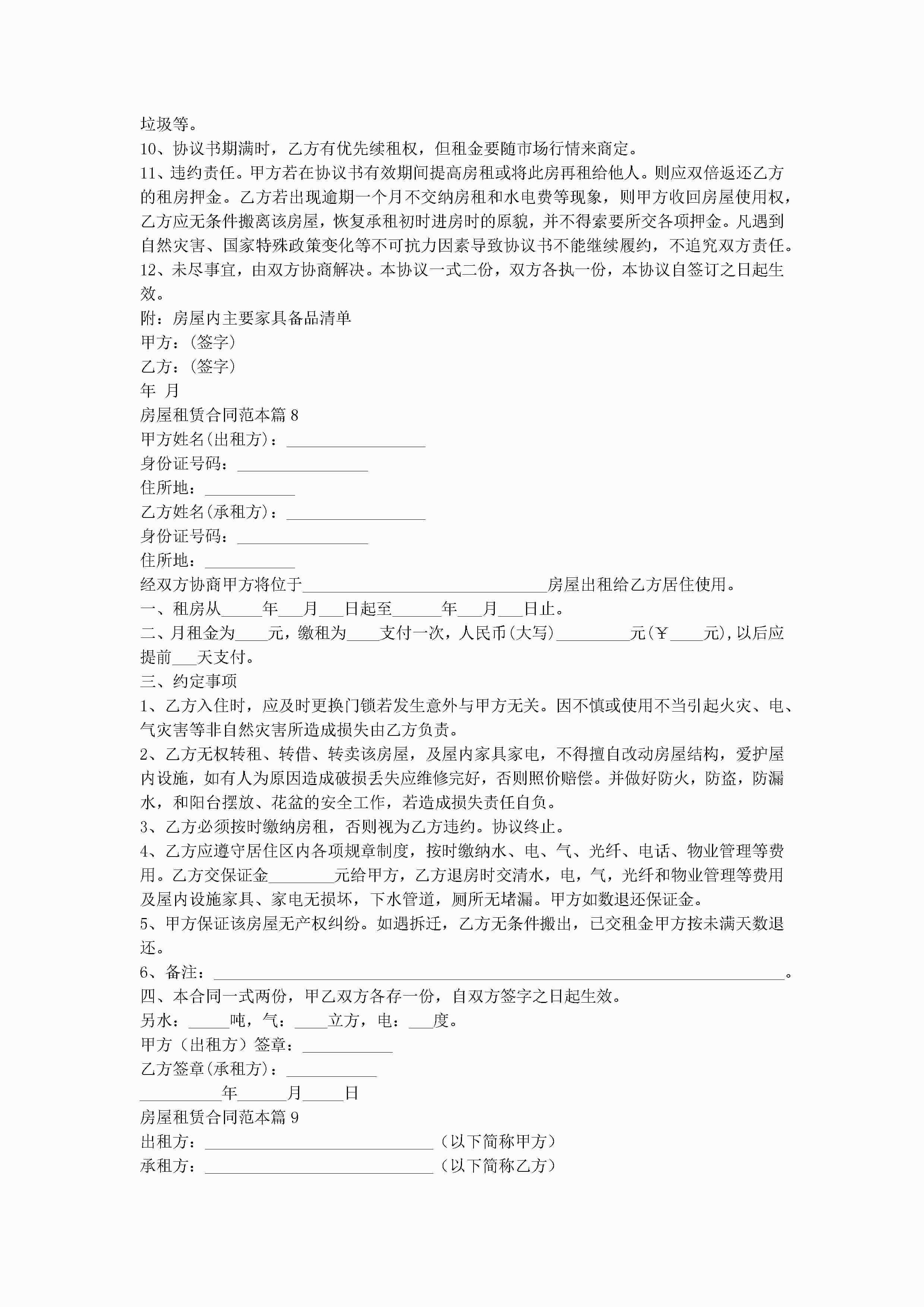 房屋租赁合同范本(十篇)jugei3月22日 00:34更新关注273 房屋租赁合同范本(十篇)此内容为付费资源,请付费后查看¥10.9 单篇文档限时特惠¥15个人会员开通企业会员开通立即下载无需登陆!可直接快捷下载单个模板付费资源© 版权声明THE ENDWord模板# 实用文档# 实用模板# 合同模板# 合同范本 如有问题,可点击最底部“联系我们”联系客服 分享QQ空间微博QQ好友海报分享复制链接收藏
