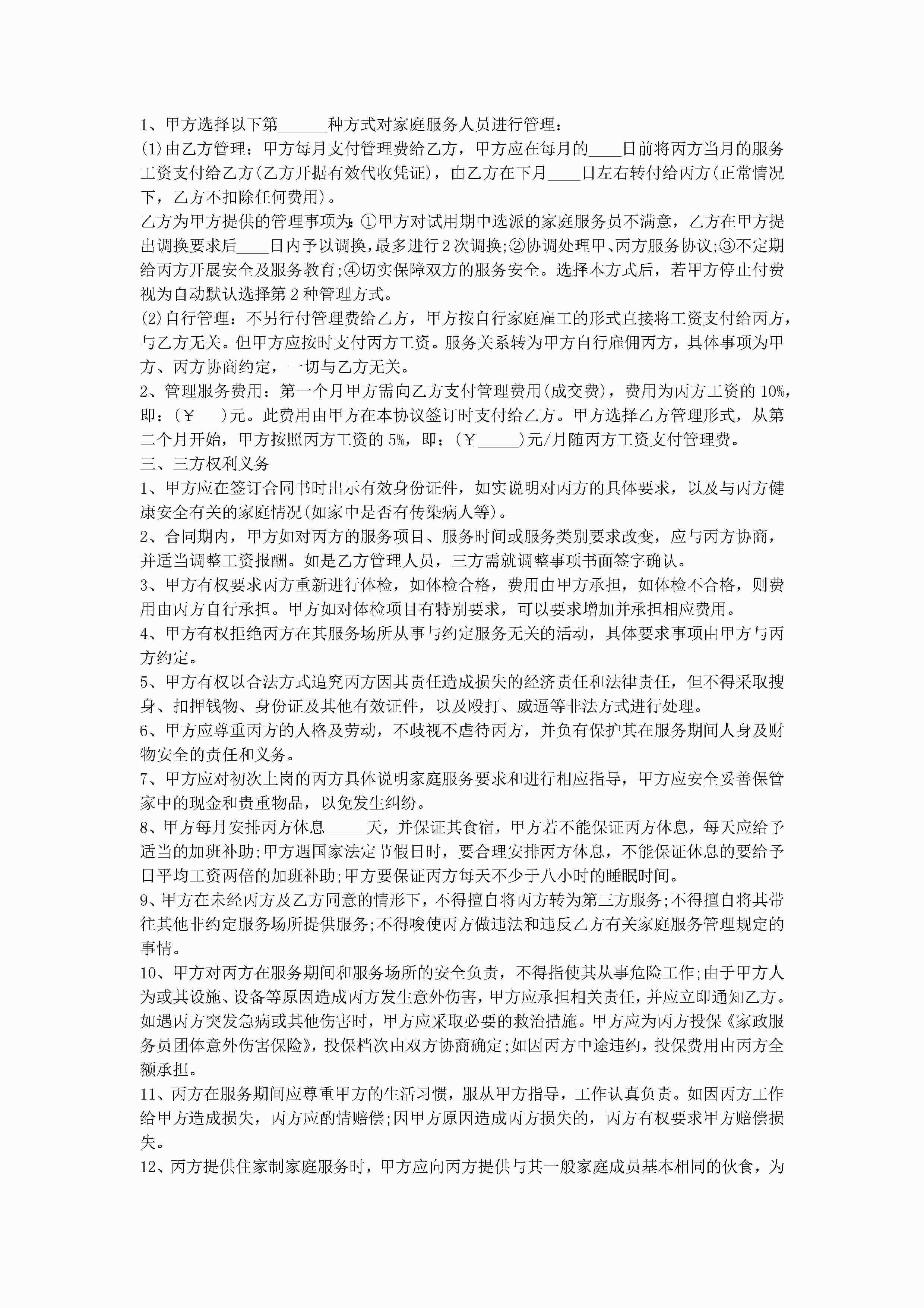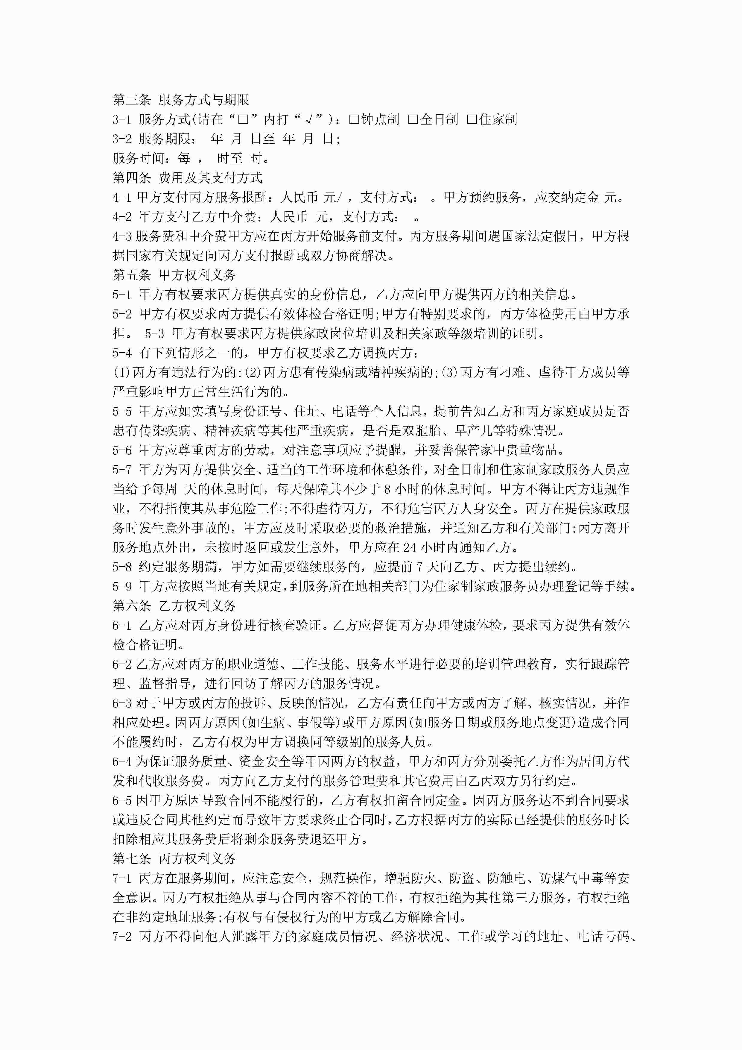 家政保姆服务合同协议(精选7篇)jugei3月22日 00:34更新关注228 家政保姆服务合同协议(精选7篇)此内容为付费资源,请付费后查看¥10.9 单篇文档限时特惠¥15个人会员开通企业会员开通立即下载无需登陆!可直接快捷下载单个模板付费资源© 版权声明THE ENDWord模板# 实用文档# 实用模板# 合同模板# 合同范本 如有问题,可点击最底部“联系我们”联系客服 分享QQ空间微博QQ好友海报分享复制链接收藏