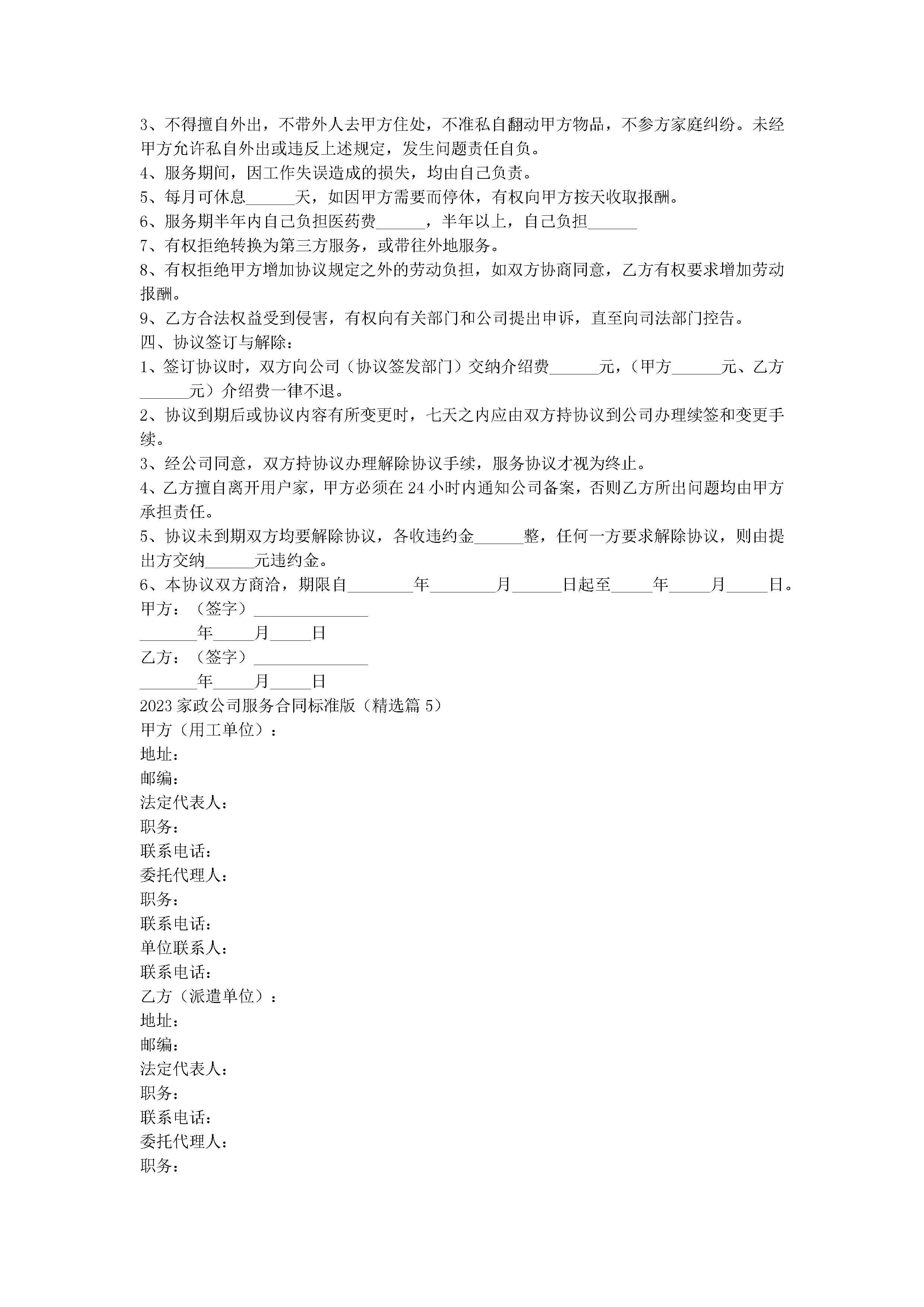 2023家政公司服务合同标准版(精选7篇)jugei3月22日 00:34更新关注372 2023家政公司服务合同标准版(精选7篇)此内容为付费资源,请付费后查看¥10.9 单篇文档限时特惠¥15个人会员开通企业会员开通立即下载无需登陆!可直接快捷下载单个模板付费资源© 版权声明THE ENDWord模板# 实用文档# 实用模板# 合同模板# 合同范本 如有问题,可点击最底部“联系我们”联系客服 分享QQ空间微博QQ好友海报分享复制链接收藏