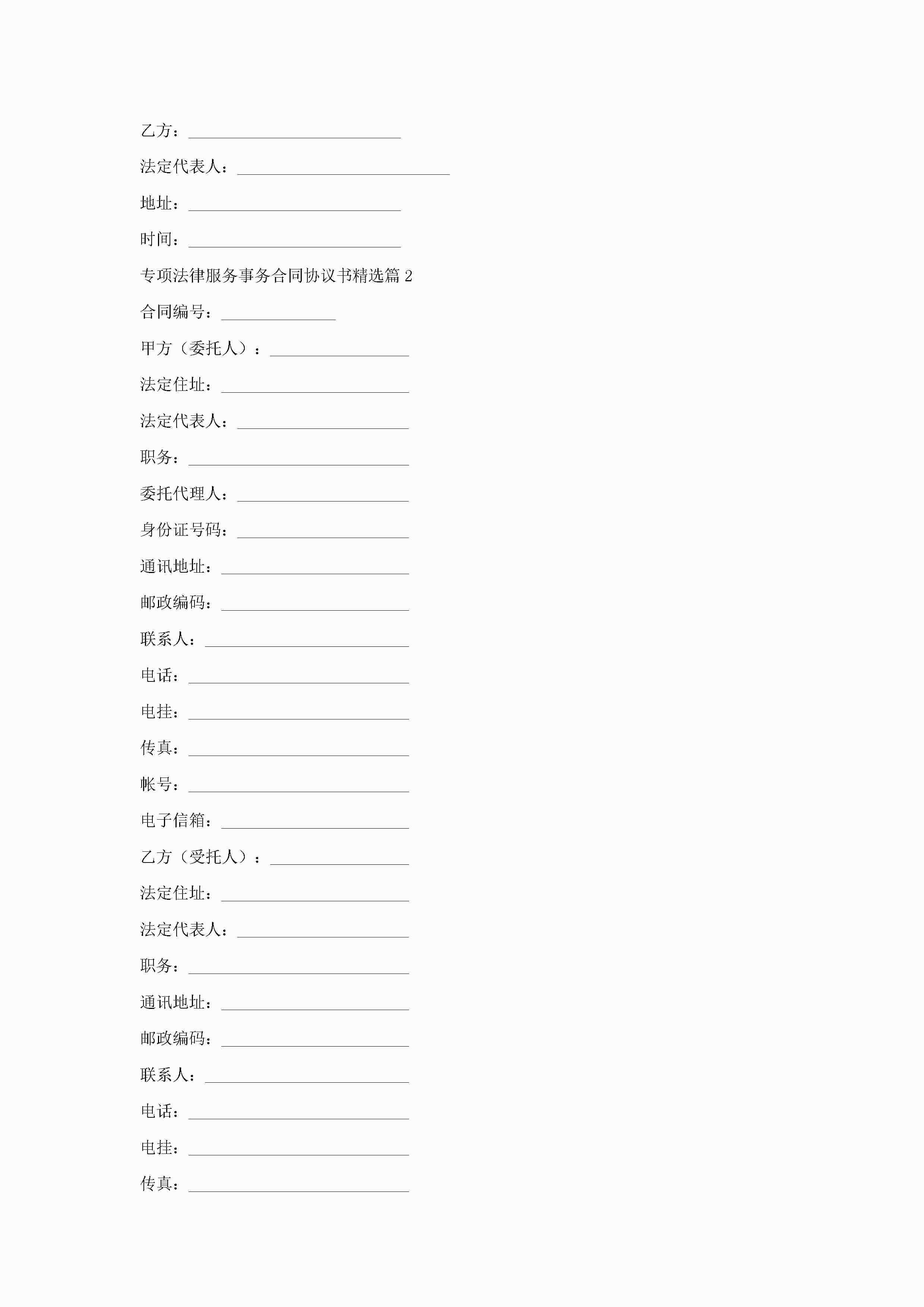 专项法律服务事务合同协议书7篇jugei3月22日 00:54更新关注246 专项法律服务事务合同协议书7篇此内容为付费资源,请付费后查看¥10.9 单篇文档限时特惠¥15个人会员开通企业会员开通立即下载无需登陆!可直接快捷下载单个模板付费资源© 版权声明THE ENDWord模板# 实用文档# 实用模板# 合同模板# 合同范本 如有问题,可点击最底部“联系我们”联系客服 分享QQ空间微博QQ好友海报分享复制链接收藏