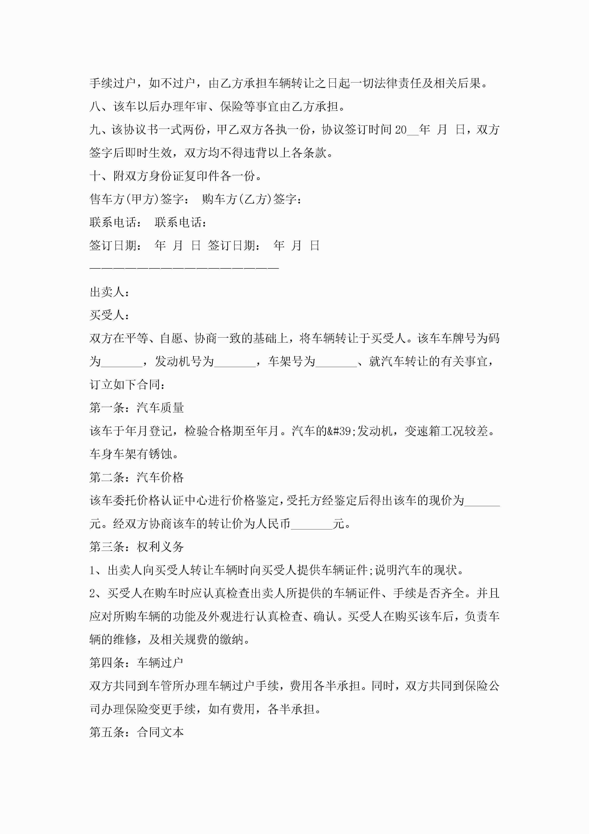 车辆转让协议书10篇精选jugei3月22日 12:35更新关注202 车辆转让协议书10篇精选此内容为付费资源,请付费后查看¥10.9 单篇文档限时特惠¥15个人会员开通企业会员开通立即下载无需登陆!可直接快捷下载单个模板付费资源© 版权声明THE ENDWord模板# 实用文档# 实用模板# 信函模板# 协议书 如有问题,可点击最底部“联系我们”联系客服 分享QQ空间微博QQ好友海报分享复制链接收藏