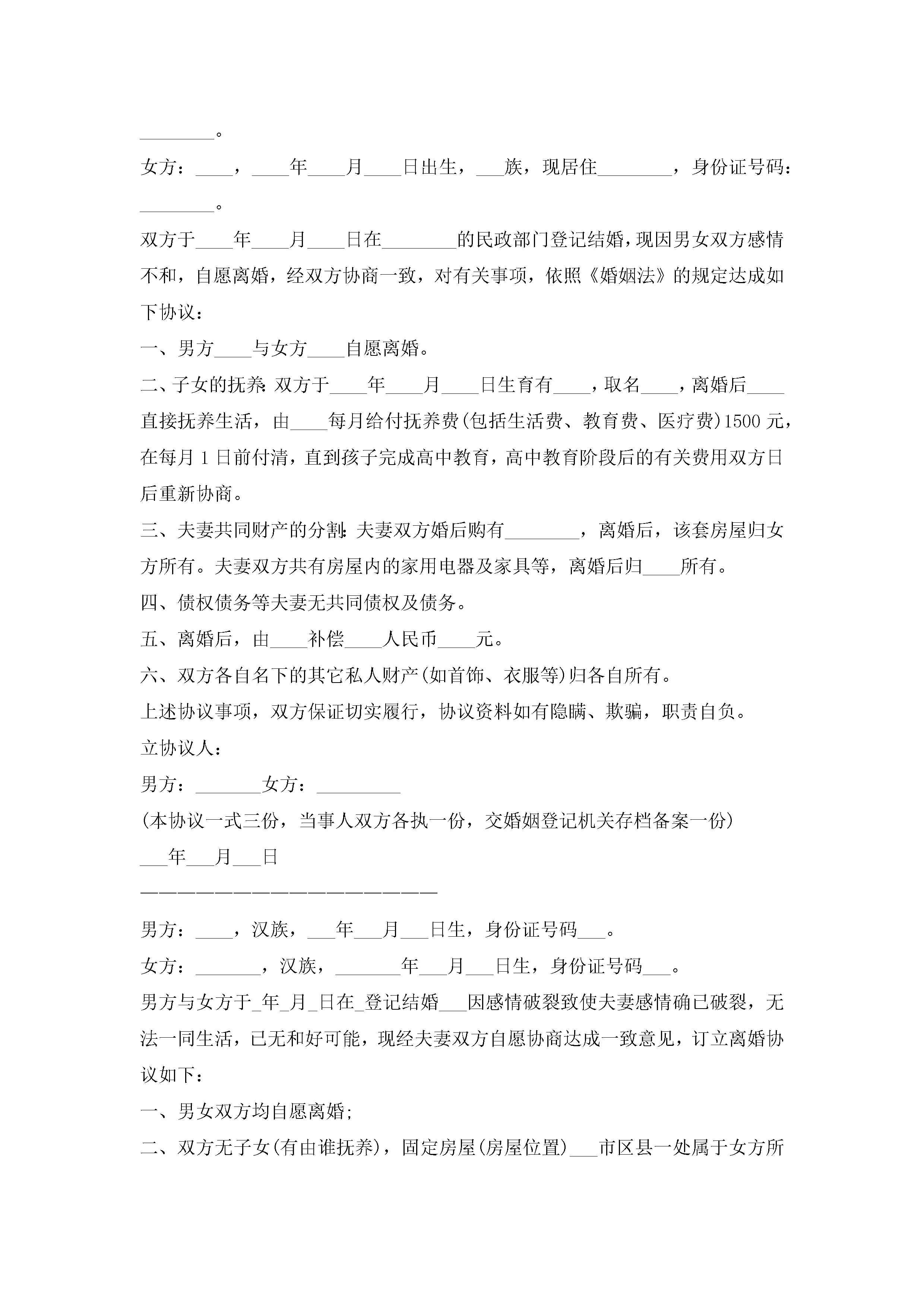 2022年离婚协议书范本最新版10篇精选jugei3月22日 12:35更新关注219 2022年离婚协议书范本最新版10篇精选此内容为付费资源,请付费后查看¥10.9 单篇文档限时特惠¥15个人会员开通企业会员开通立即下载无需登陆!可直接快捷下载单个模板付费资源© 版权声明THE ENDWord模板# 实用文档# 实用模板# 信函模板# 协议书 如有问题,可点击最底部“联系我们”联系客服 分享QQ空间微博QQ好友海报分享复制链接收藏