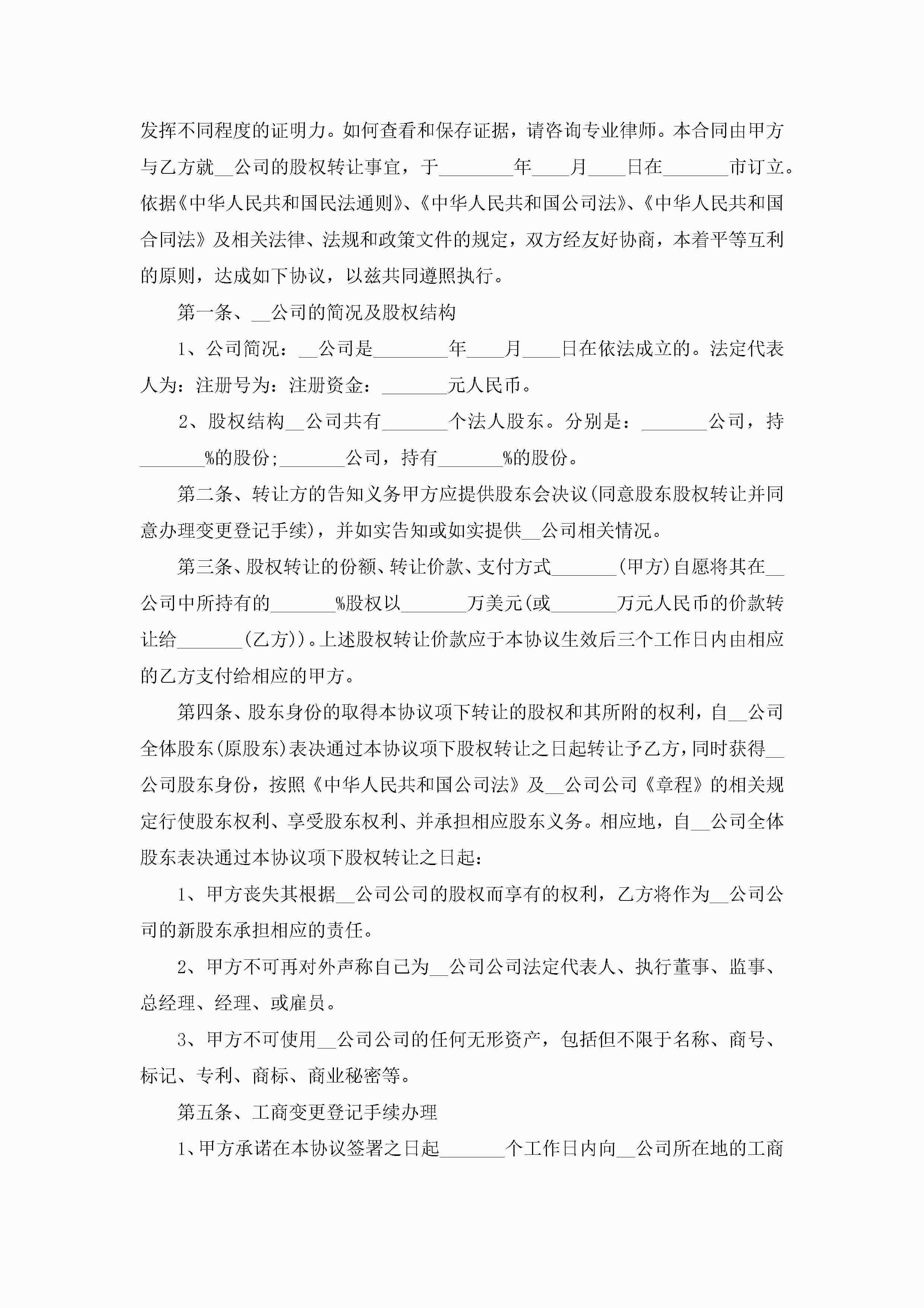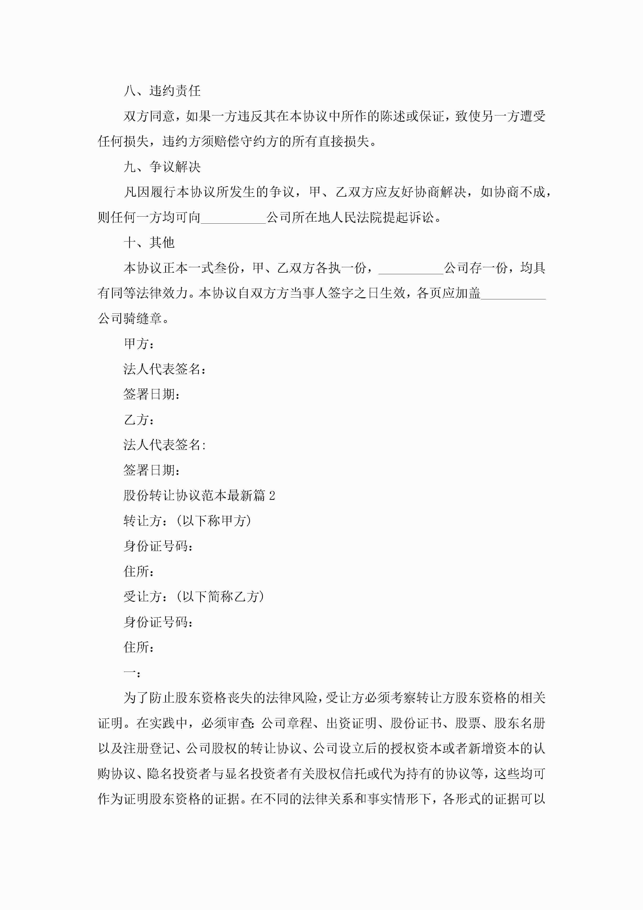 股份转让协议范本最新10篇精选jugei3月22日 12:38更新关注216 股份转让协议范本最新10篇精选此内容为付费资源,请付费后查看¥10.9 单篇文档限时特惠¥15个人会员开通企业会员开通立即下载无需登陆!可直接快捷下载单个模板付费资源© 版权声明THE ENDWord模板# 实用文档# 实用模板# 信函模板# 协议书 如有问题,可点击最底部“联系我们”联系客服 分享QQ空间微博QQ好友海报分享复制链接收藏