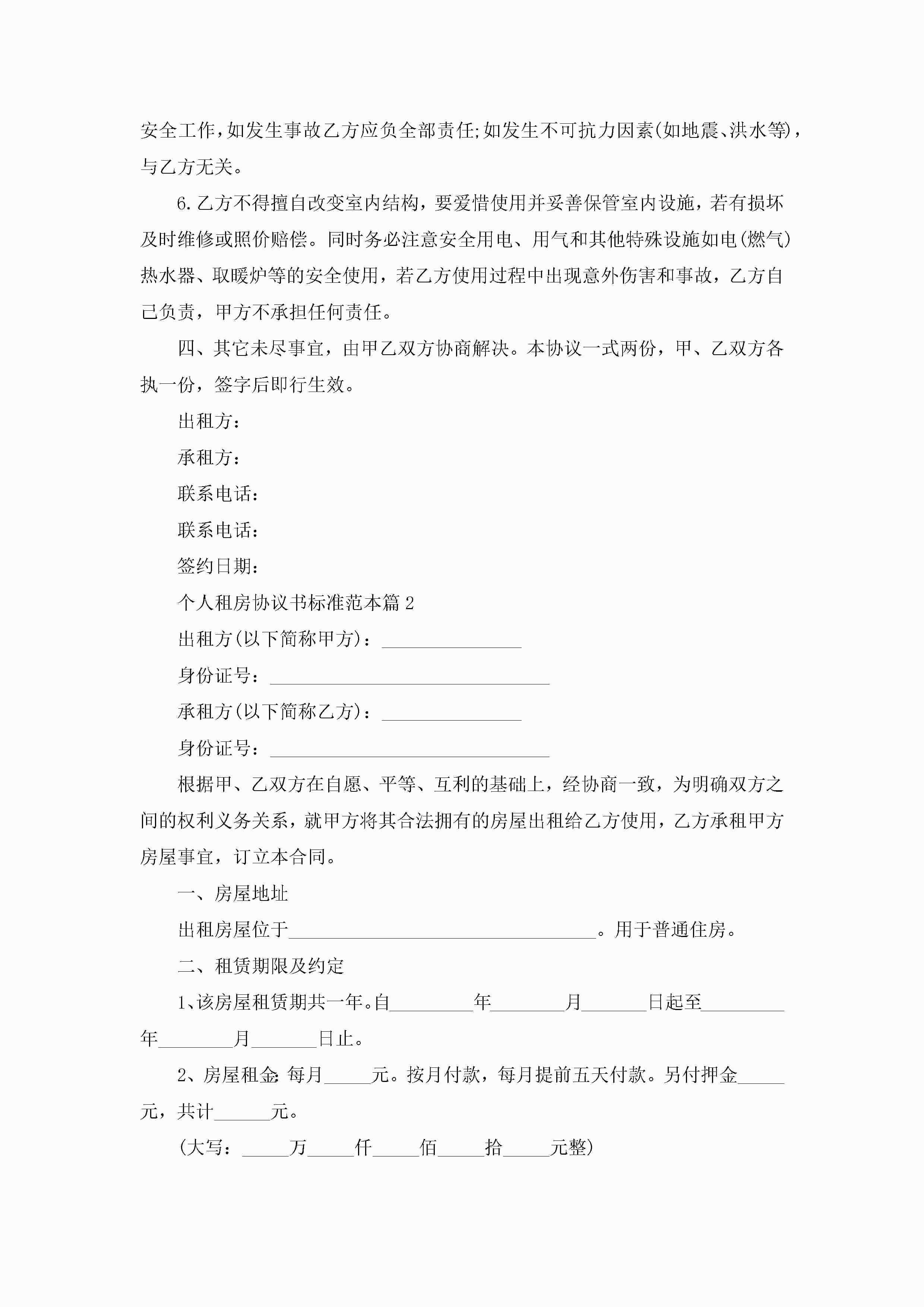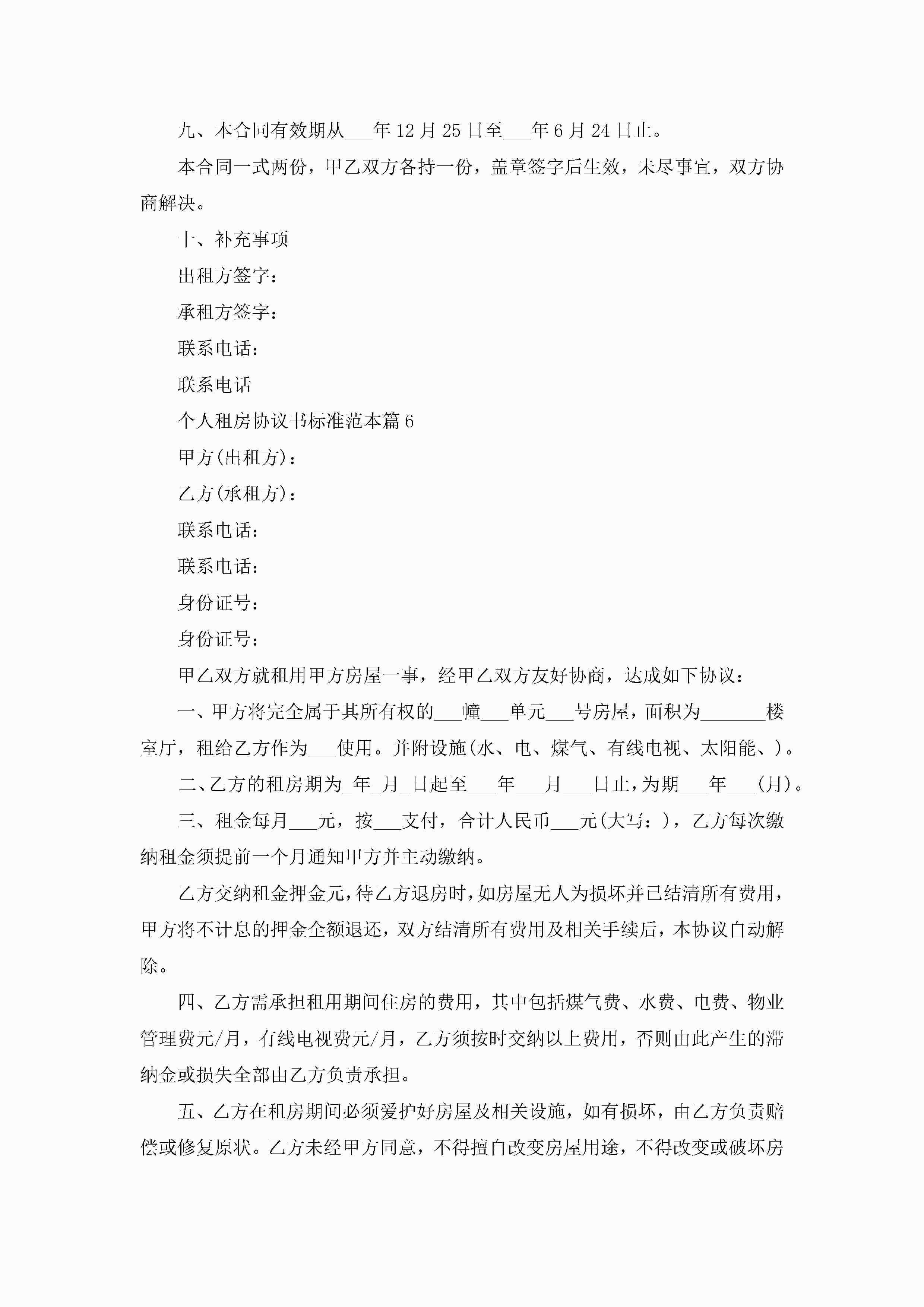 个人租房协议书标准范本10篇精选jugei3月22日 12:38更新关注214 个人租房协议书标准范本10篇精选此内容为付费资源,请付费后查看¥10.9 单篇文档限时特惠¥15个人会员开通企业会员开通立即下载无需登陆!可直接快捷下载单个模板付费资源© 版权声明THE ENDWord模板# 实用文档# 实用模板# 信函模板# 协议书 如有问题,可点击最底部“联系我们”联系客服 分享QQ空间微博QQ好友海报分享复制链接收藏