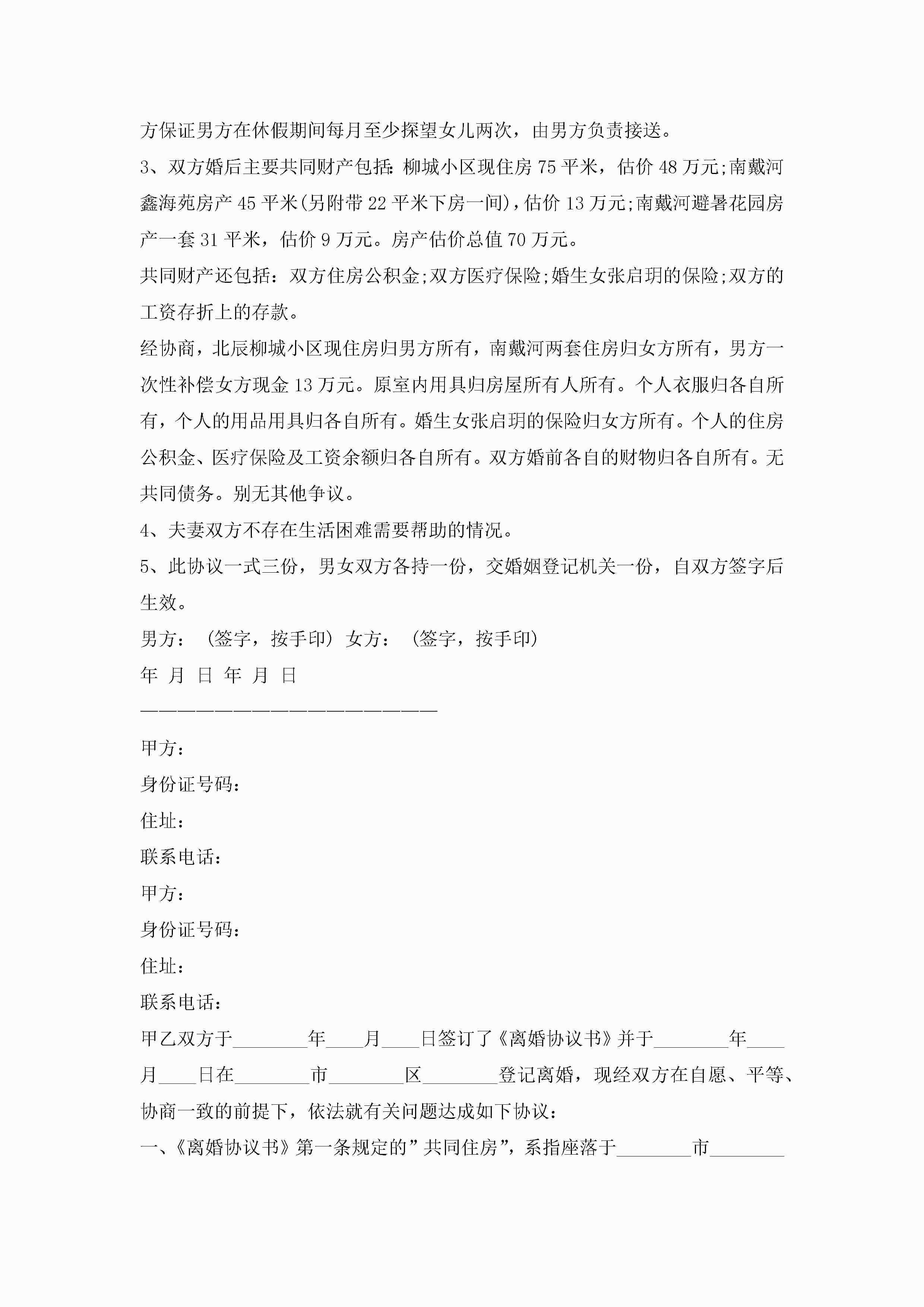 2022离婚协议书范本最新版10篇精选jugei3月22日 12:38更新关注193 2022离婚协议书范本最新版10篇精选此内容为付费资源,请付费后查看¥10.9 单篇文档限时特惠¥15个人会员开通企业会员开通立即下载无需登陆!可直接快捷下载单个模板付费资源© 版权声明THE ENDWord模板# 实用文档# 实用模板# 信函模板# 协议书 如有问题,可点击最底部“联系我们”联系客服 分享QQ空间微博QQ好友海报分享复制链接收藏