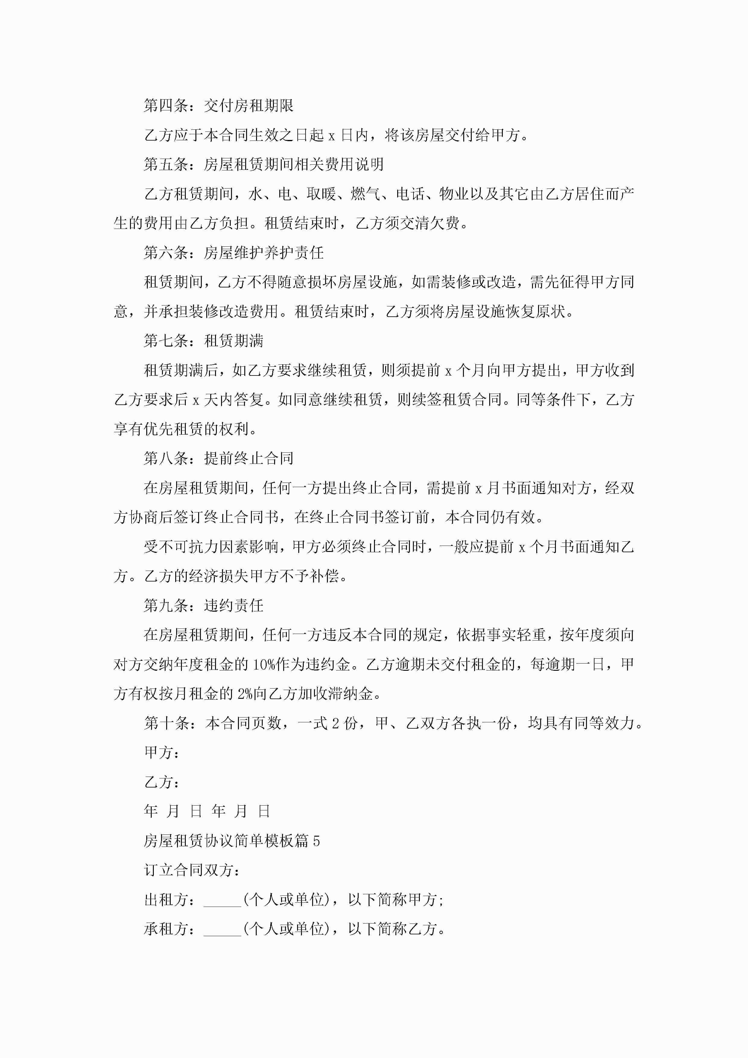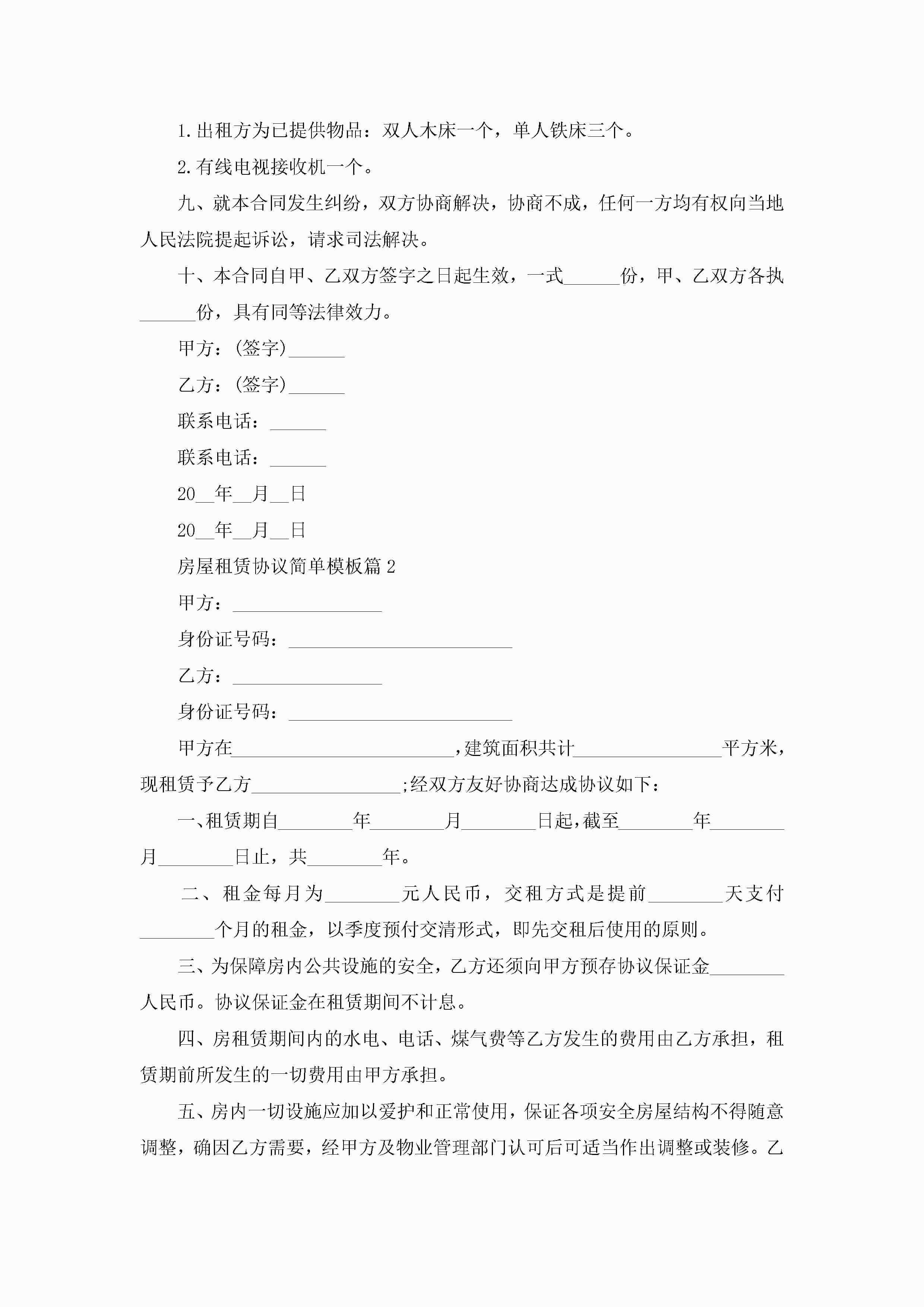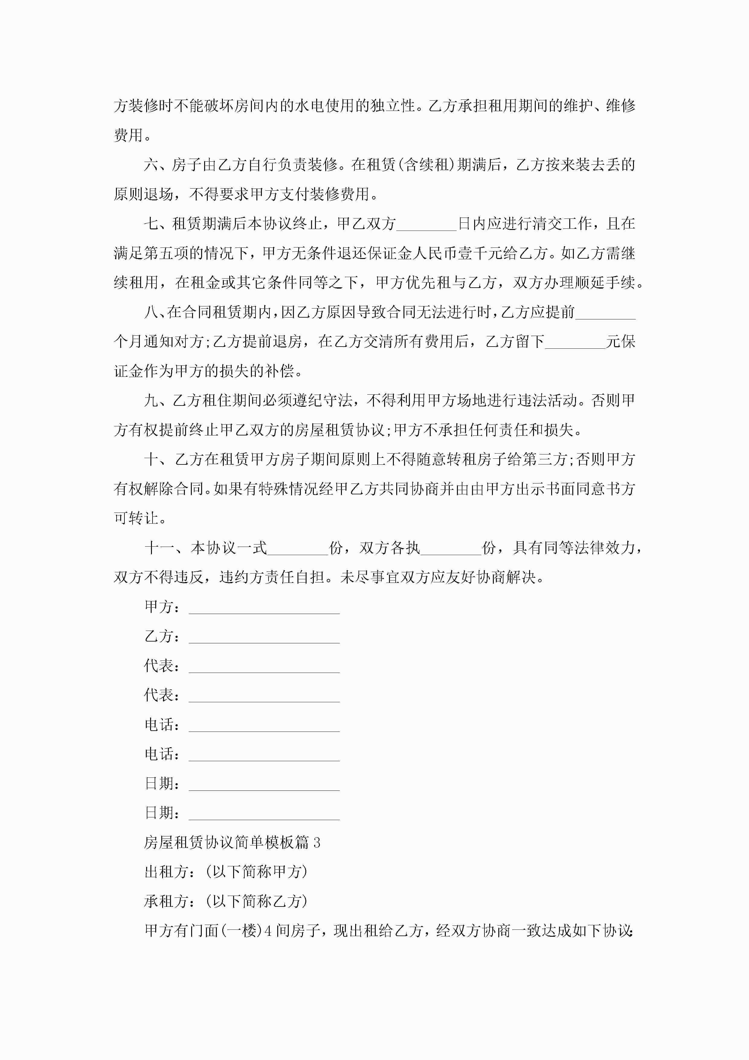 房屋租赁协议简单模板10篇精选jugei3月22日 12:38更新关注191 房屋租赁协议简单模板10篇精选此内容为付费资源,请付费后查看¥10.9 单篇文档限时特惠¥15个人会员开通企业会员开通立即下载无需登陆!可直接快捷下载单个模板付费资源© 版权声明THE ENDWord模板# 实用文档# 实用模板# 信函模板# 协议书 如有问题,可点击最底部“联系我们”联系客服 分享QQ空间微博QQ好友海报分享复制链接收藏