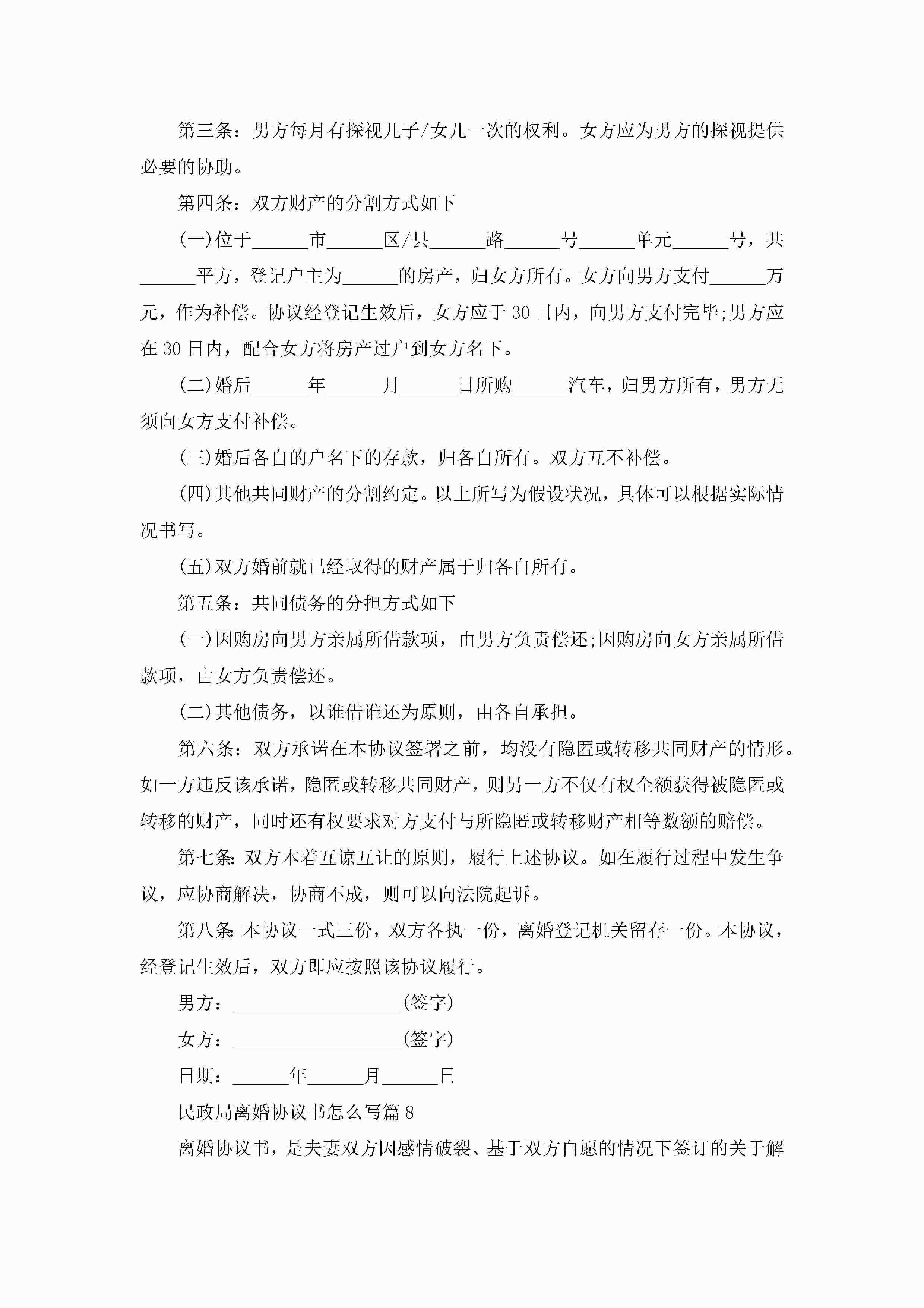 民政局离婚协议书怎么写10篇精选jugei3月22日 12:38更新关注202 民政局离婚协议书怎么写10篇精选此内容为付费资源,请付费后查看¥10.9 单篇文档限时特惠¥15个人会员开通企业会员开通立即下载无需登陆!可直接快捷下载单个模板付费资源© 版权声明THE ENDWord模板# 实用文档# 实用模板# 信函模板# 协议书 如有问题,可点击最底部“联系我们”联系客服 分享QQ空间微博QQ好友海报分享复制链接收藏