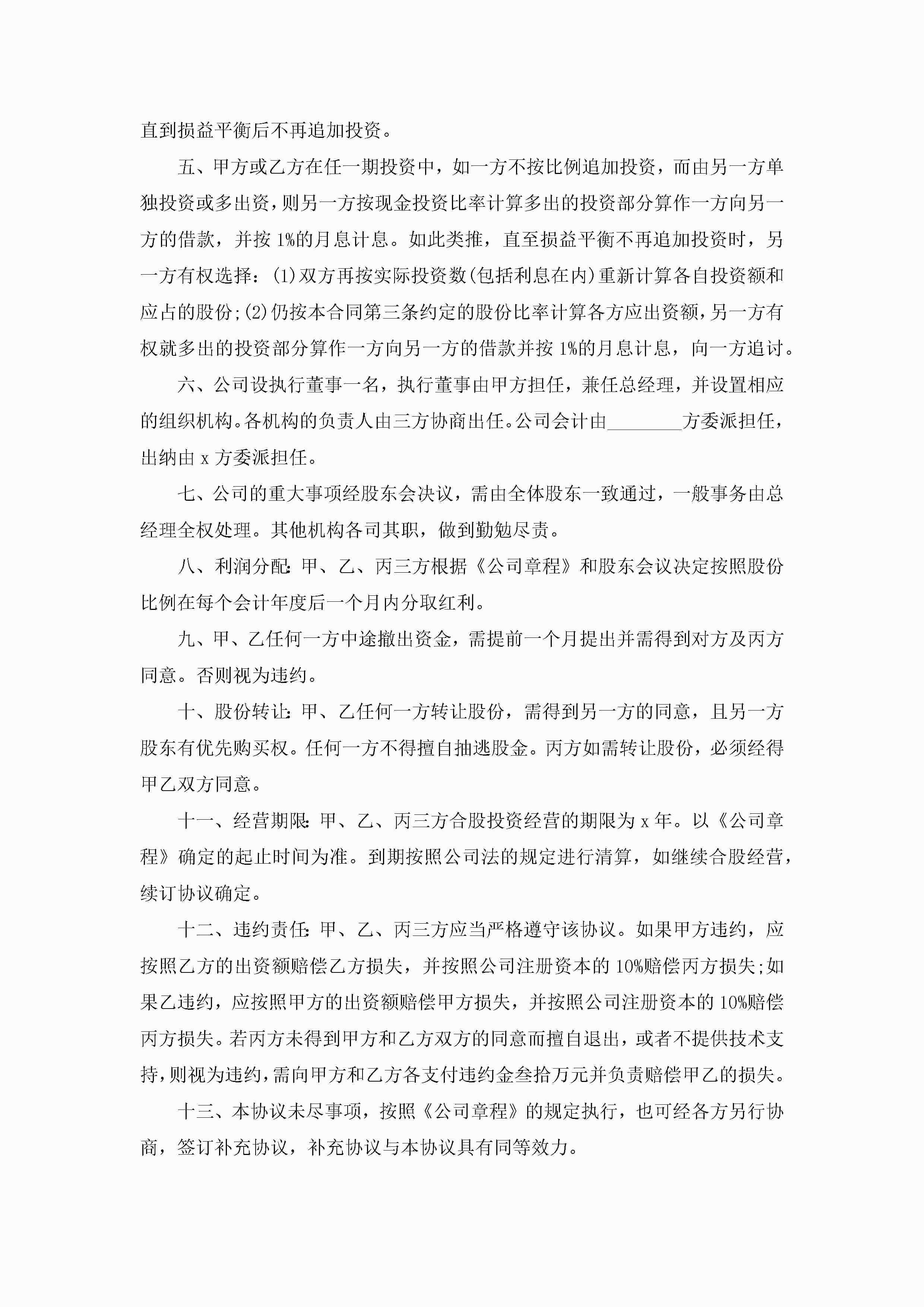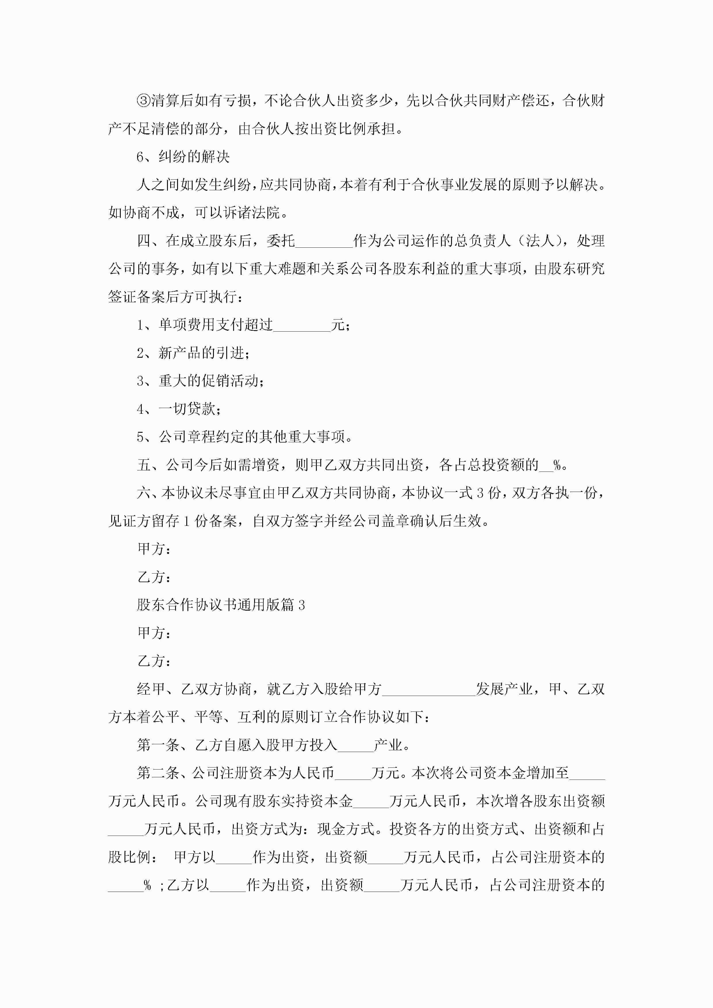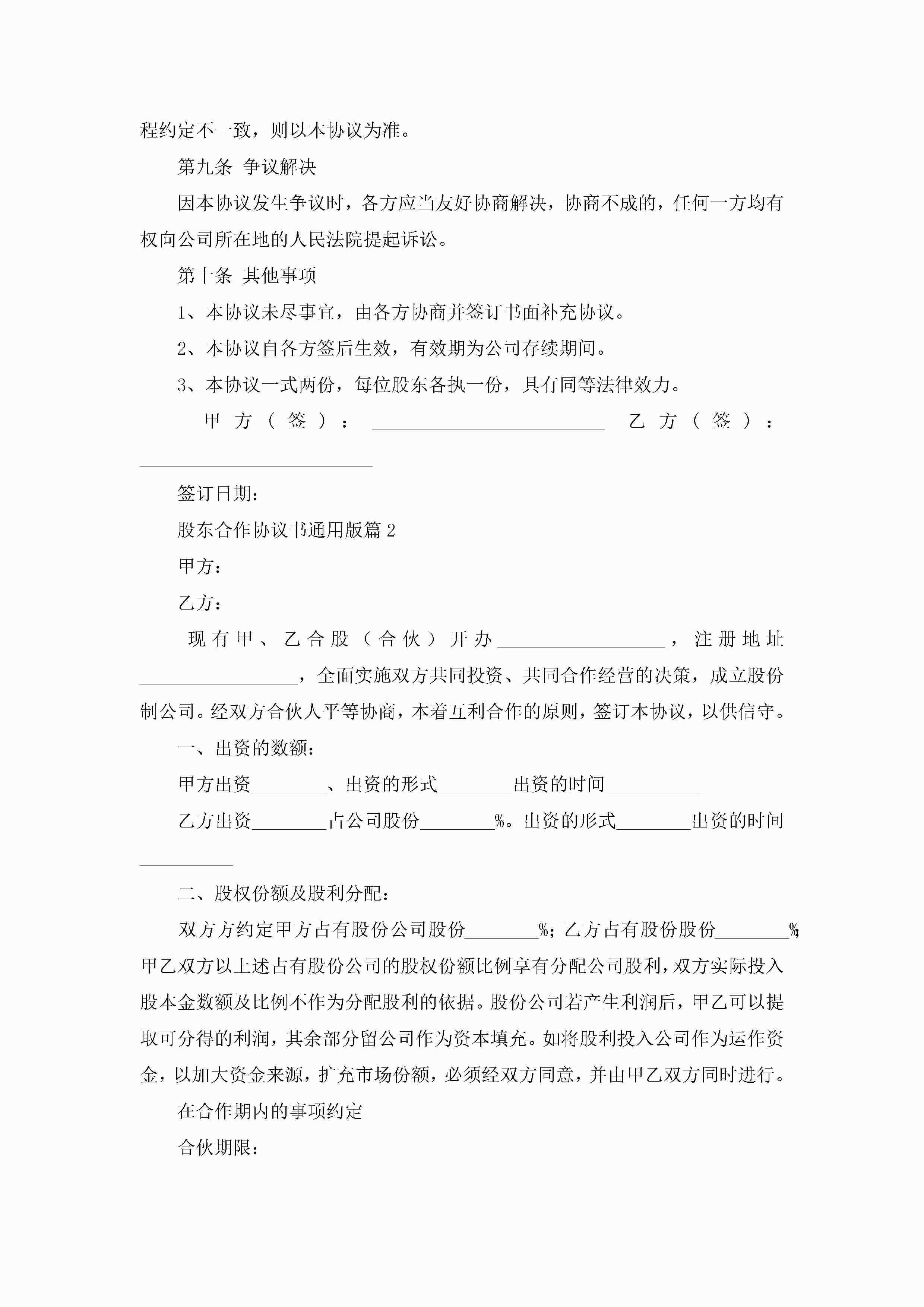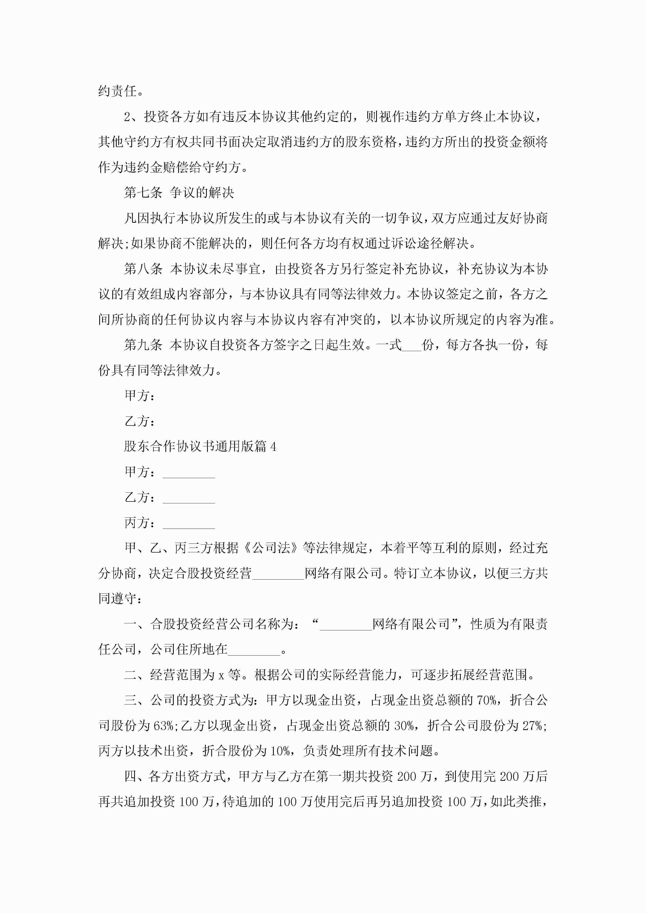 股东合作协议书通用版5篇jugei3月22日 12:38更新关注192 股东合作协议书通用版5篇此内容为付费资源,请付费后查看¥10.9 单篇文档限时特惠¥15个人会员开通企业会员开通立即下载无需登陆!可直接快捷下载单个模板付费资源© 版权声明THE ENDWord模板# 实用文档# 实用模板# 信函模板# 协议书 如有问题,可点击最底部“联系我们”联系客服 分享QQ空间微博QQ好友海报分享复制链接收藏