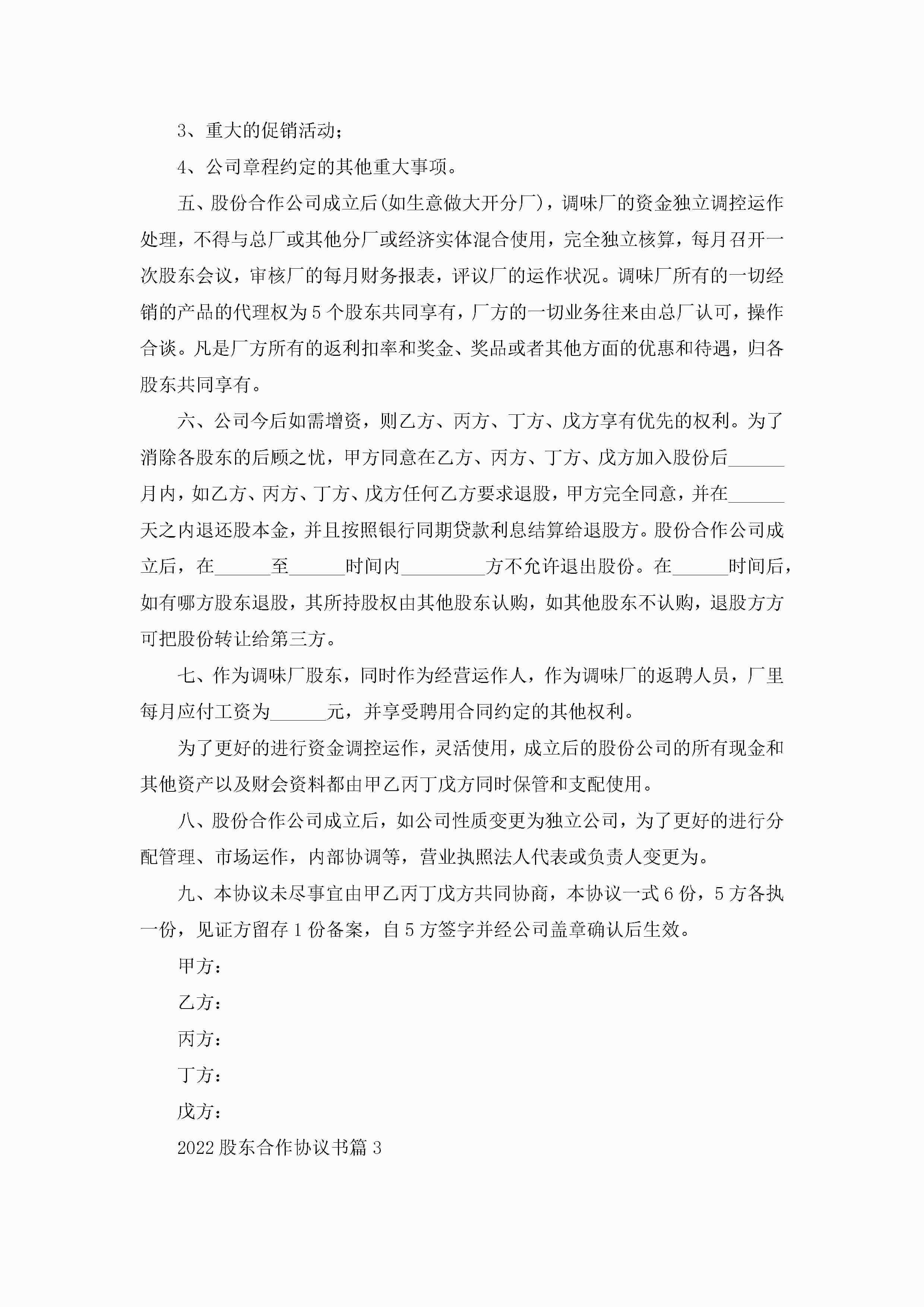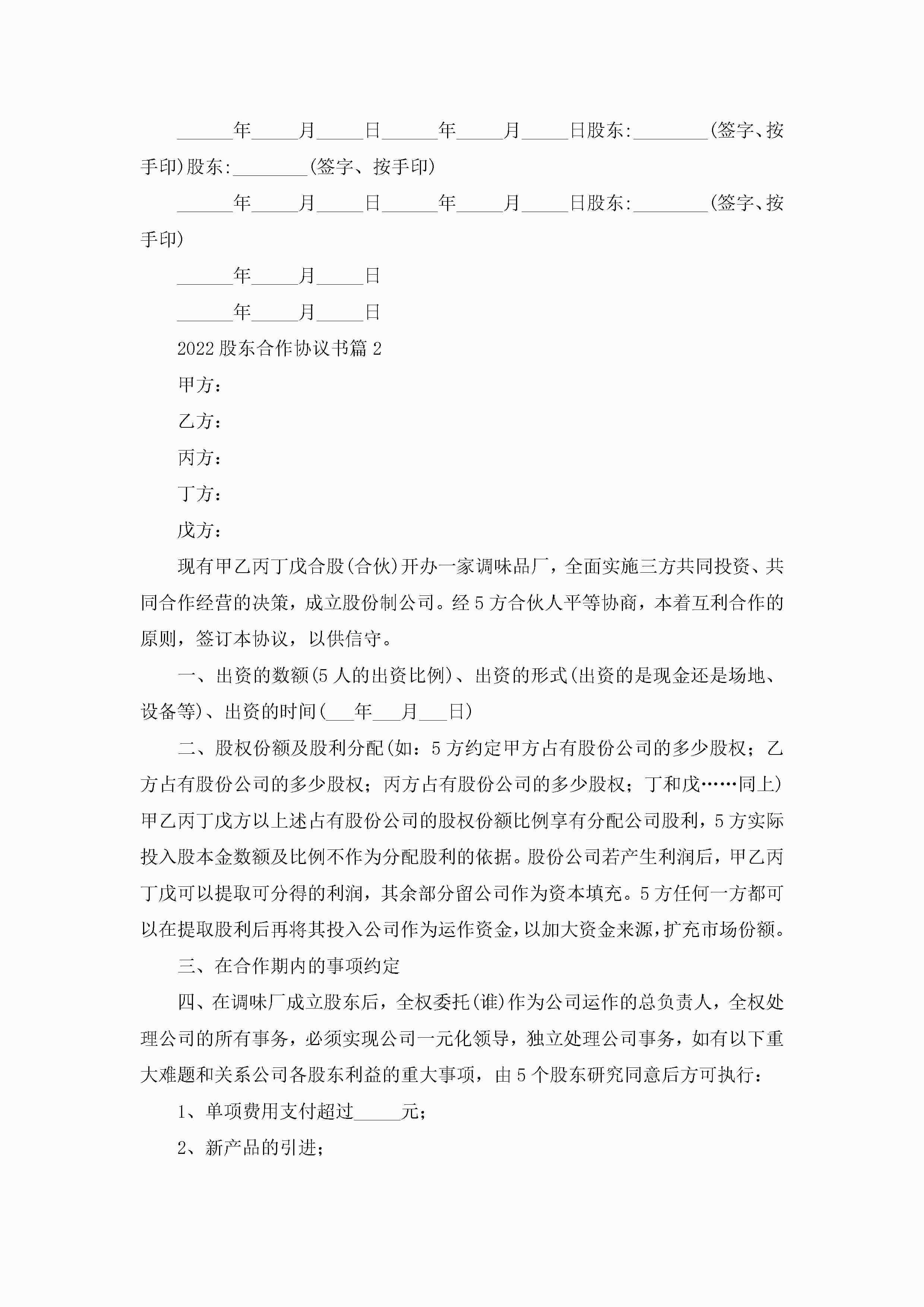 2022股东合作协议书5篇jugei3月22日 12:38更新关注276 2022股东合作协议书5篇此内容为付费资源,请付费后查看¥10.9 单篇文档限时特惠¥15个人会员开通企业会员开通立即下载无需登陆!可直接快捷下载单个模板付费资源© 版权声明THE ENDWord模板# 实用文档# 实用模板# 信函模板# 协议书 如有问题,可点击最底部“联系我们”联系客服 分享QQ空间微博QQ好友海报分享复制链接收藏
