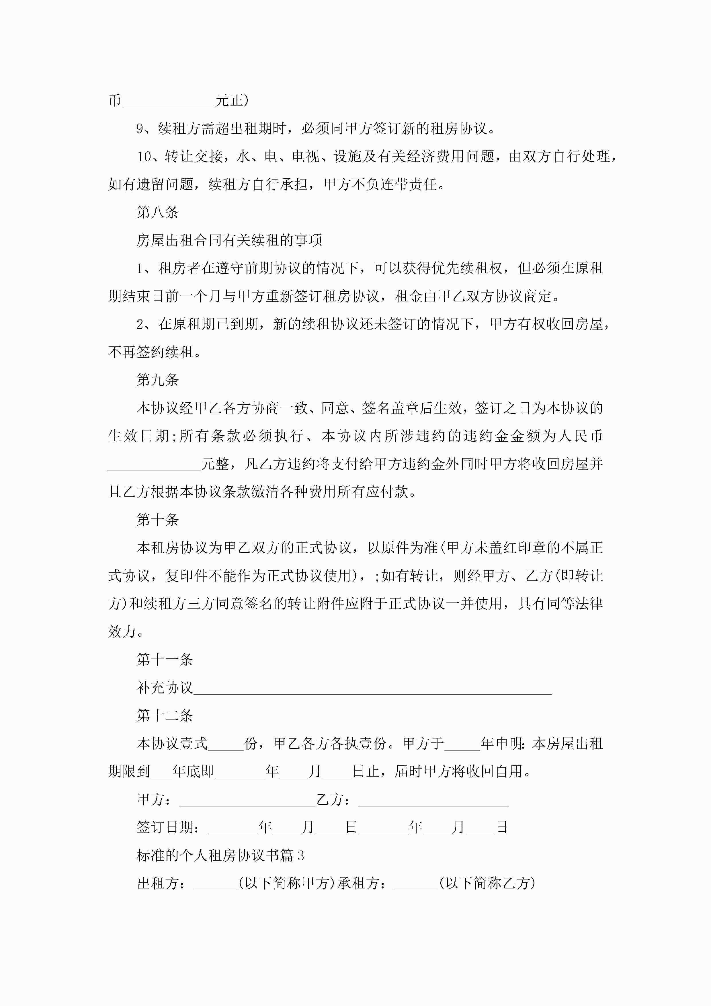 标准的个人租房协议书10篇精选jugei3月22日 12:38更新关注216 标准的个人租房协议书10篇精选此内容为付费资源,请付费后查看¥10.9 单篇文档限时特惠¥15个人会员开通企业会员开通立即下载无需登陆!可直接快捷下载单个模板付费资源© 版权声明THE ENDWord模板# 实用文档# 实用模板# 信函模板# 协议书 如有问题,可点击最底部“联系我们”联系客服 分享QQ空间微博QQ好友海报分享复制链接收藏