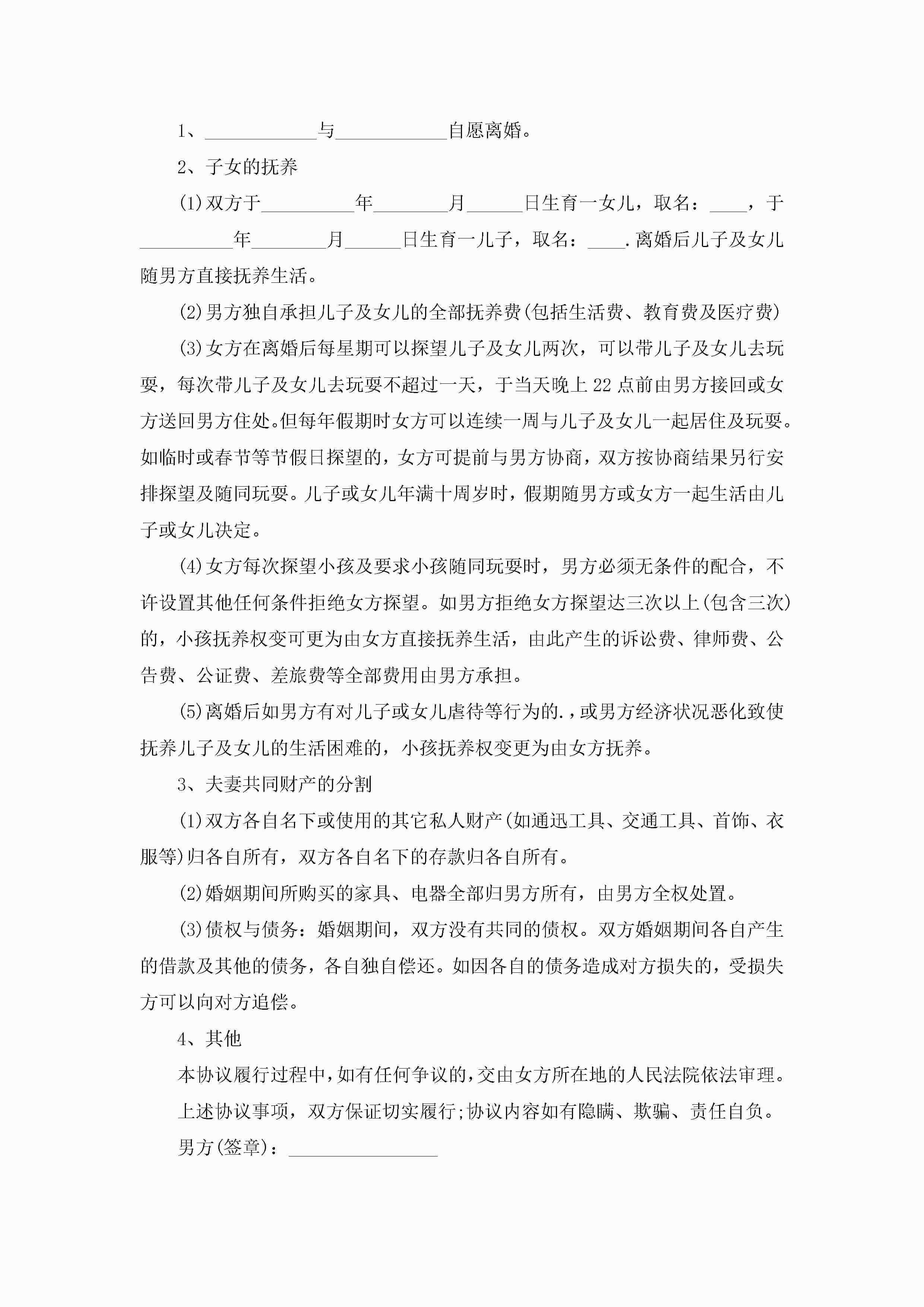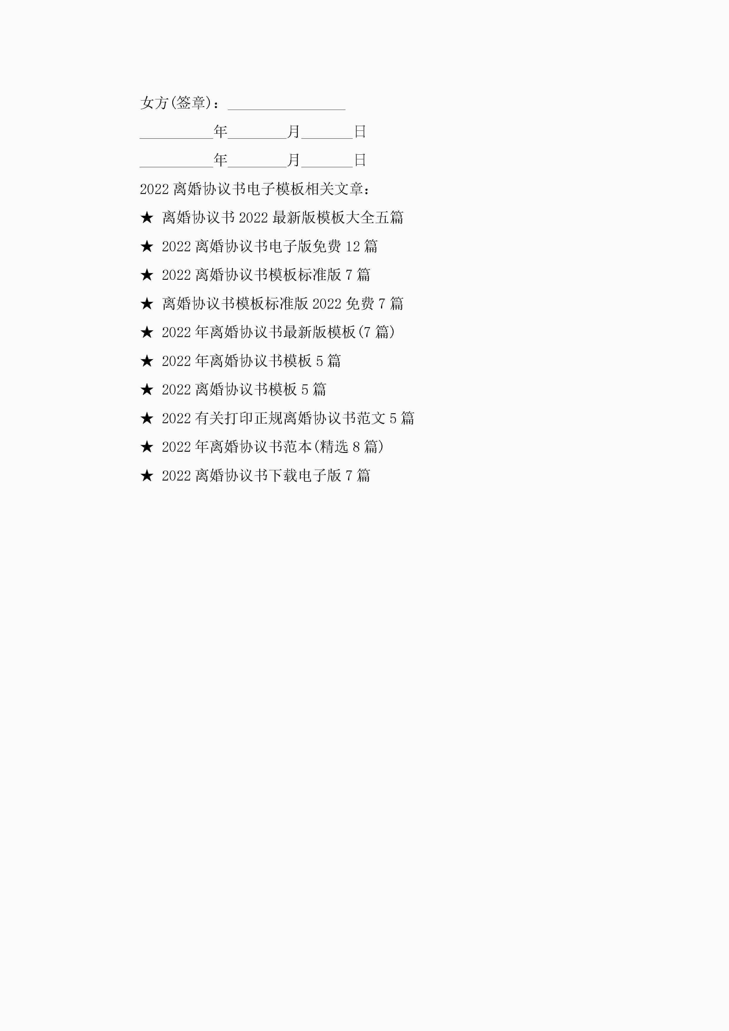 2022离婚协议书电子模板6篇jugei3月22日 12:38更新关注198 2022离婚协议书电子模板6篇此内容为付费资源,请付费后查看¥10.9 单篇文档限时特惠¥15个人会员开通企业会员开通立即下载无需登陆!可直接快捷下载单个模板付费资源© 版权声明THE ENDWord模板# 实用文档# 实用模板# 信函模板# 协议书 如有问题,可点击最底部“联系我们”联系客服 分享QQ空间微博QQ好友海报分享复制链接收藏