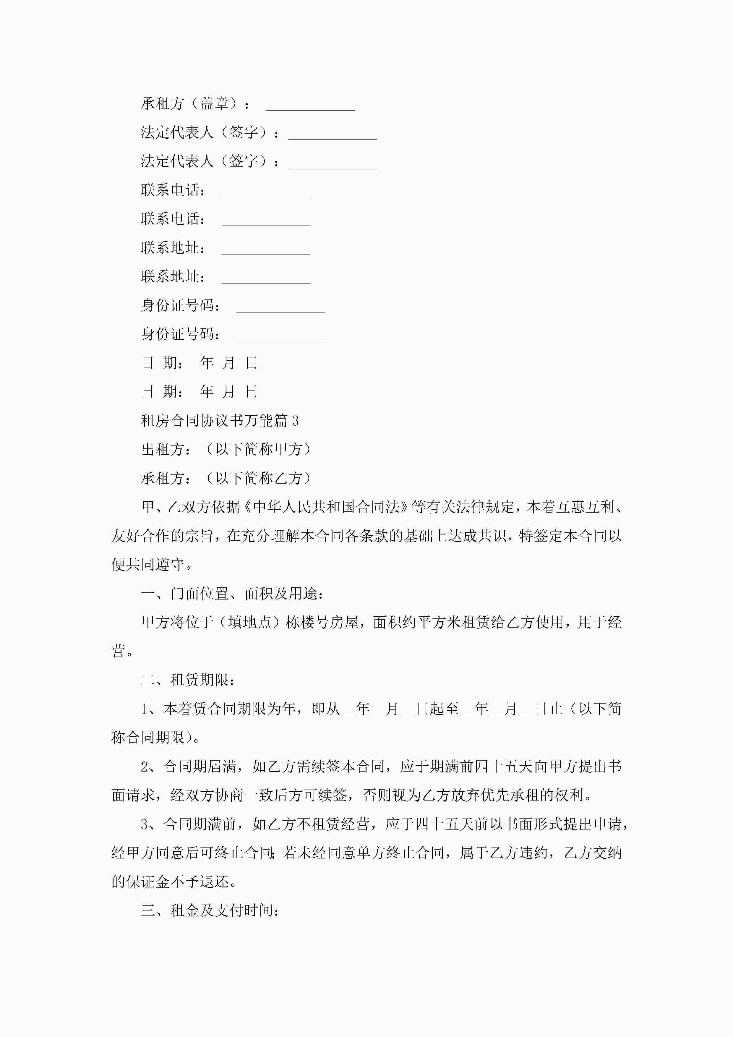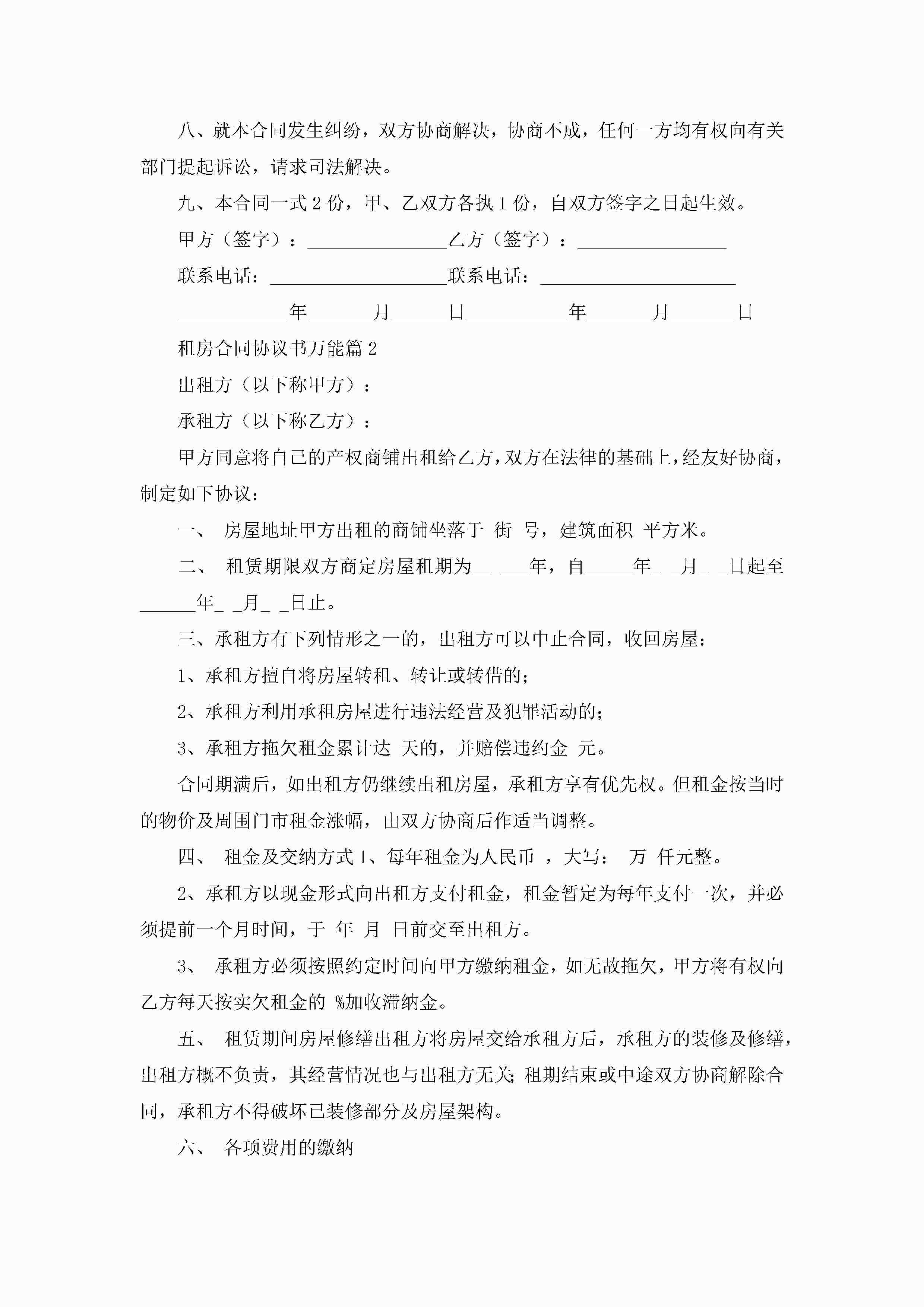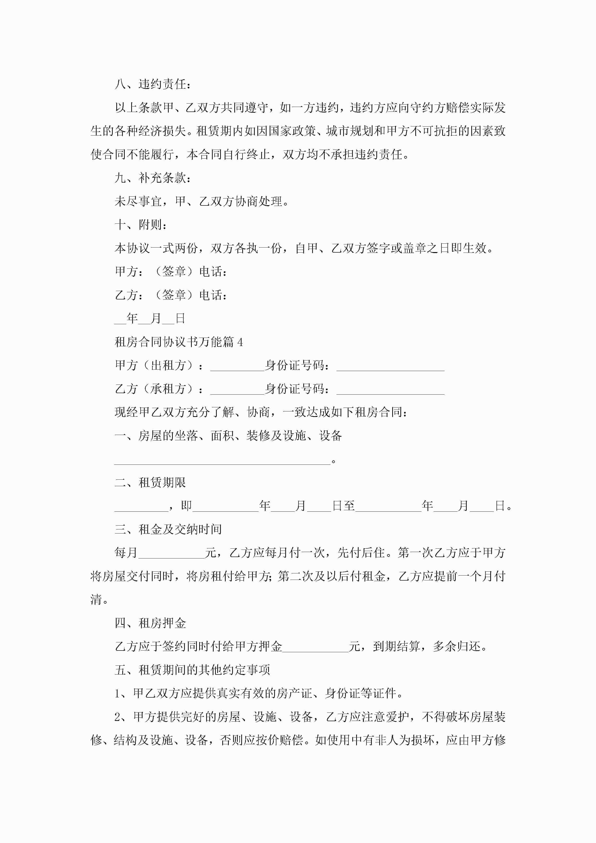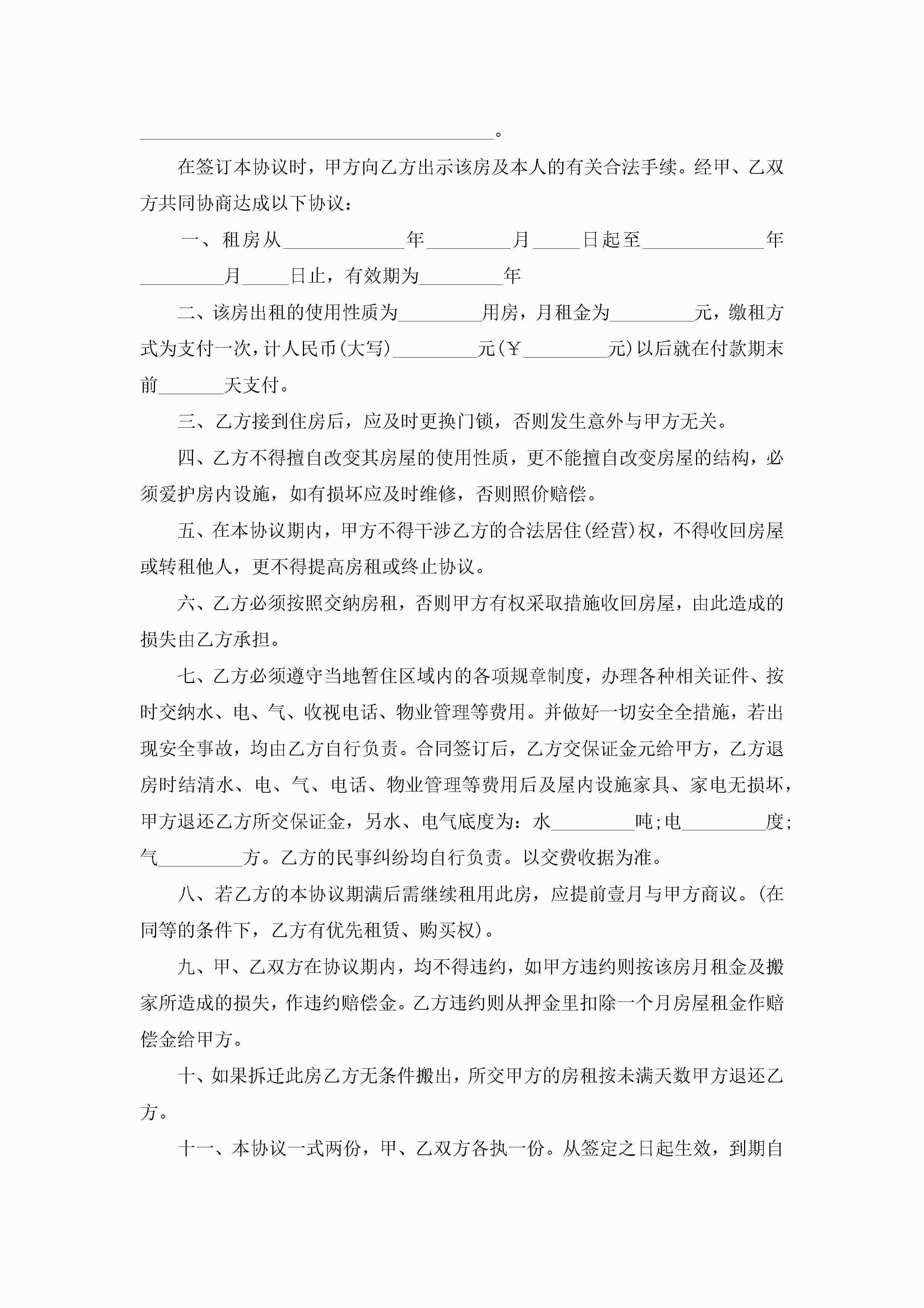 租房合同协议书万能5篇jugei3月22日 12:38更新关注251 租房合同协议书万能5篇此内容为付费资源,请付费后查看¥10.9 单篇文档限时特惠¥15个人会员开通企业会员开通立即下载无需登陆!可直接快捷下载单个模板付费资源© 版权声明THE ENDWord模板# 实用文档# 实用模板# 信函模板# 协议书 如有问题,可点击最底部“联系我们”联系客服 分享QQ空间微博QQ好友海报分享复制链接收藏