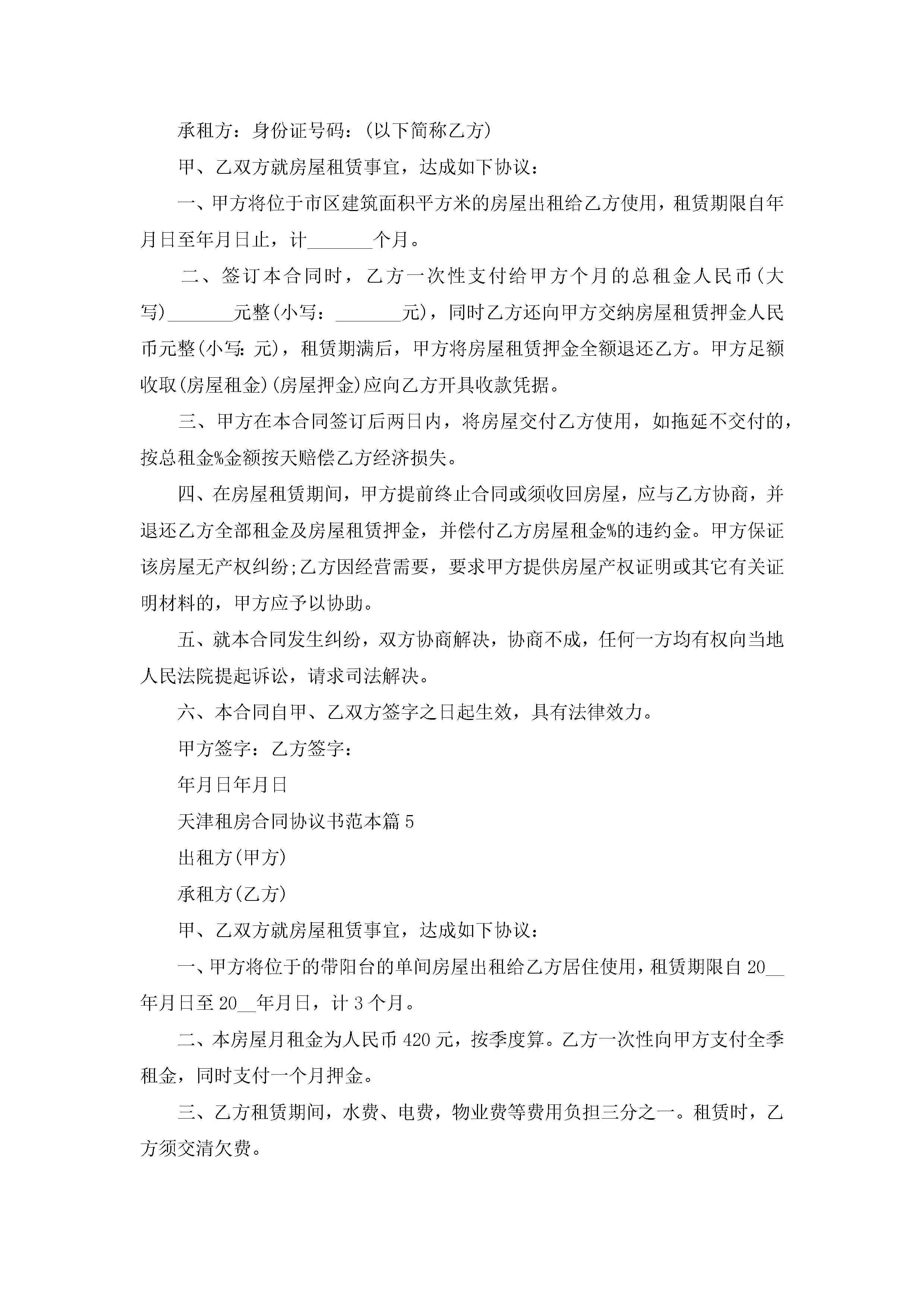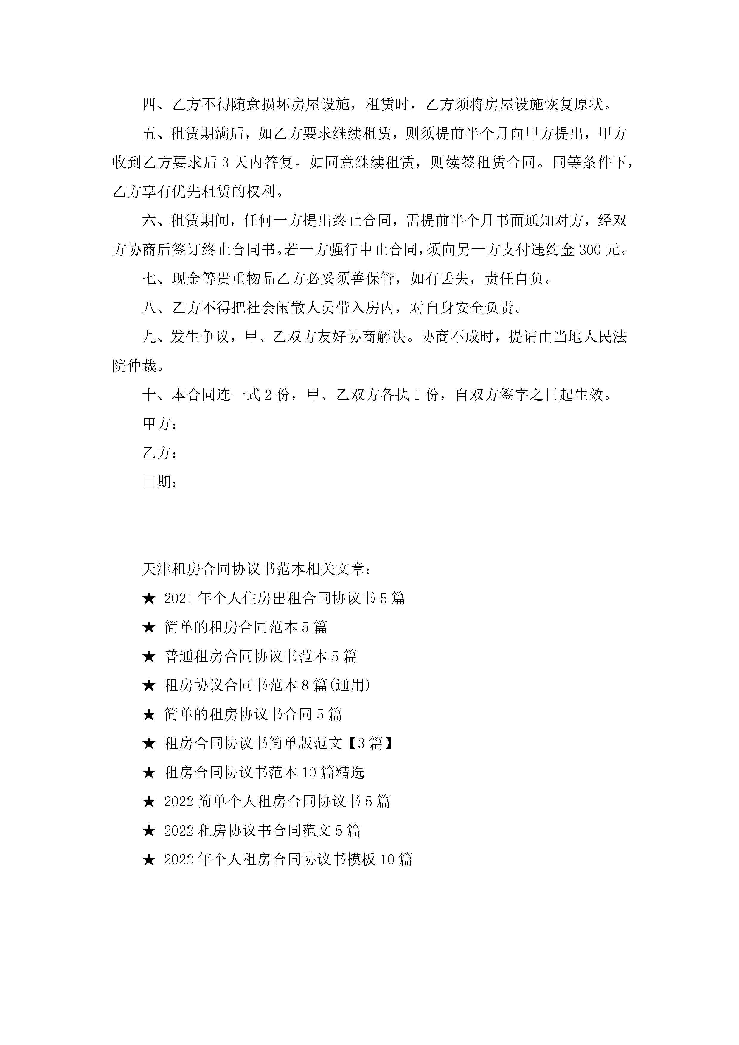 天津租房合同协议书范本5篇jugei3月22日 12:38更新关注222 天津租房合同协议书范本5篇此内容为付费资源,请付费后查看¥10.9 单篇文档限时特惠¥15个人会员开通企业会员开通立即下载无需登陆!可直接快捷下载单个模板付费资源© 版权声明THE ENDWord模板# 实用文档# 实用模板# 信函模板# 协议书 如有问题,可点击最底部“联系我们”联系客服 分享QQ空间微博QQ好友海报分享复制链接收藏