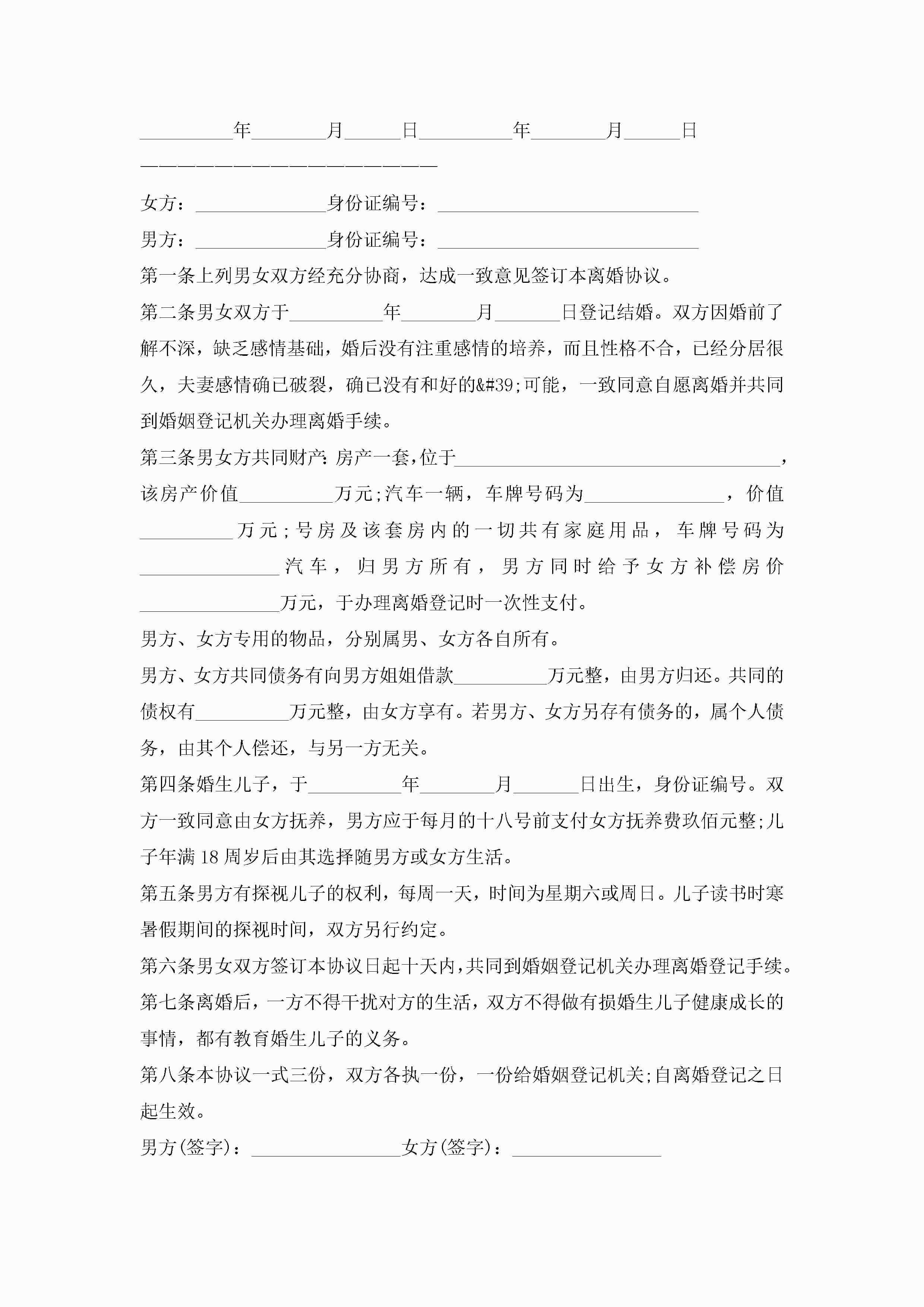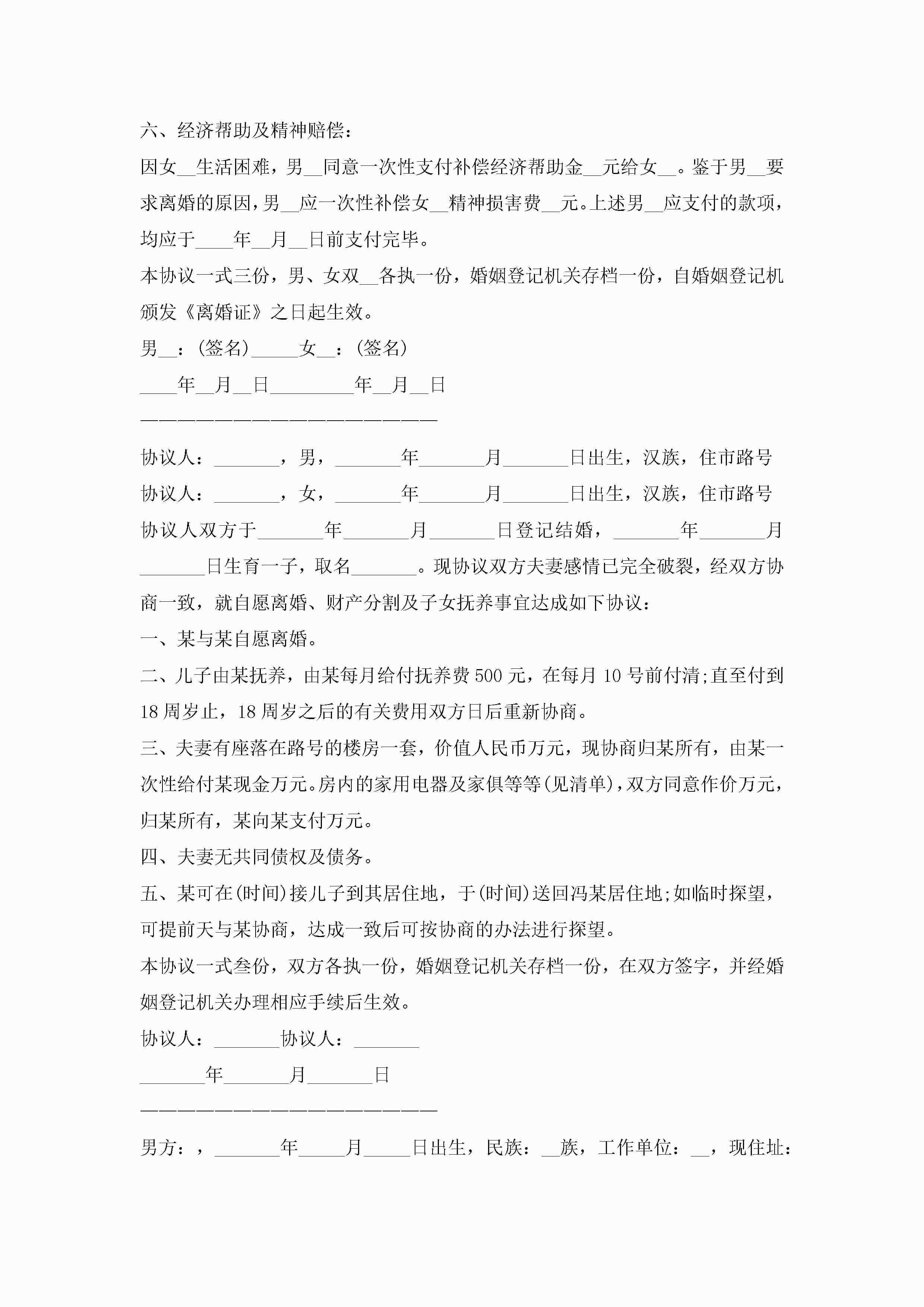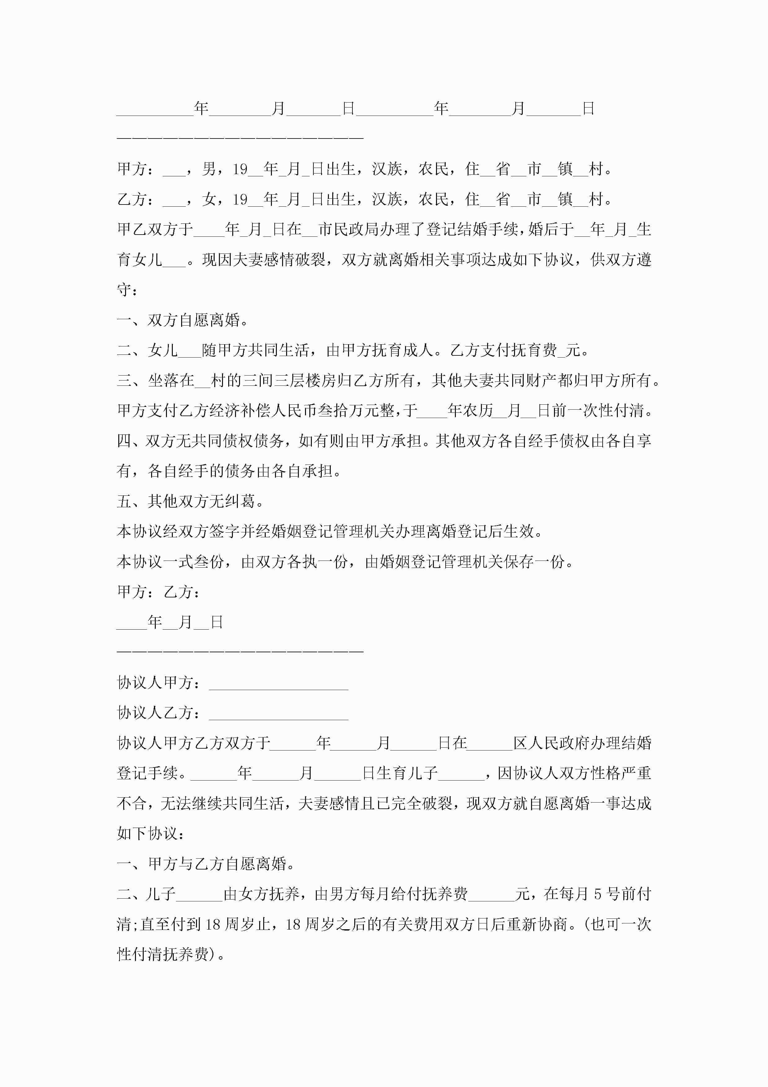 夫妻离婚协议书10篇精选jugei3月22日 12:38更新关注195 夫妻离婚协议书10篇精选此内容为付费资源,请付费后查看¥10.9 单篇文档限时特惠¥15个人会员开通企业会员开通立即下载无需登陆!可直接快捷下载单个模板付费资源© 版权声明THE ENDWord模板# 实用文档# 实用模板# 信函模板# 协议书 如有问题,可点击最底部“联系我们”联系客服 分享QQ空间微博QQ好友海报分享复制链接收藏