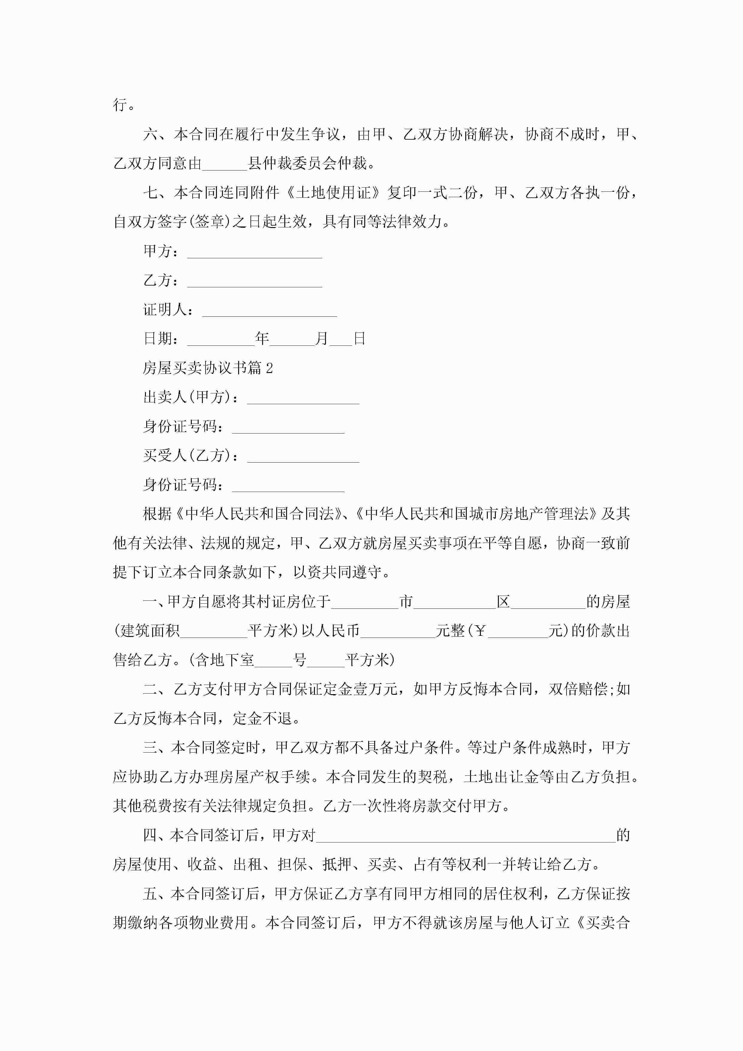 房屋买卖协议书10篇精选jugei3月22日 12:38更新关注203 房屋买卖协议书10篇精选此内容为付费资源,请付费后查看¥10.9 单篇文档限时特惠¥15个人会员开通企业会员开通立即下载无需登陆!可直接快捷下载单个模板付费资源© 版权声明THE ENDWord模板# 实用文档# 实用模板# 信函模板# 协议书 如有问题,可点击最底部“联系我们”联系客服 分享QQ空间微博QQ好友海报分享复制链接收藏