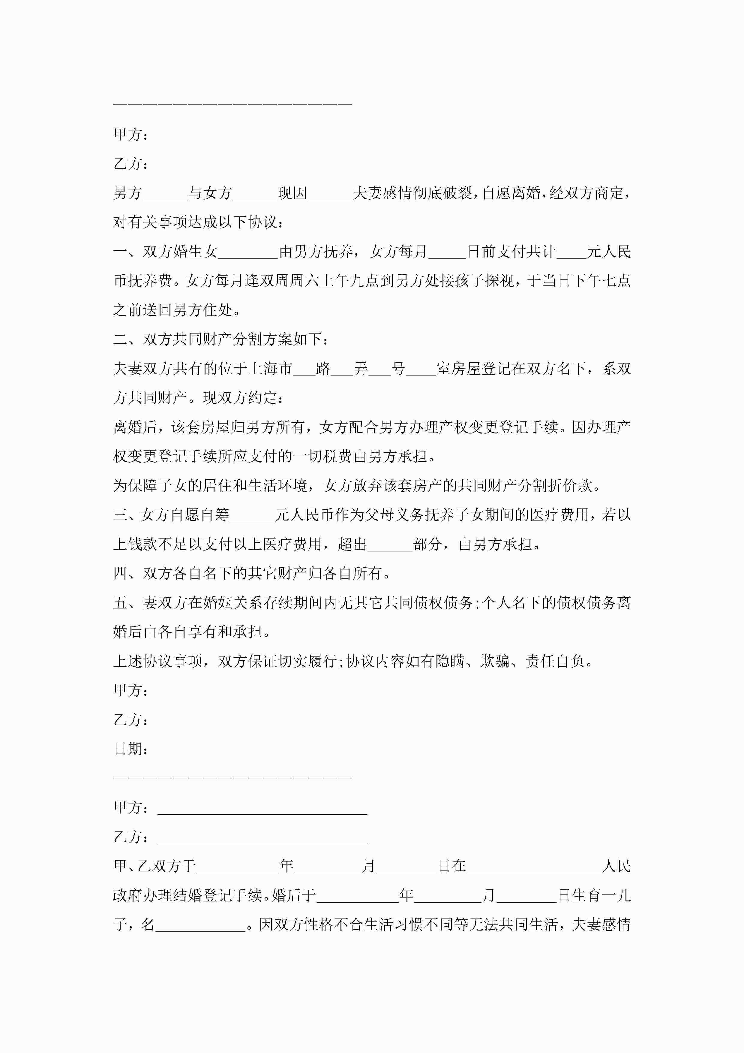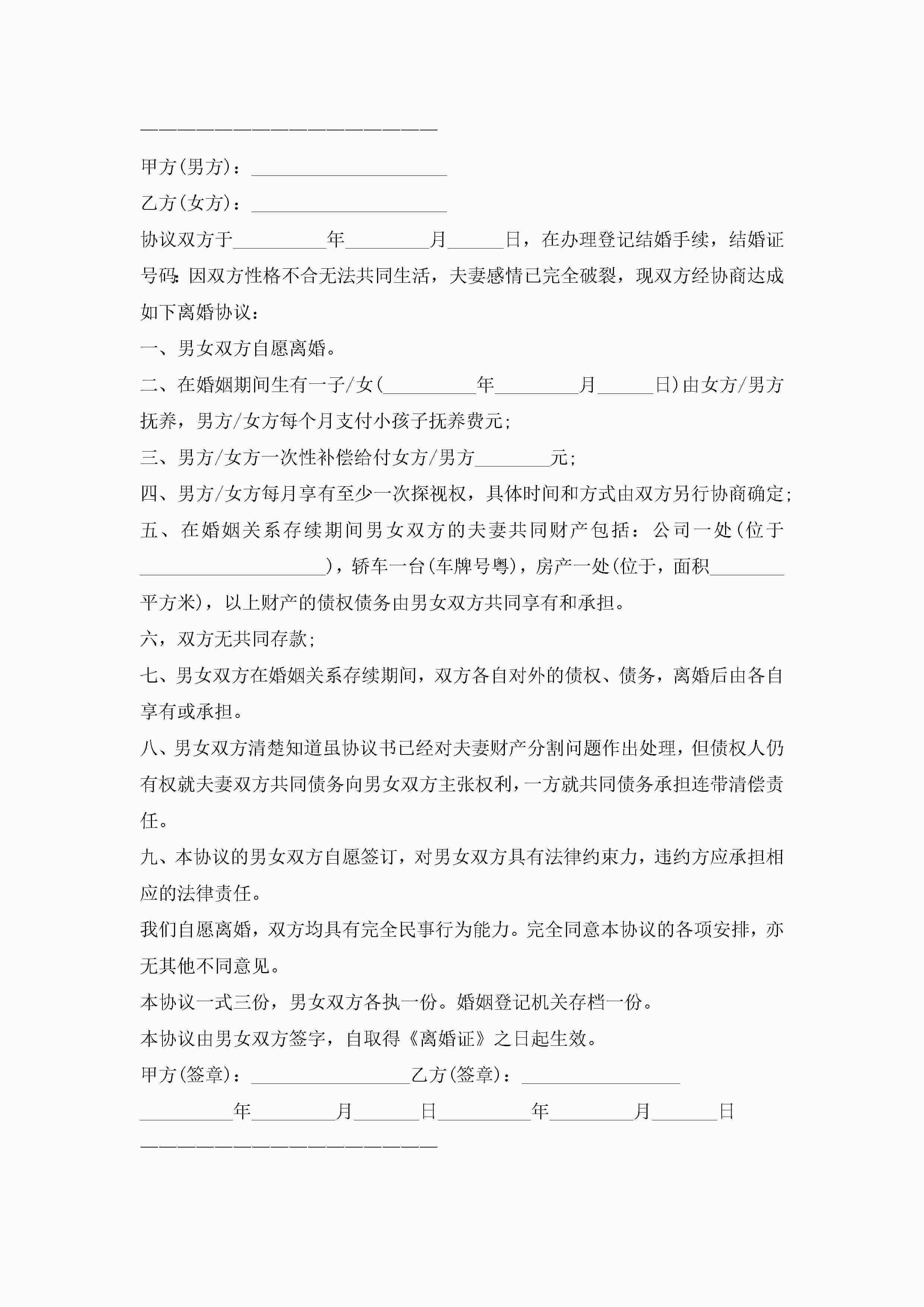 离婚协议书范文完整版10篇精选jugei3月22日 12:38更新关注252 离婚协议书范文完整版10篇精选此内容为付费资源,请付费后查看¥10.9 单篇文档限时特惠¥15个人会员开通企业会员开通立即下载无需登陆!可直接快捷下载单个模板付费资源© 版权声明THE ENDWord模板# 实用文档# 实用模板# 信函模板# 协议书 如有问题,可点击最底部“联系我们”联系客服 分享QQ空间微博QQ好友海报分享复制链接收藏
