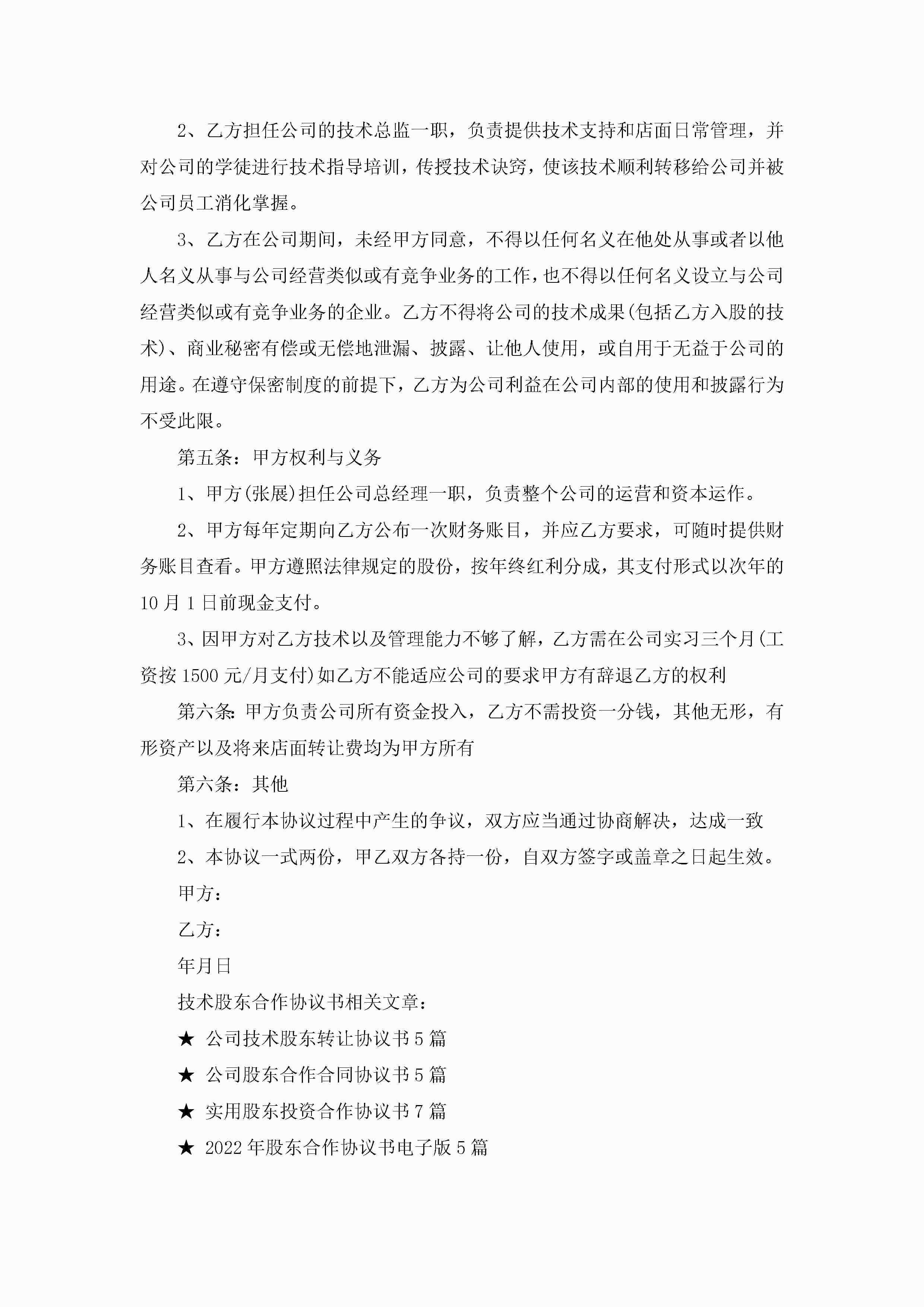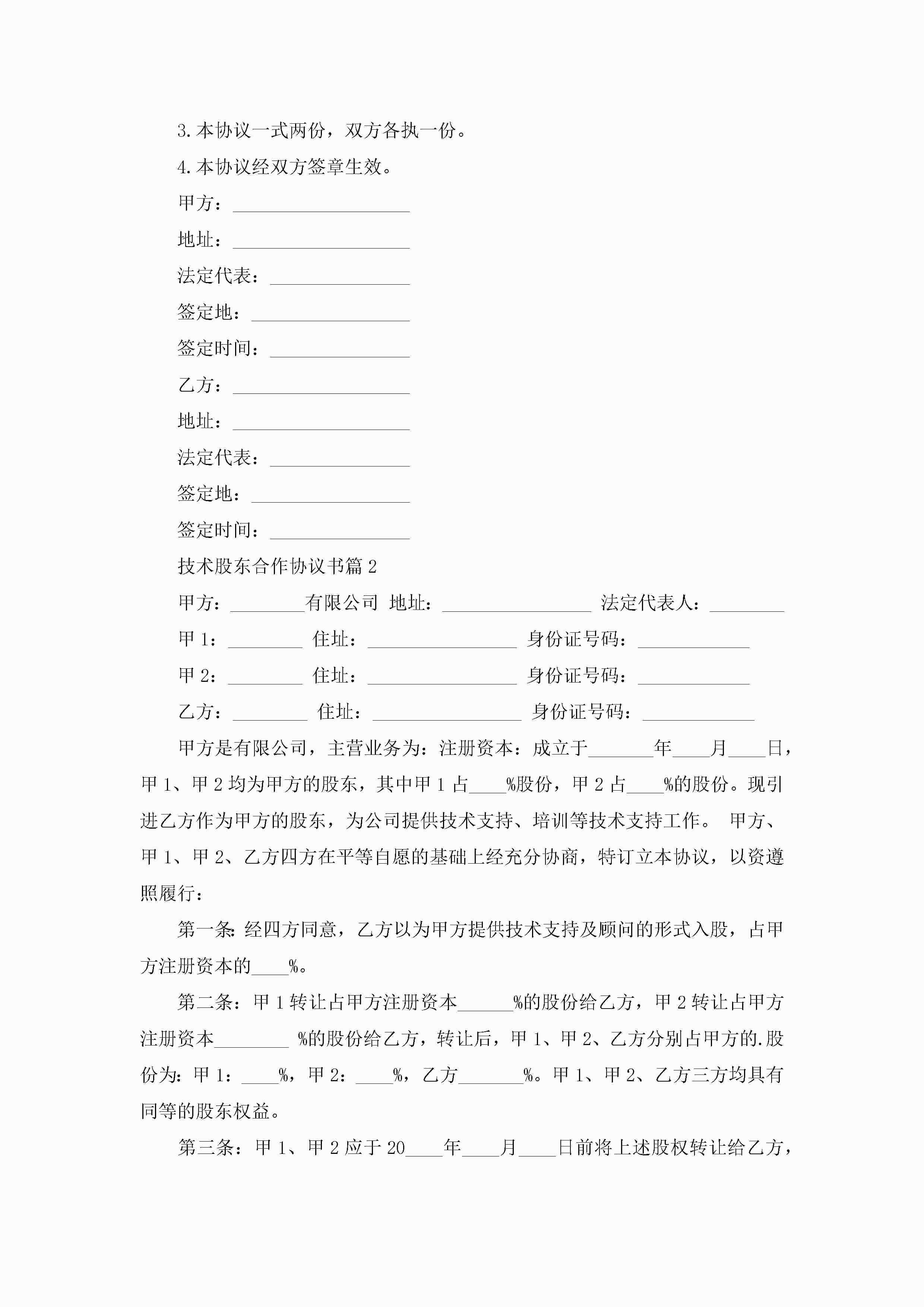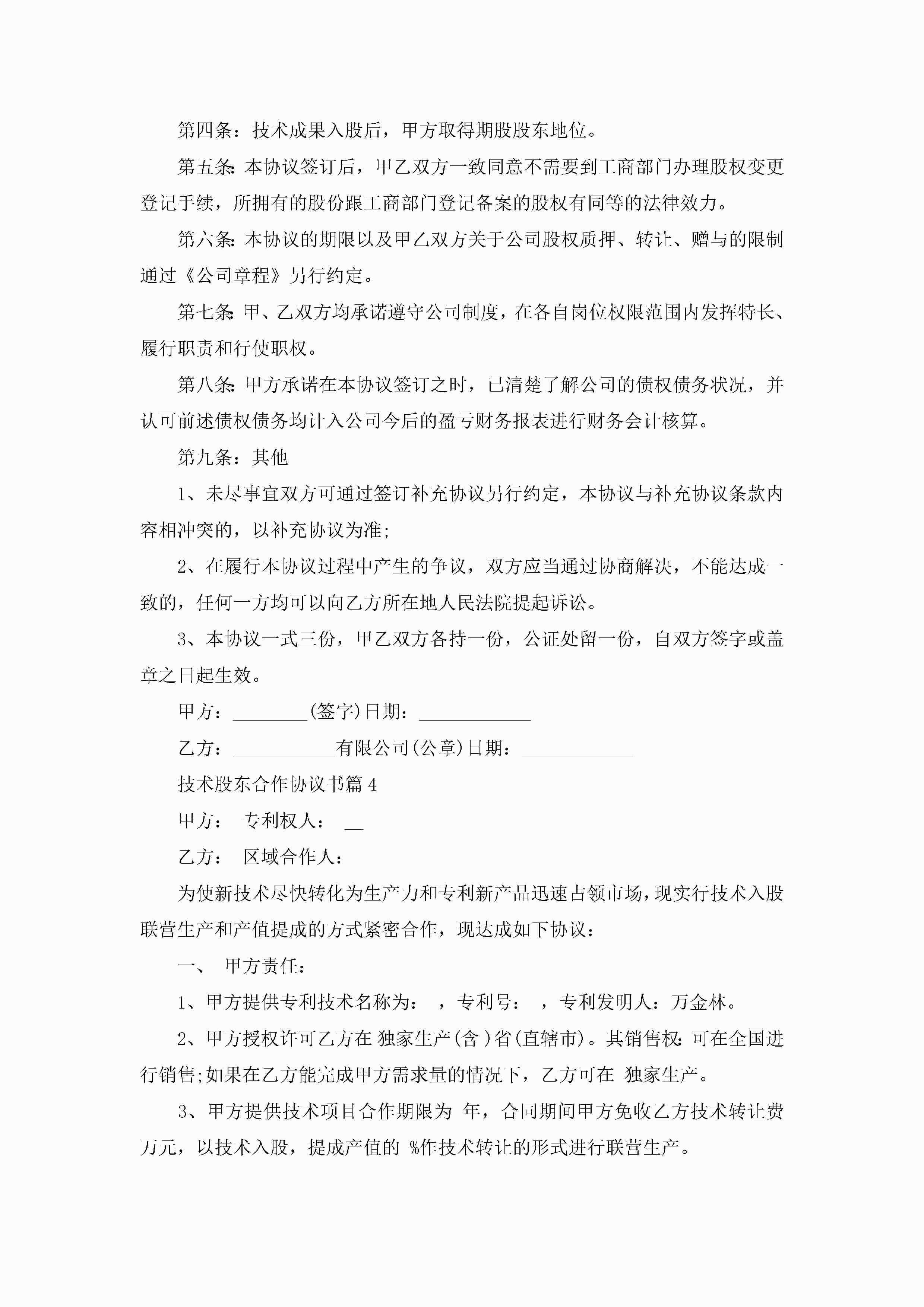 技术股东合作协议书5篇jugei3月22日 12:38更新关注228 技术股东合作协议书5篇此内容为付费资源,请付费后查看¥10.9 单篇文档限时特惠¥15个人会员开通企业会员开通立即下载无需登陆!可直接快捷下载单个模板付费资源© 版权声明THE ENDWord模板# 实用文档# 信函模板# 协议书# 技术股东合作协议书 如有问题,可点击最底部“联系我们”联系客服 分享QQ空间微博QQ好友海报分享复制链接收藏