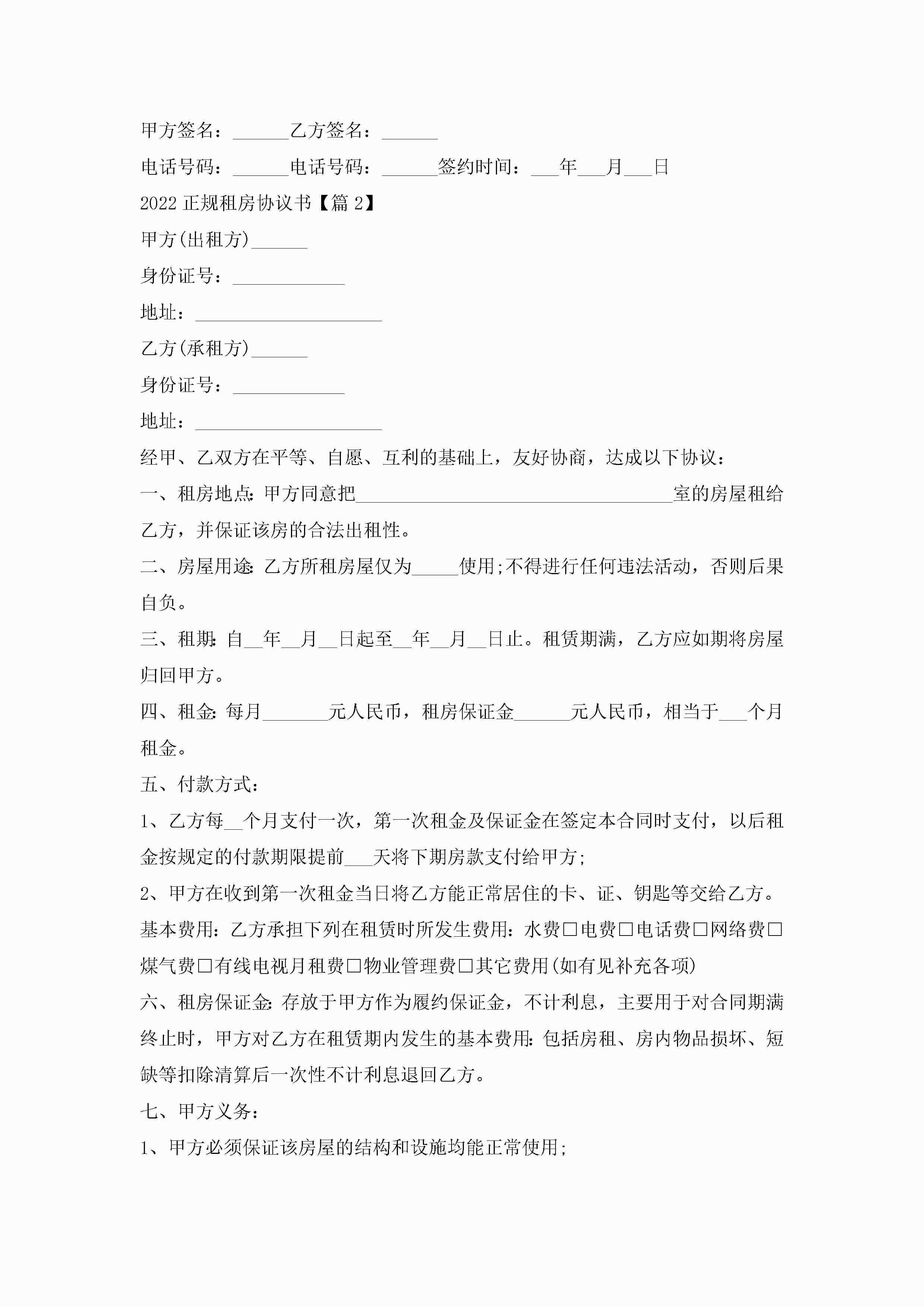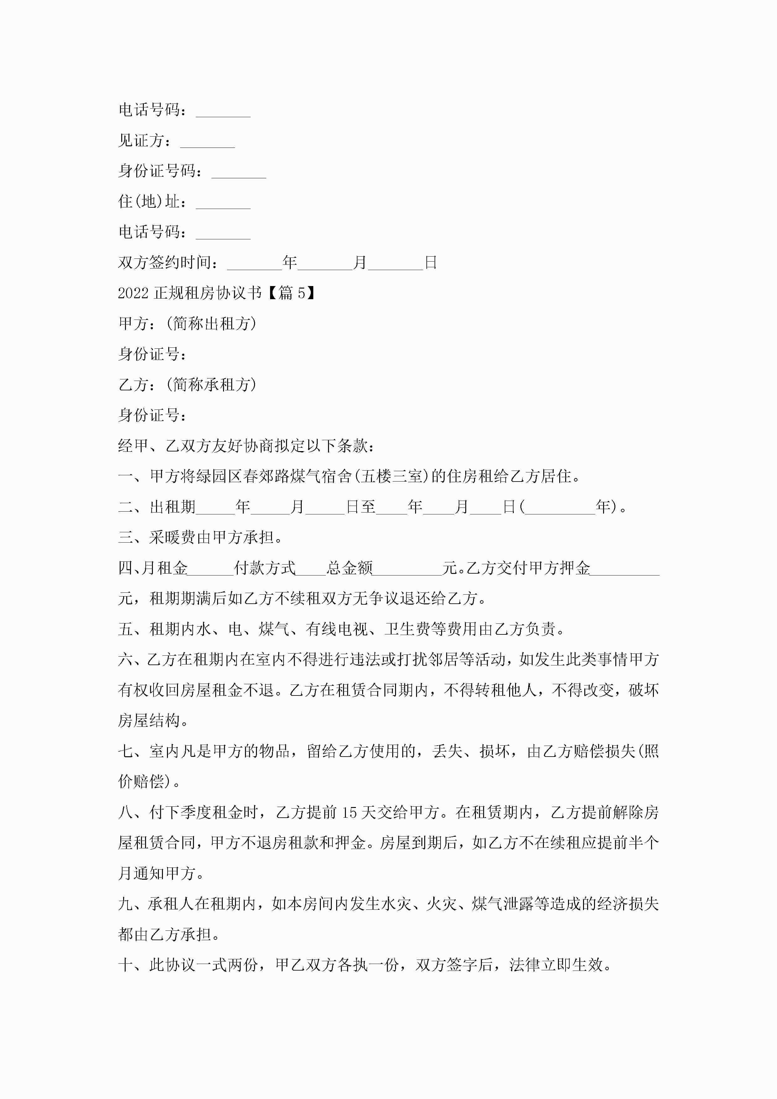 2022正规租房协议书(通用6篇)jugei3月22日 12:38更新关注286 2022正规租房协议书(通用6篇)此内容为付费资源,请付费后查看¥10.9 单篇文档限时特惠¥15个人会员开通企业会员开通立即下载无需登陆!可直接快捷下载单个模板付费资源© 版权声明THE ENDWord模板# 实用文档# 实用模板# 信函模板# 协议书 如有问题,可点击最底部“联系我们”联系客服 分享QQ空间微博QQ好友海报分享复制链接收藏