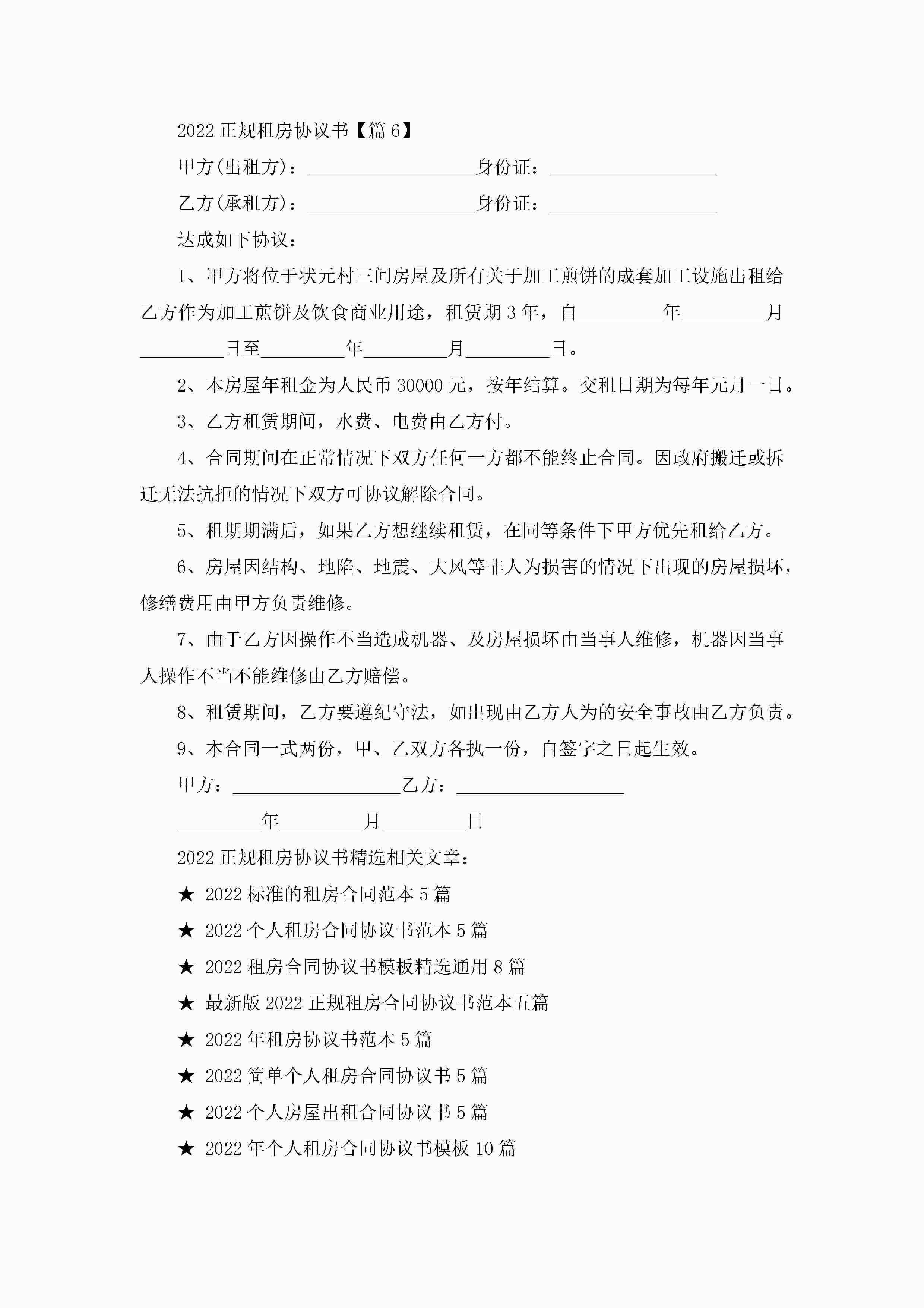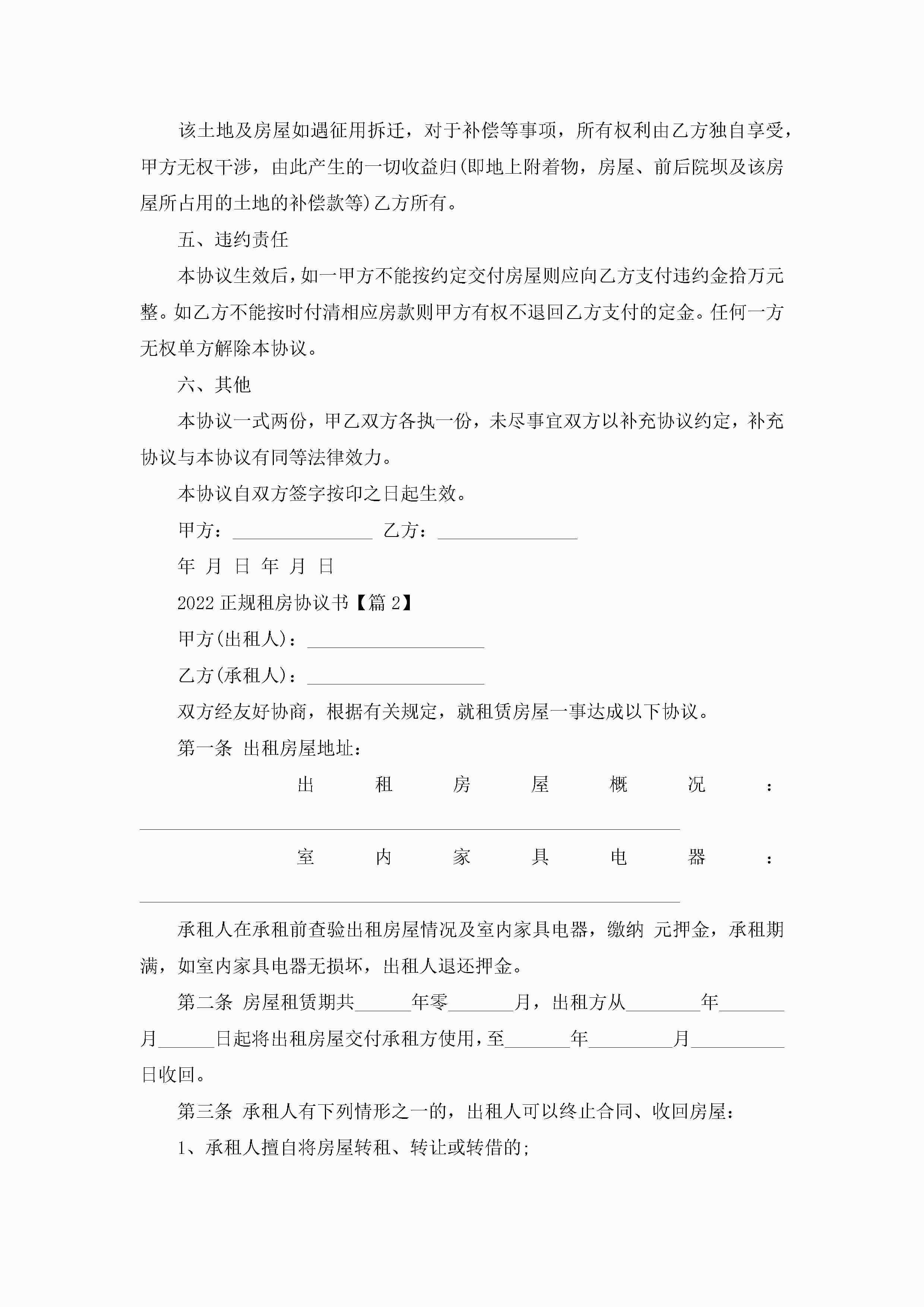 2022正规租房协议书(精选6篇)jugei3月22日 12:38更新关注211 2022正规租房协议书(精选6篇)此内容为付费资源,请付费后查看¥10.9 单篇文档限时特惠¥15个人会员开通企业会员开通立即下载无需登陆!可直接快捷下载单个模板付费资源© 版权声明THE ENDWord模板# 实用文档# 实用模板# 信函模板# 协议书 如有问题,可点击最底部“联系我们”联系客服 分享QQ空间微博QQ好友海报分享复制链接收藏