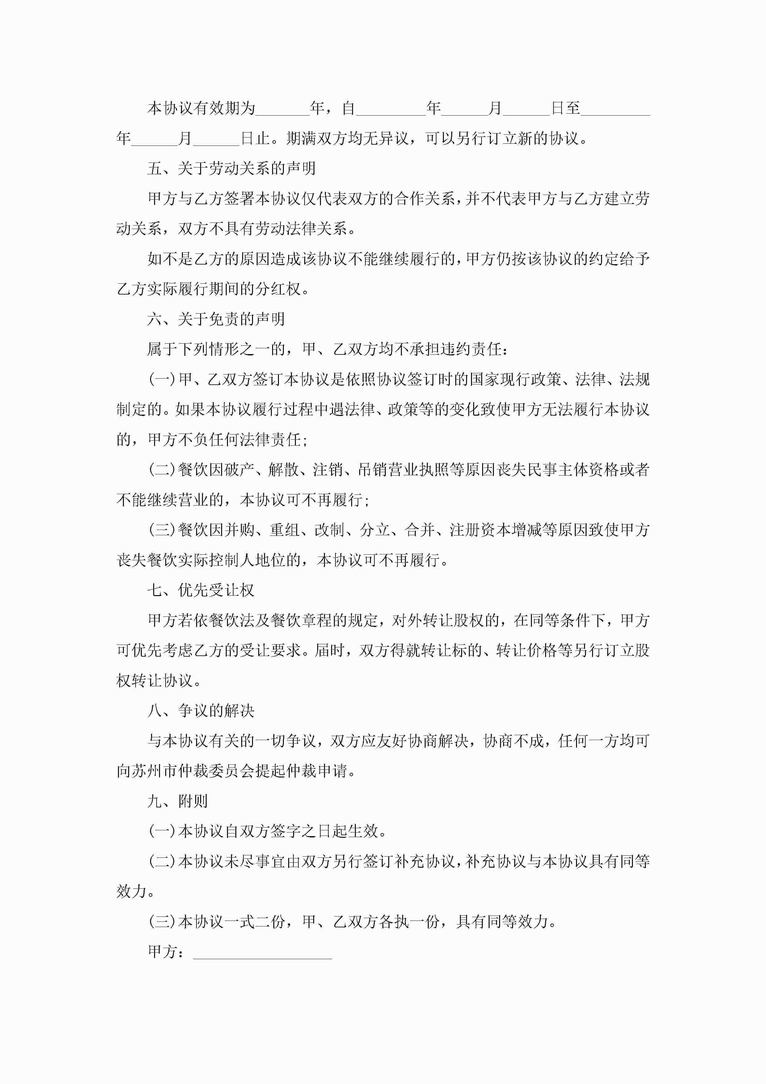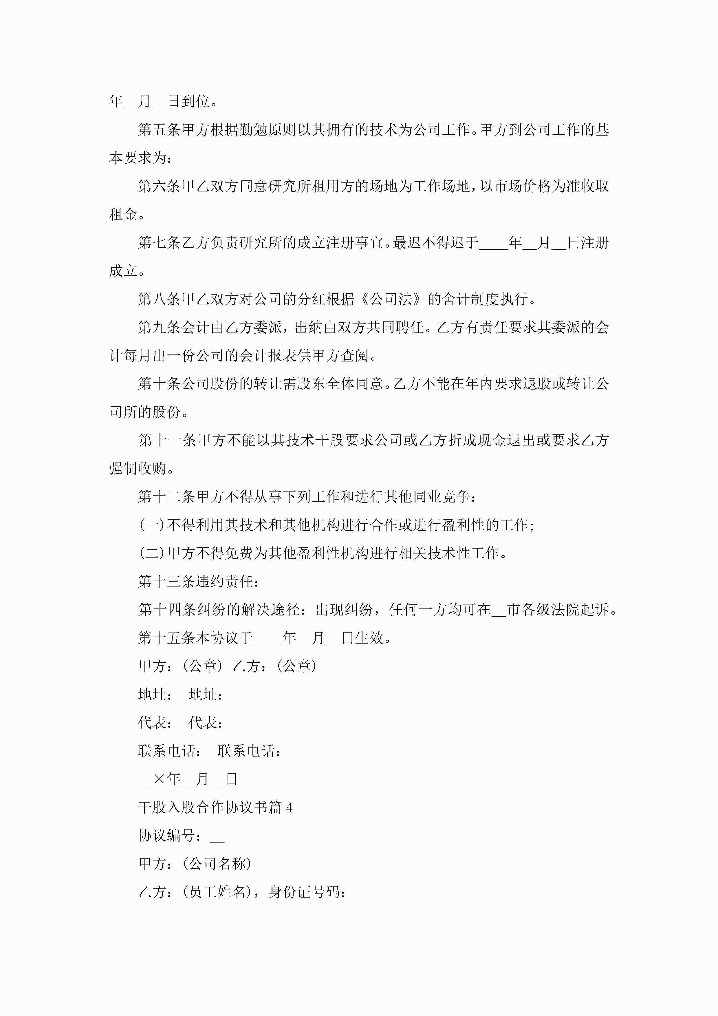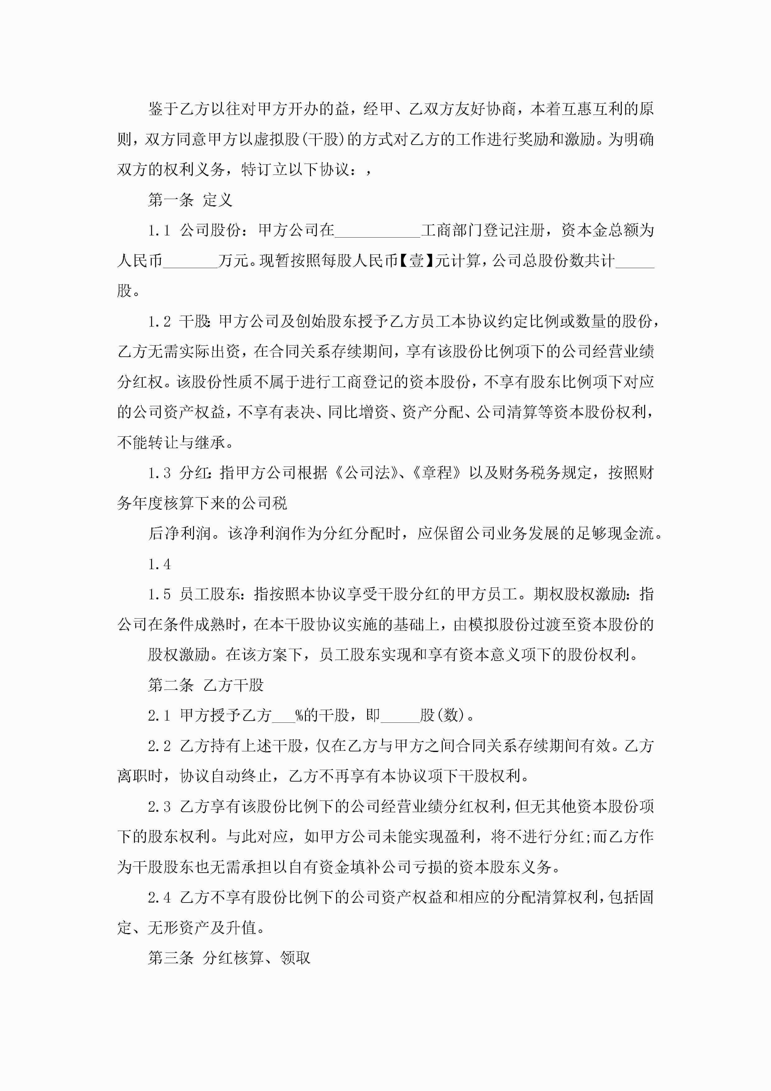 干股入股合作协议书5篇jugei3月22日 12:38更新关注217 干股入股合作协议书5篇此内容为付费资源,请付费后查看¥10.9 单篇文档限时特惠¥15个人会员开通企业会员开通立即下载无需登陆!可直接快捷下载单个模板付费资源© 版权声明THE ENDWord模板# 实用文档# 信函模板# 协议书# 干股入股合作协议书 如有问题,可点击最底部“联系我们”联系客服 分享QQ空间微博QQ好友海报分享复制链接收藏