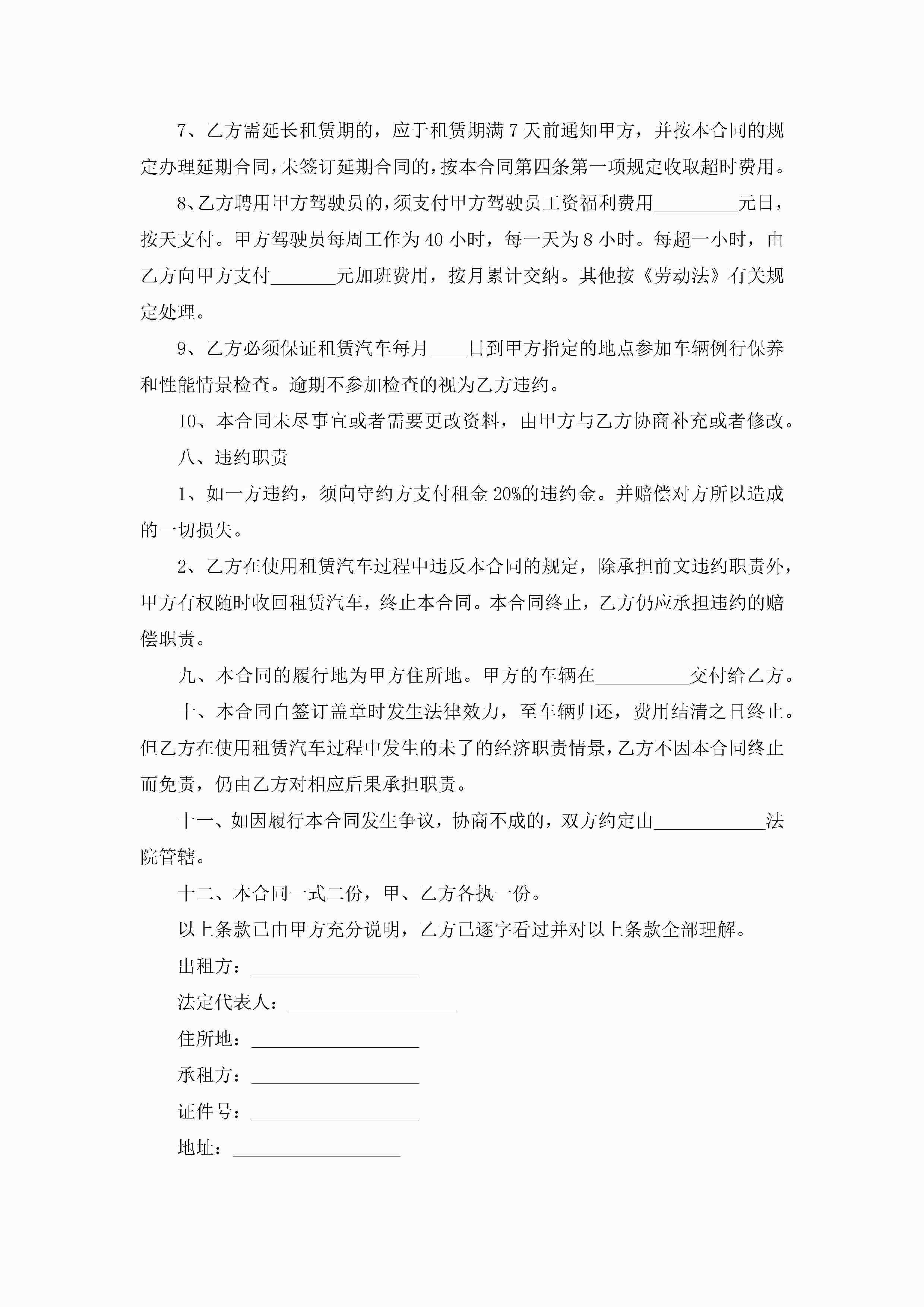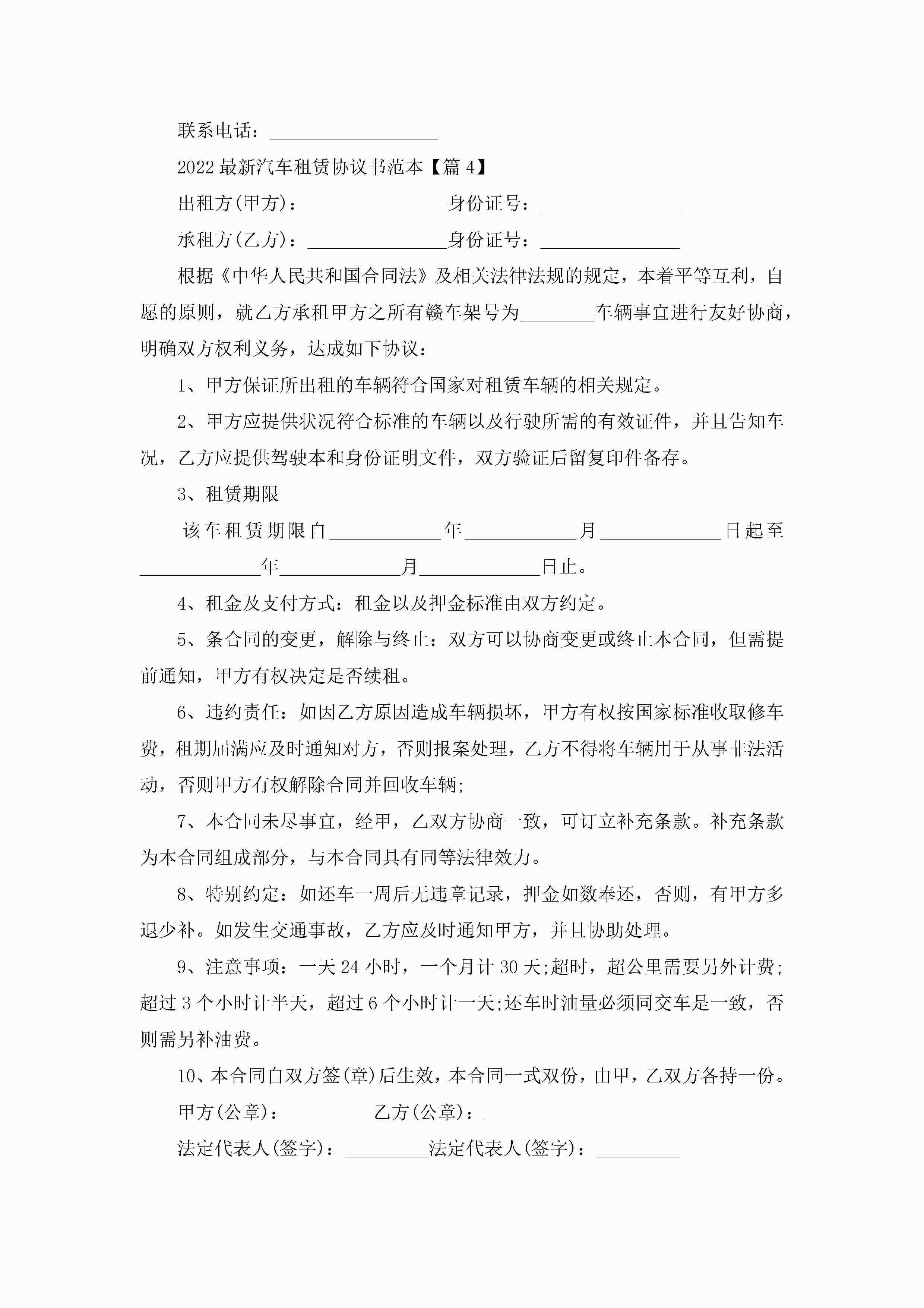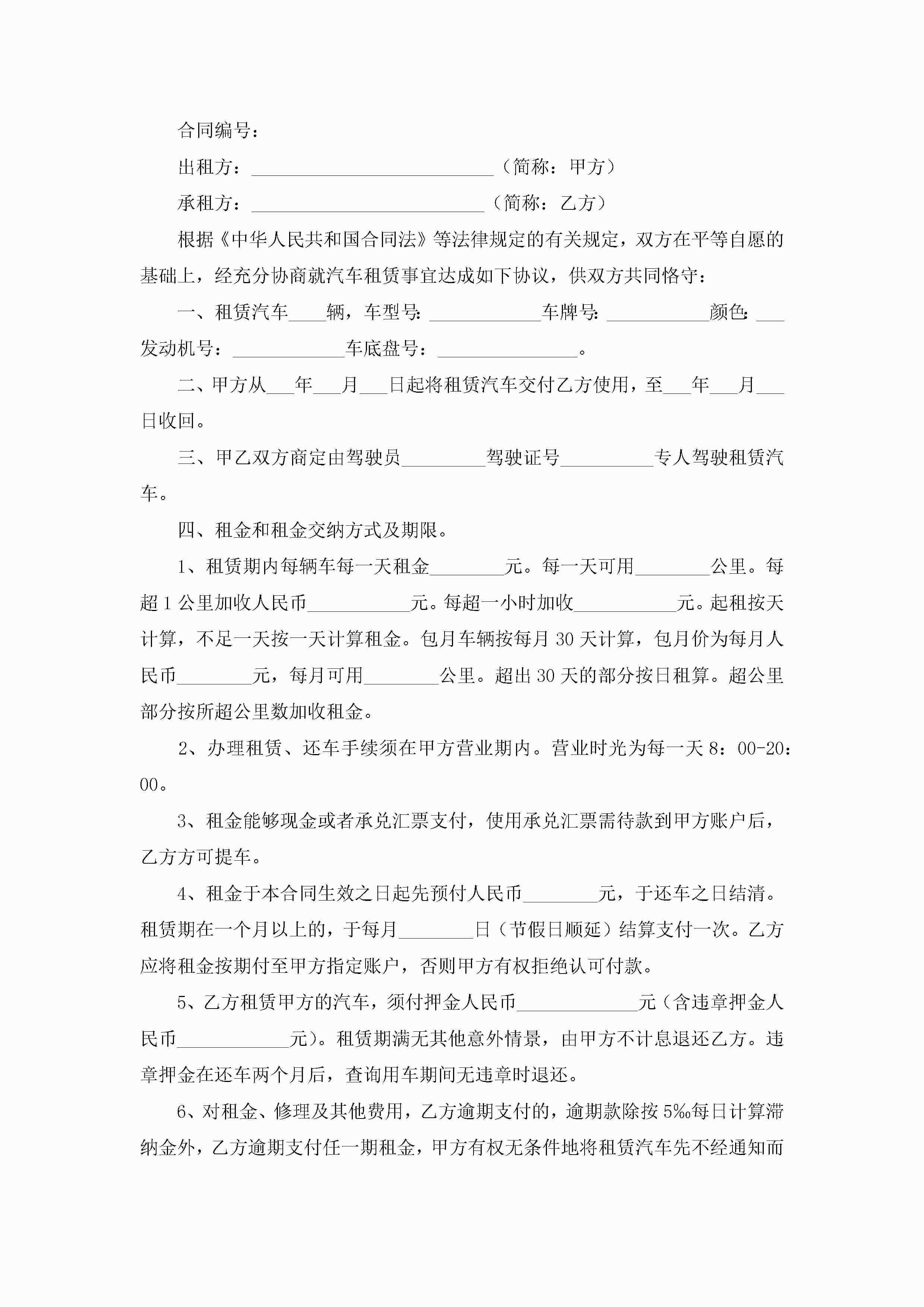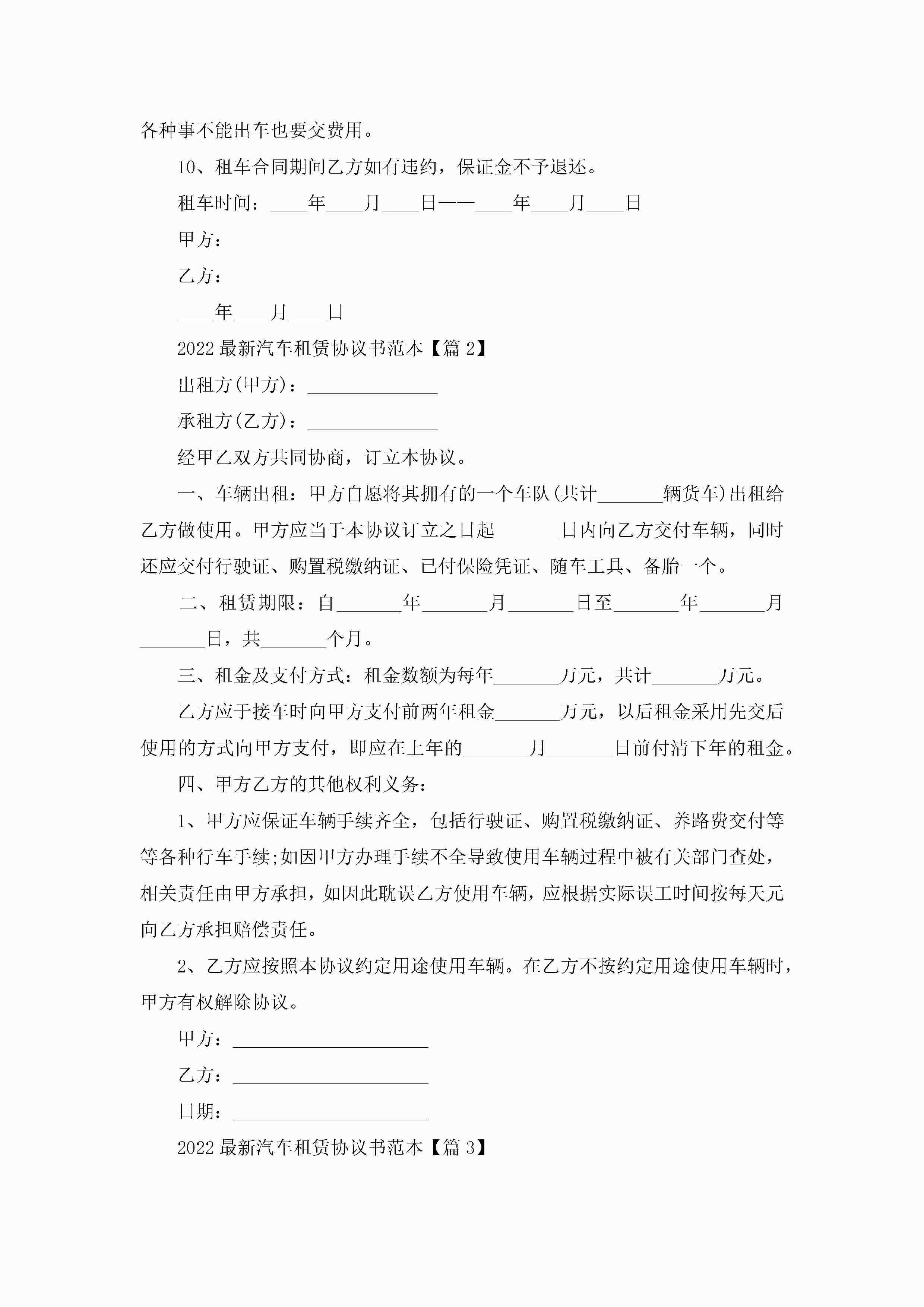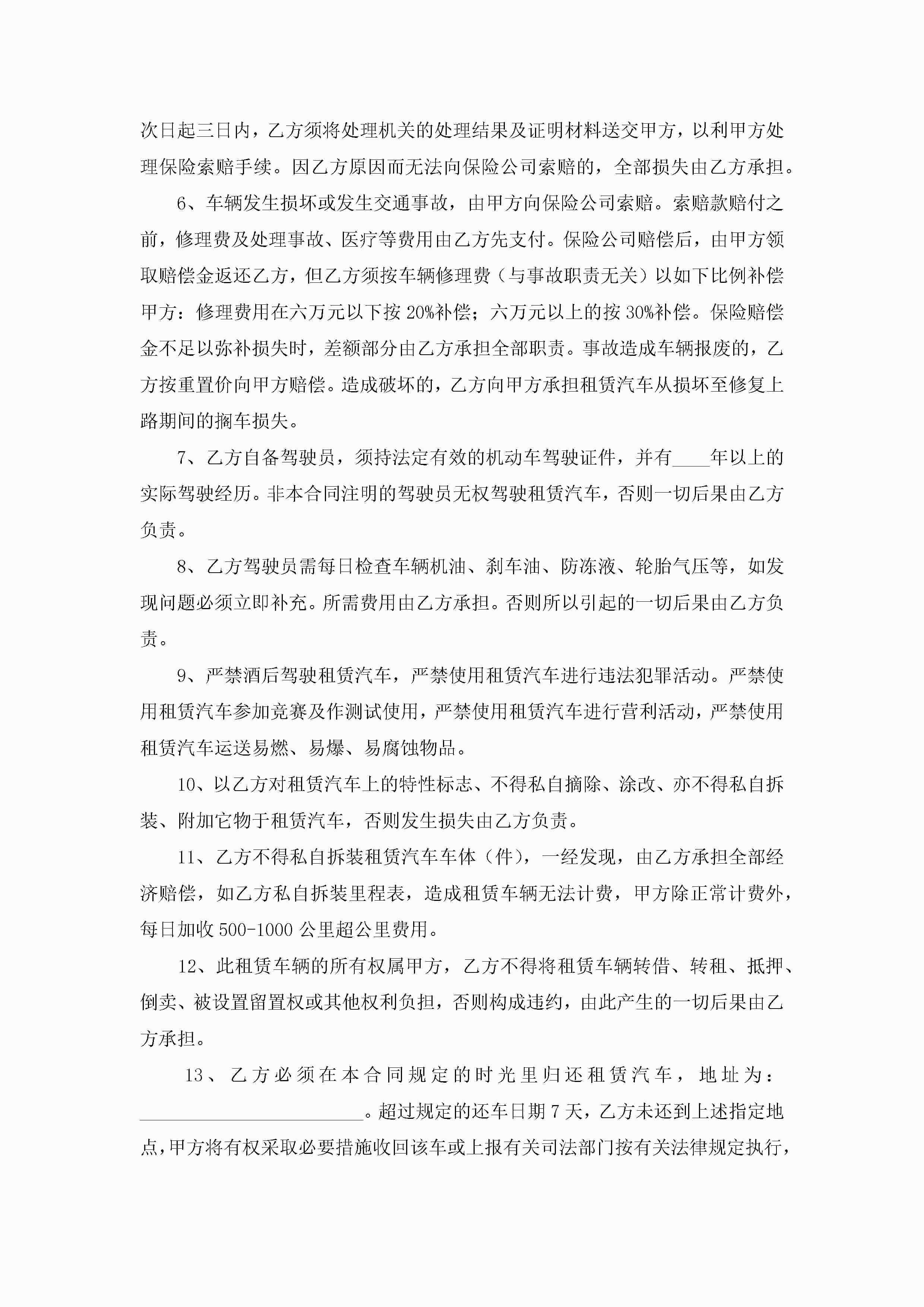 2022最新汽车租赁协议书范本(精选7篇)jugei3月22日 12:38更新关注200 2022最新汽车租赁协议书范本(精选7篇)此内容为付费资源,请付费后查看¥10.9 单篇文档限时特惠¥15个人会员开通企业会员开通立即下载无需登陆!可直接快捷下载单个模板付费资源© 版权声明THE ENDWord模板# 实用文档# 实用模板# 信函模板# 协议书 如有问题,可点击最底部“联系我们”联系客服 分享QQ空间微博QQ好友海报分享复制链接收藏