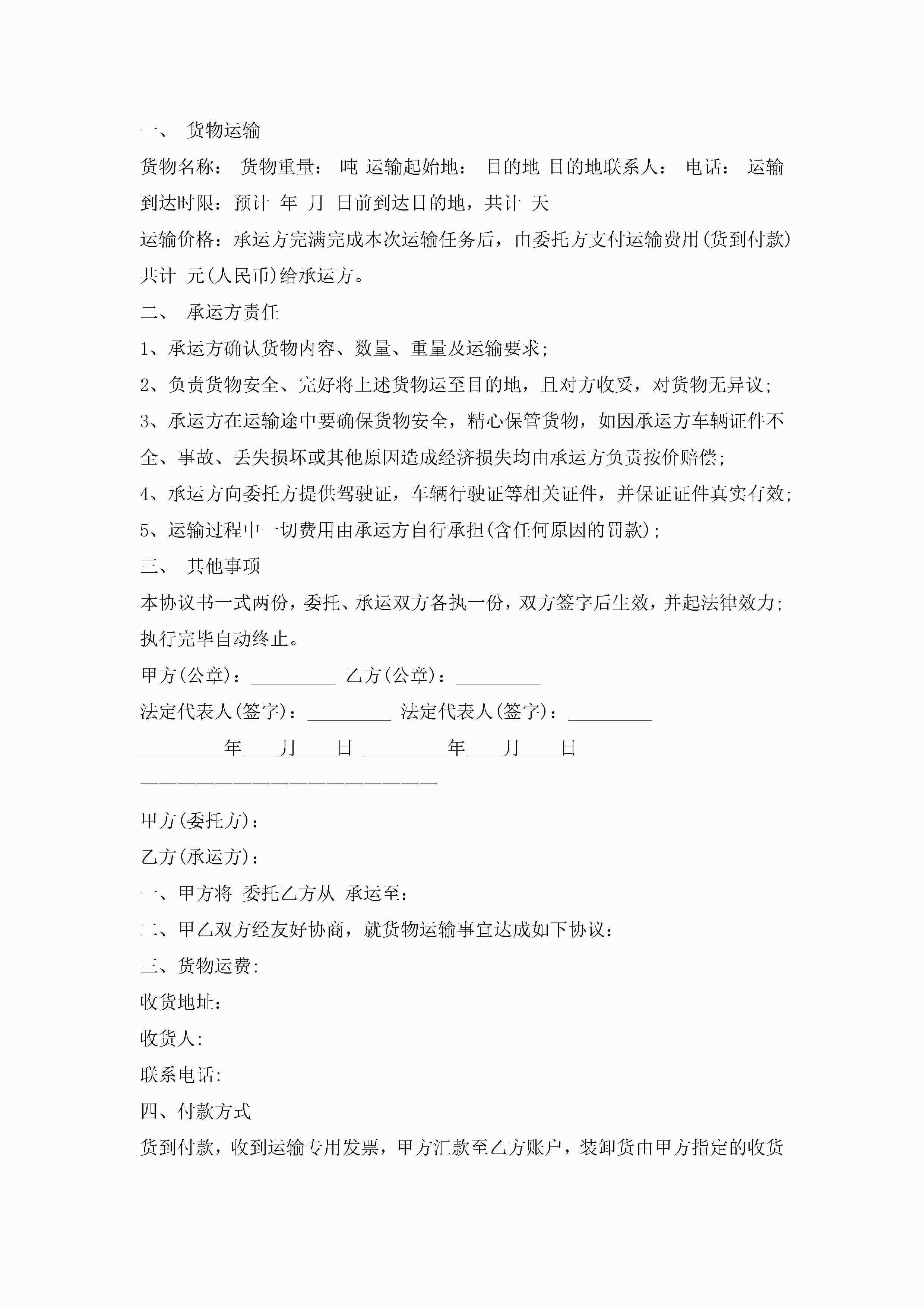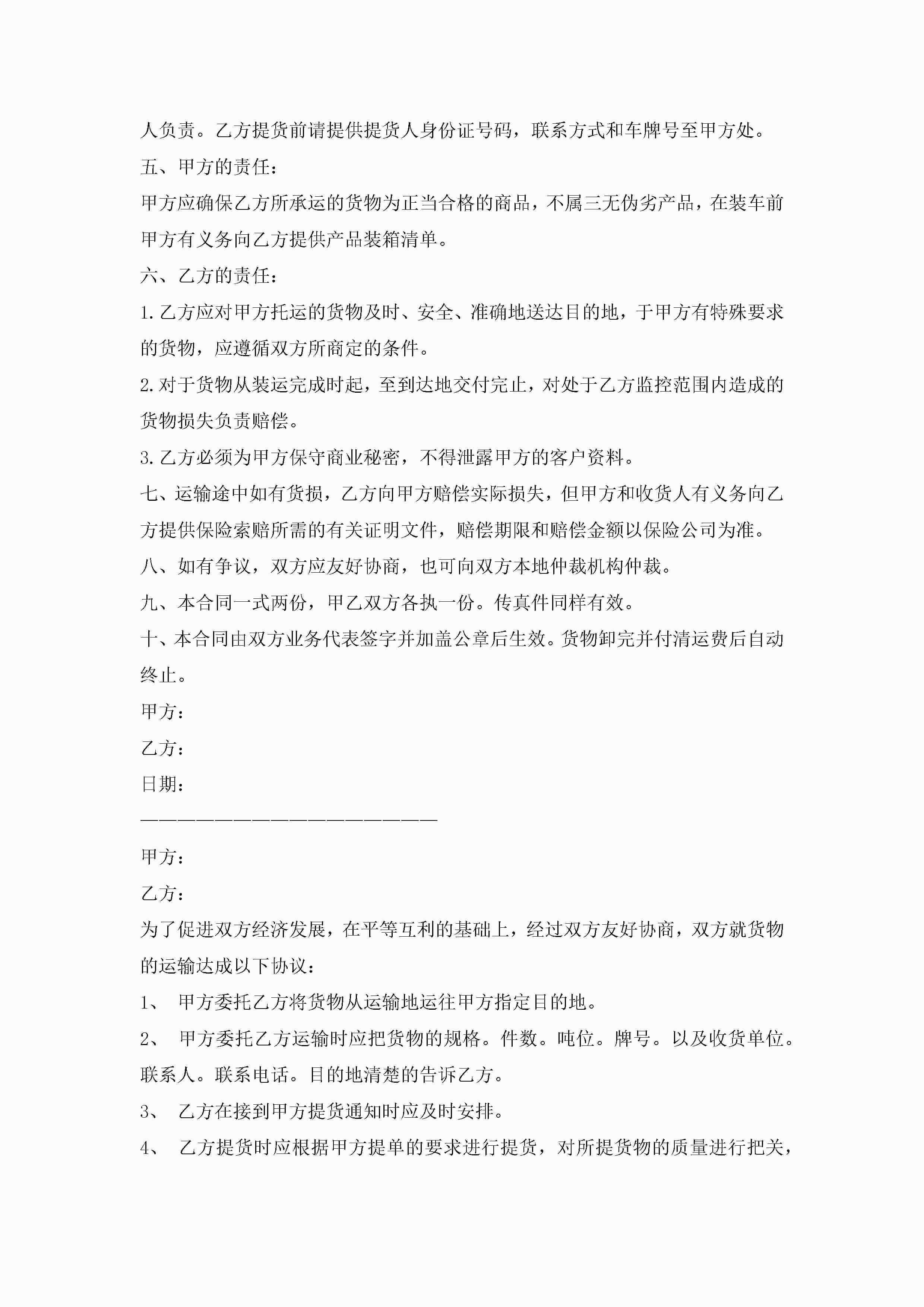 货物运输协议10篇精选jugei3月22日 12:38更新关注215 货物运输协议10篇精选此内容为付费资源,请付费后查看¥10.9 单篇文档限时特惠¥15个人会员开通企业会员开通立即下载无需登陆!可直接快捷下载单个模板付费资源© 版权声明THE ENDWord模板# 实用文档# 实用模板# 信函模板# 协议书 如有问题,可点击最底部“联系我们”联系客服 分享QQ空间微博QQ好友海报分享复制链接收藏