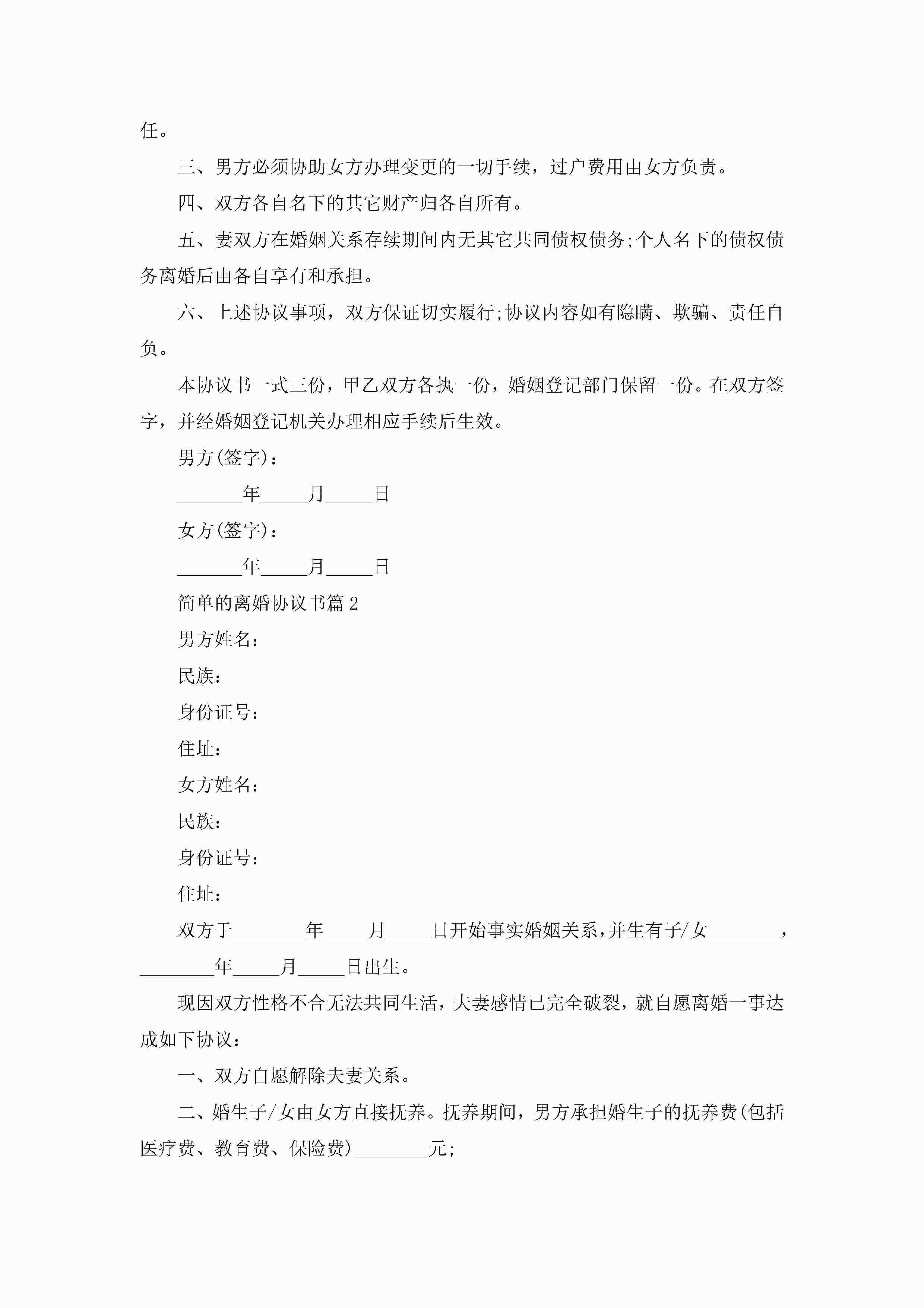 简单的离婚协议书10篇精选jugei3月22日 12:38更新关注207 简单的离婚协议书10篇精选此内容为付费资源,请付费后查看¥10.9 单篇文档限时特惠¥15个人会员开通企业会员开通立即下载无需登陆!可直接快捷下载单个模板付费资源© 版权声明THE ENDWord模板# 实用文档# 实用模板# 信函模板# 协议书 如有问题,可点击最底部“联系我们”联系客服 分享QQ空间微博QQ好友海报分享复制链接收藏