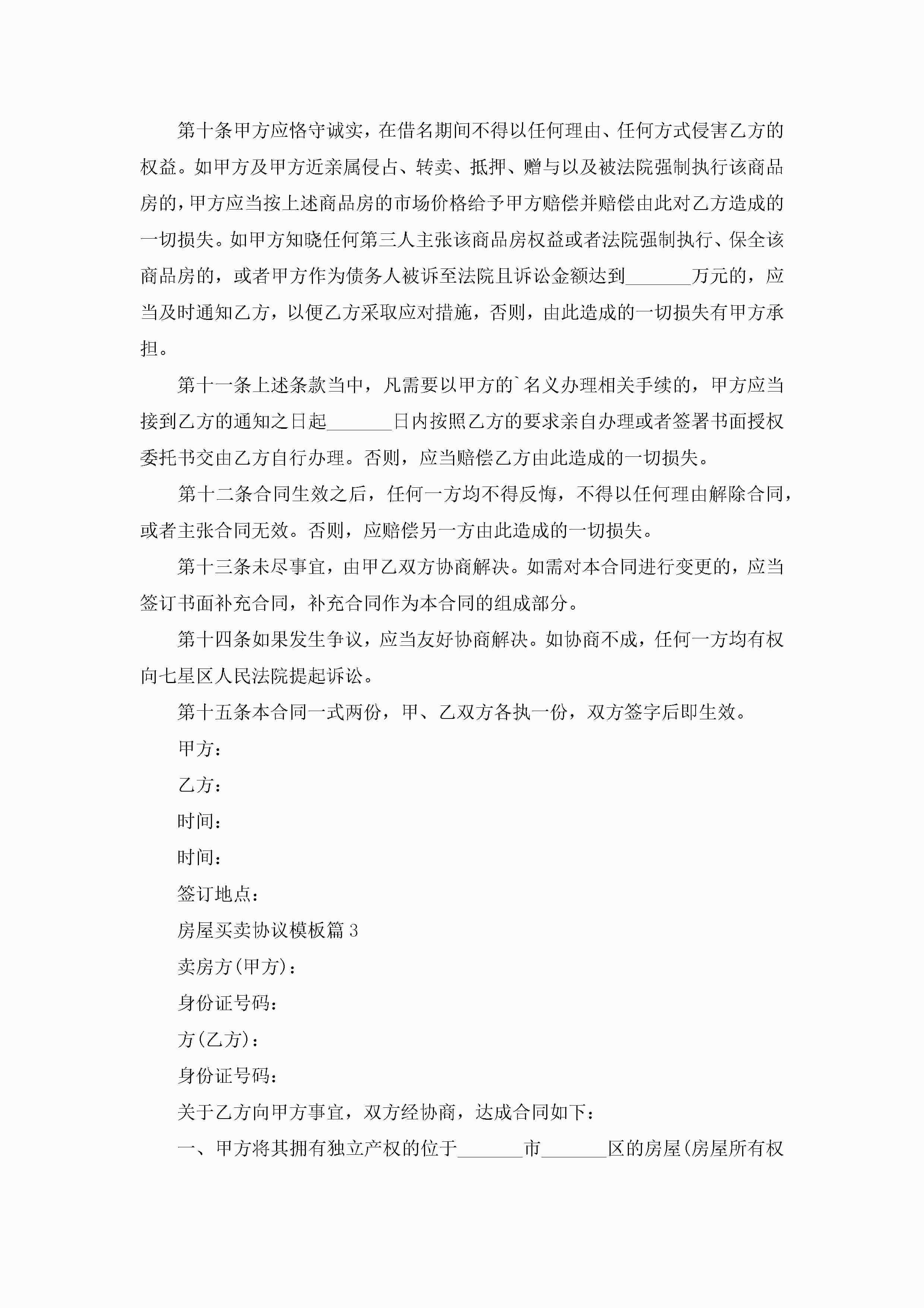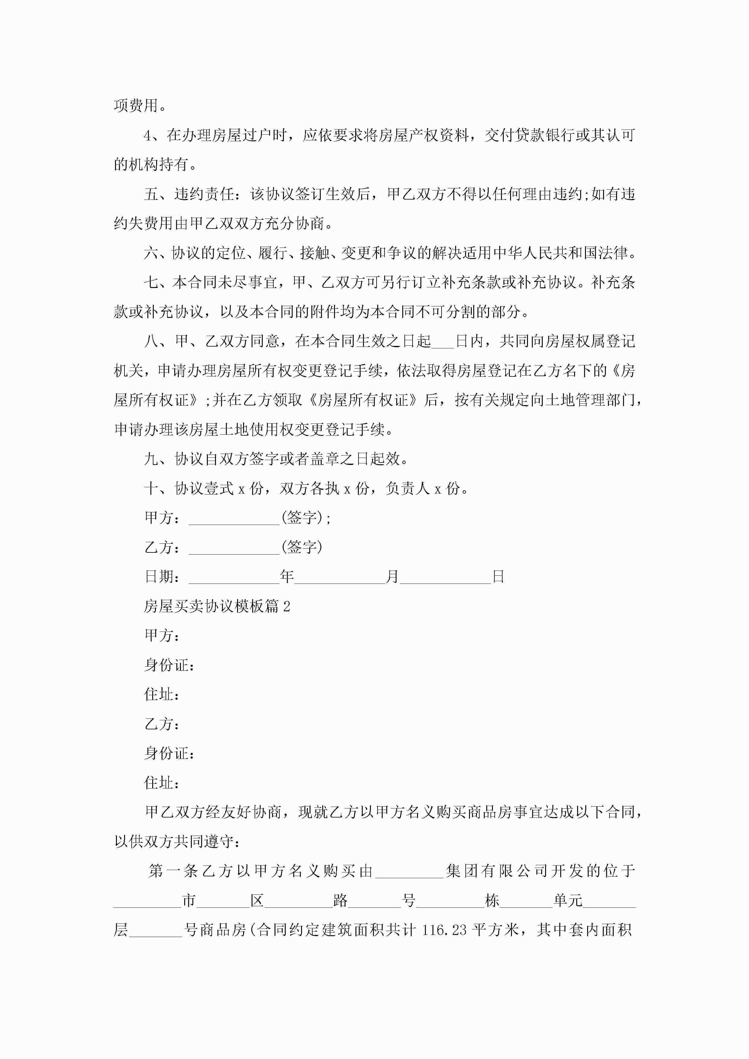 房屋买卖协议模板10篇精选jugei3月22日 12:38更新关注207 房屋买卖协议模板10篇精选此内容为付费资源,请付费后查看¥10.9 单篇文档限时特惠¥15个人会员开通企业会员开通立即下载无需登陆!可直接快捷下载单个模板付费资源© 版权声明THE ENDWord模板# 实用文档# 实用模板# 信函模板# 协议书 如有问题,可点击最底部“联系我们”联系客服 分享QQ空间微博QQ好友海报分享复制链接收藏