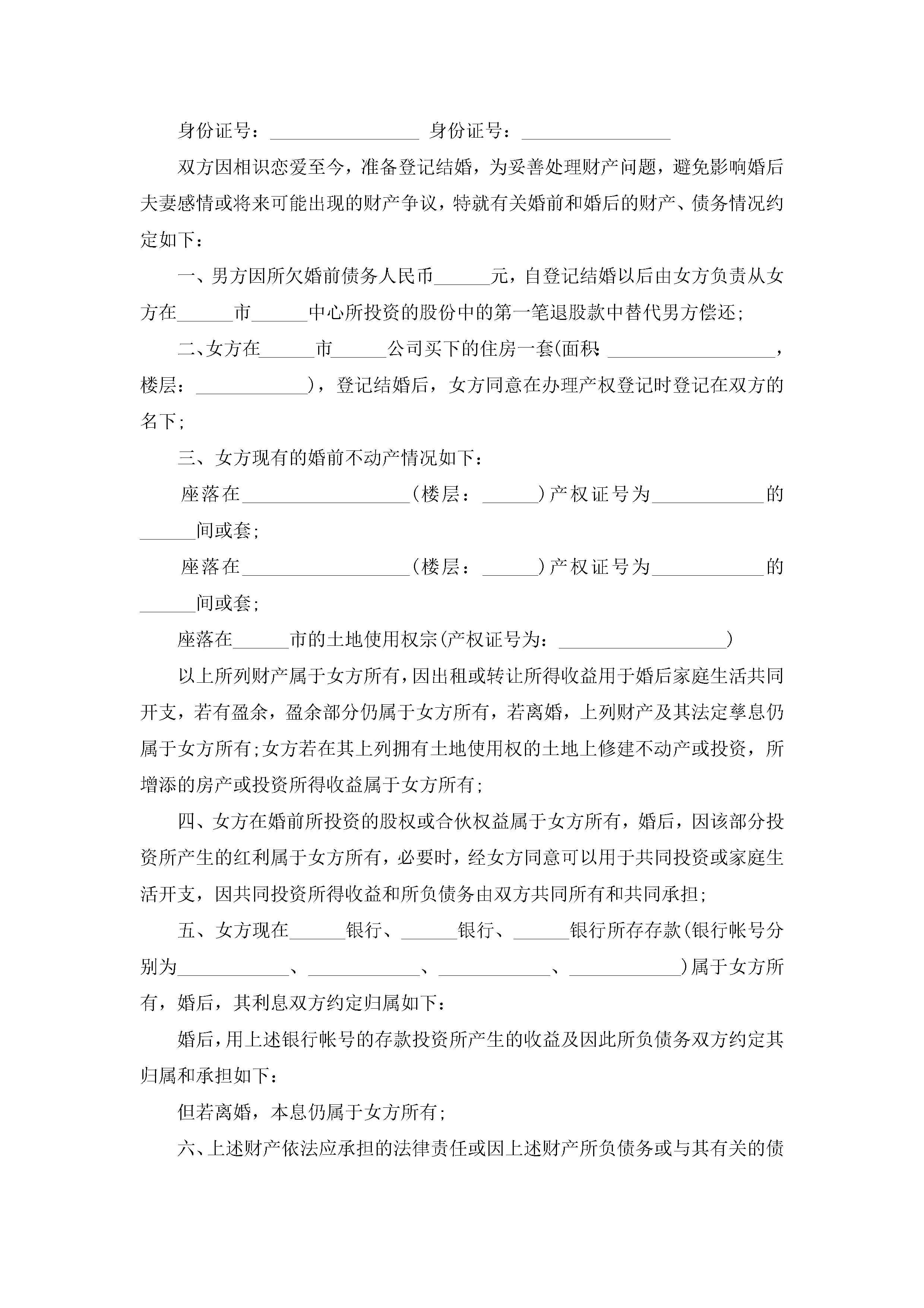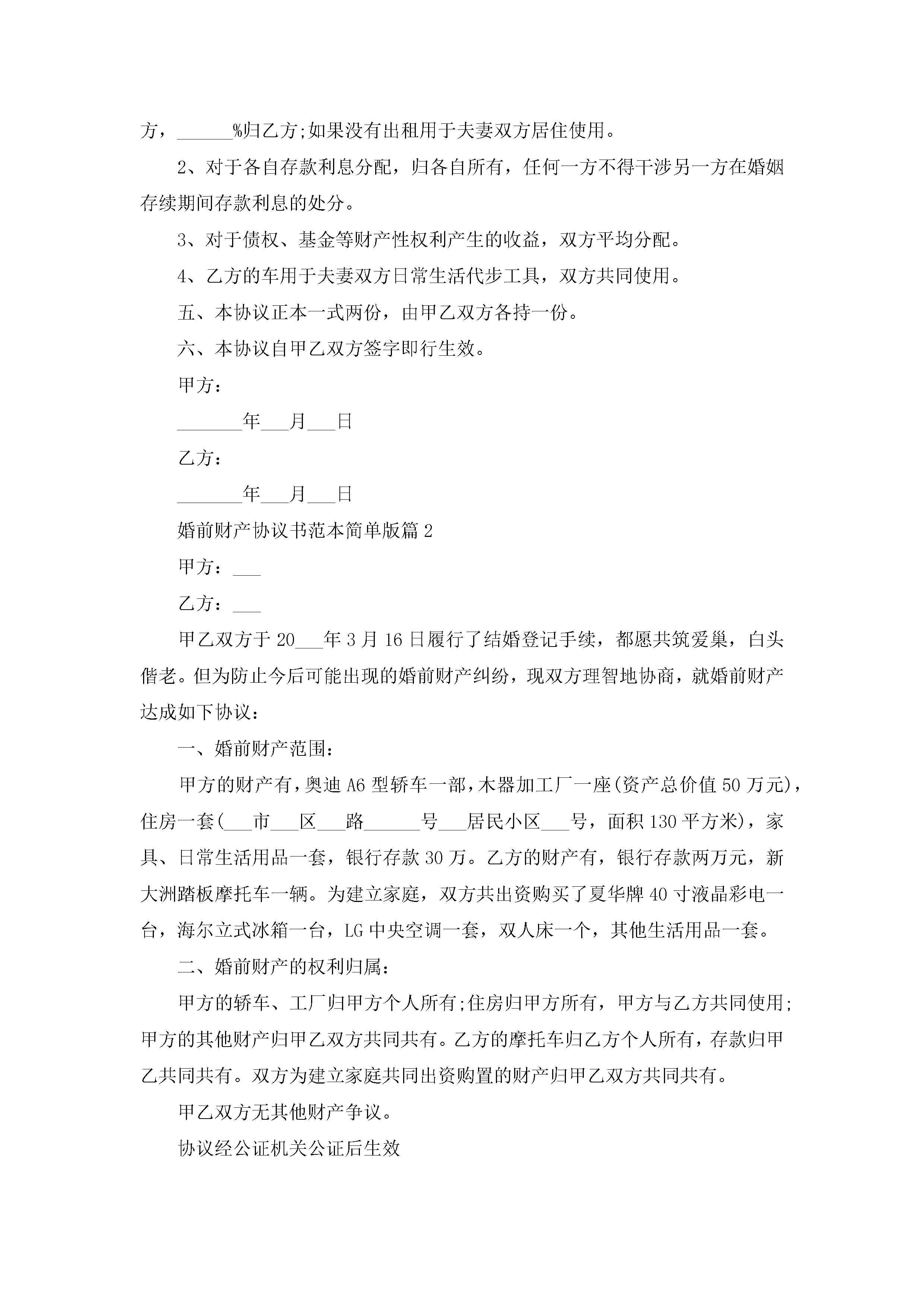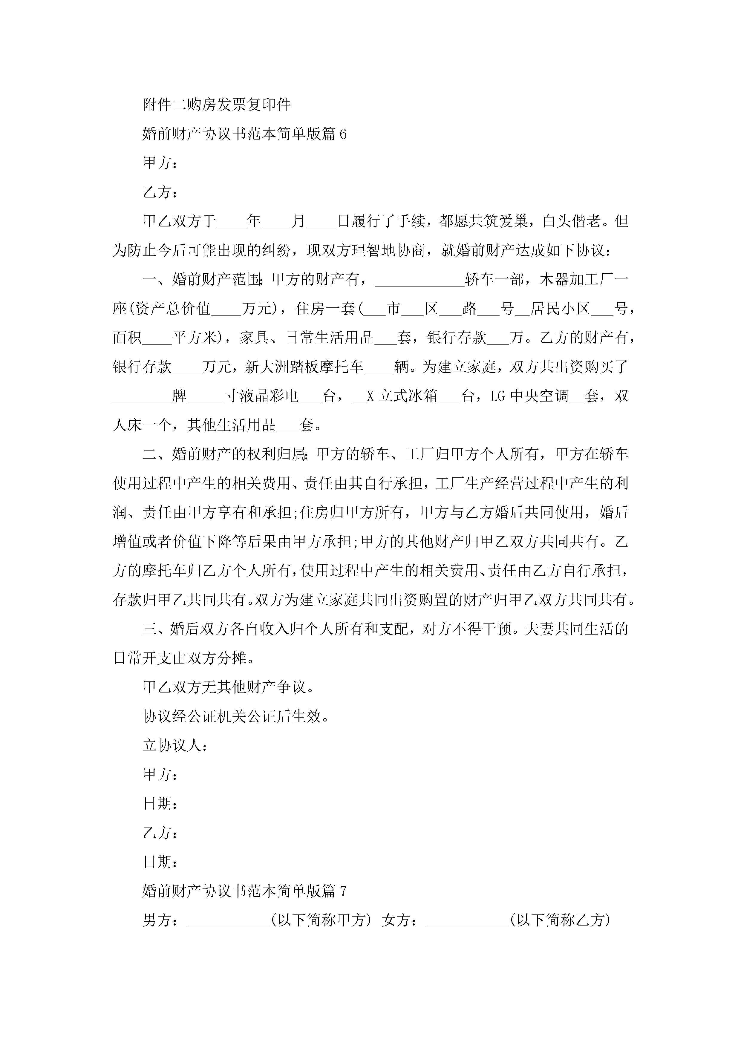 婚前财产协议书范本简单版10篇精选jugei3月22日 12:38更新关注245 婚前财产协议书范本简单版10篇精选此内容为付费资源,请付费后查看¥10.9 单篇文档限时特惠¥15个人会员开通企业会员开通立即下载无需登陆!可直接快捷下载单个模板付费资源© 版权声明THE ENDWord模板# 实用文档# 实用模板# 信函模板# 协议书 如有问题,可点击最底部“联系我们”联系客服 分享QQ空间微博QQ好友海报分享复制链接收藏