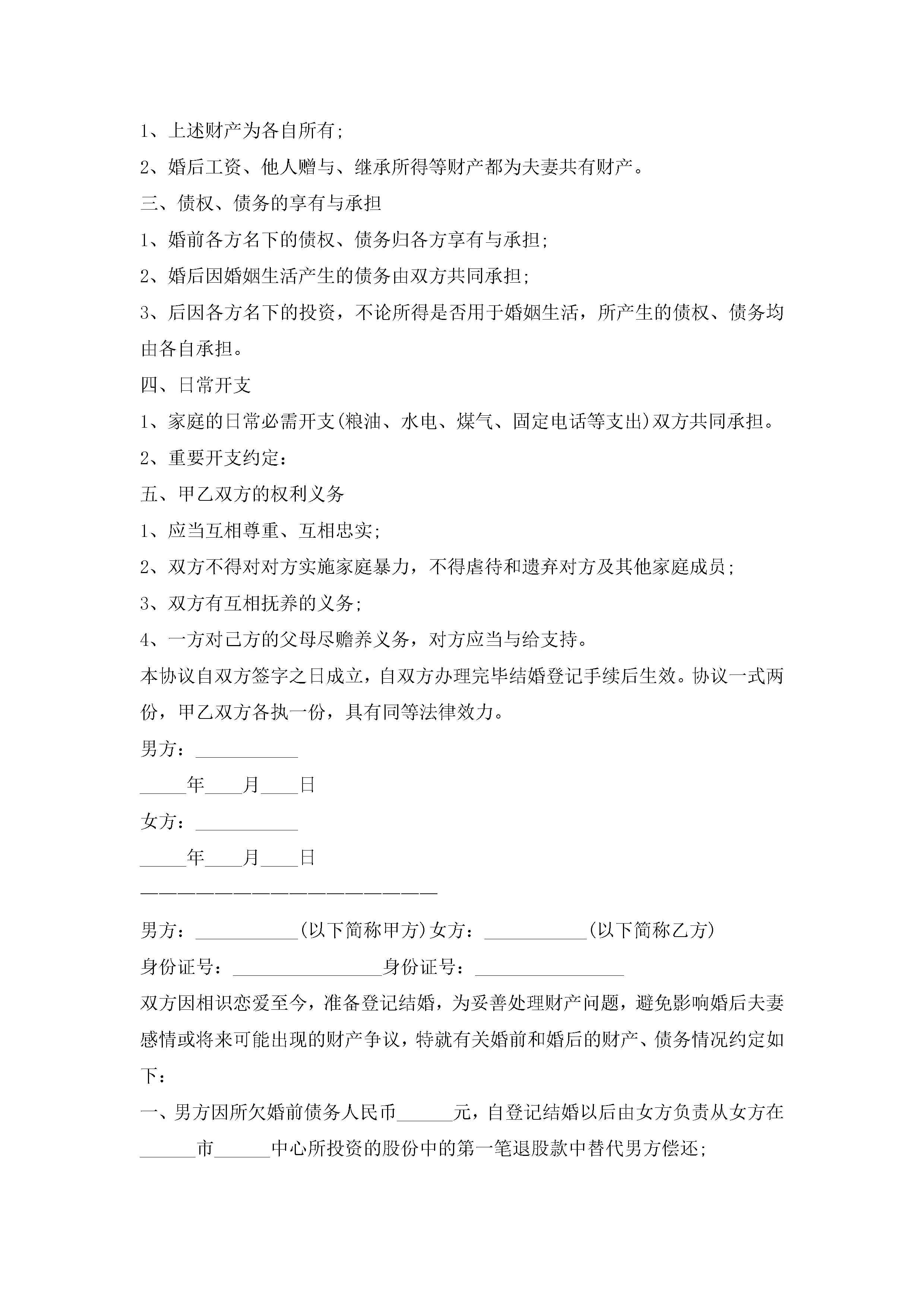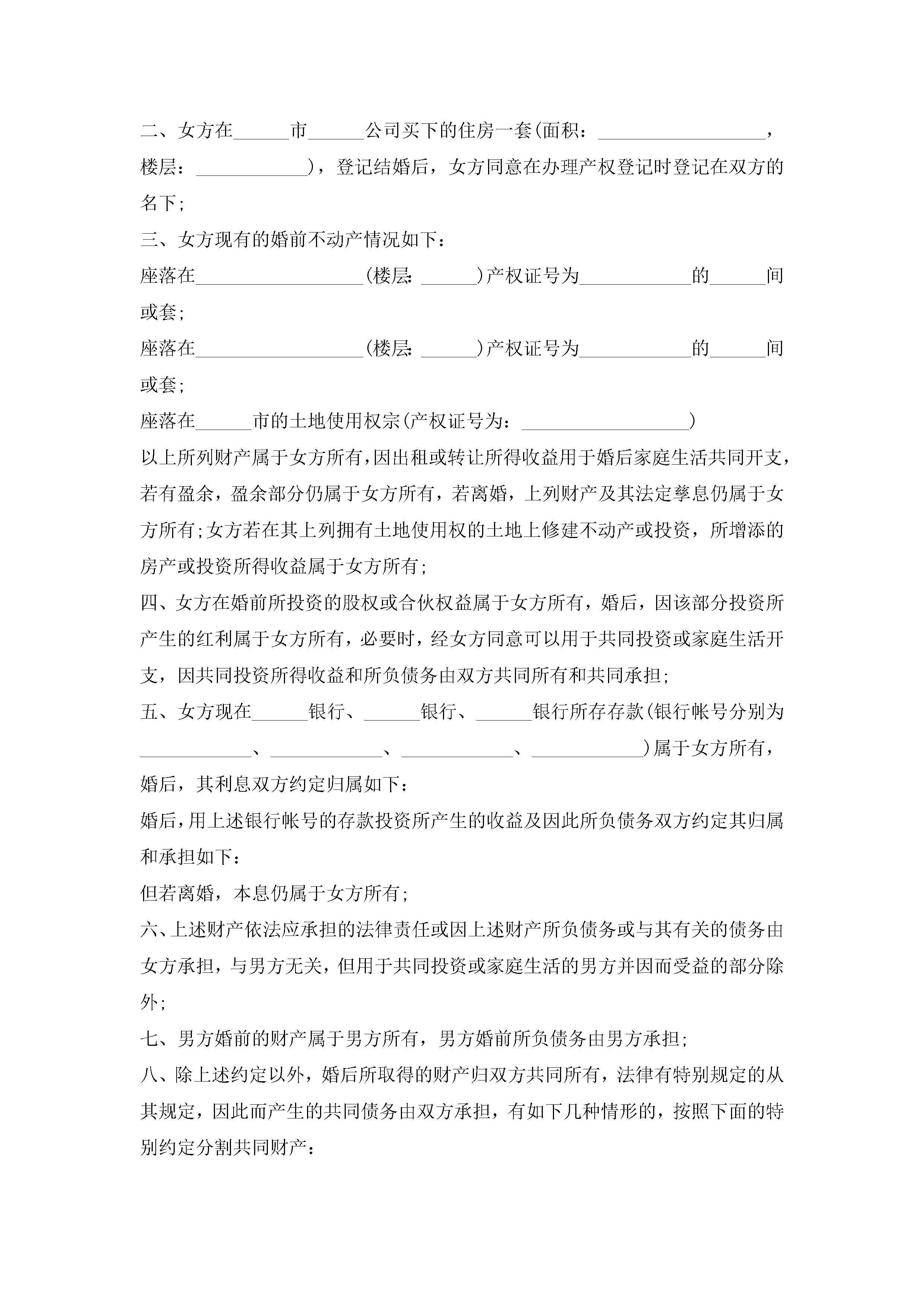 婚前财产协议书怎么写10篇精选jugei3月22日 12:38更新关注285 婚前财产协议书怎么写10篇精选此内容为付费资源,请付费后查看¥10.9 单篇文档限时特惠¥15个人会员开通企业会员开通立即下载无需登陆!可直接快捷下载单个模板付费资源© 版权声明THE ENDWord模板# 实用文档# 实用模板# 信函模板# 协议书 如有问题,可点击最底部“联系我们”联系客服 分享QQ空间微博QQ好友海报分享复制链接收藏