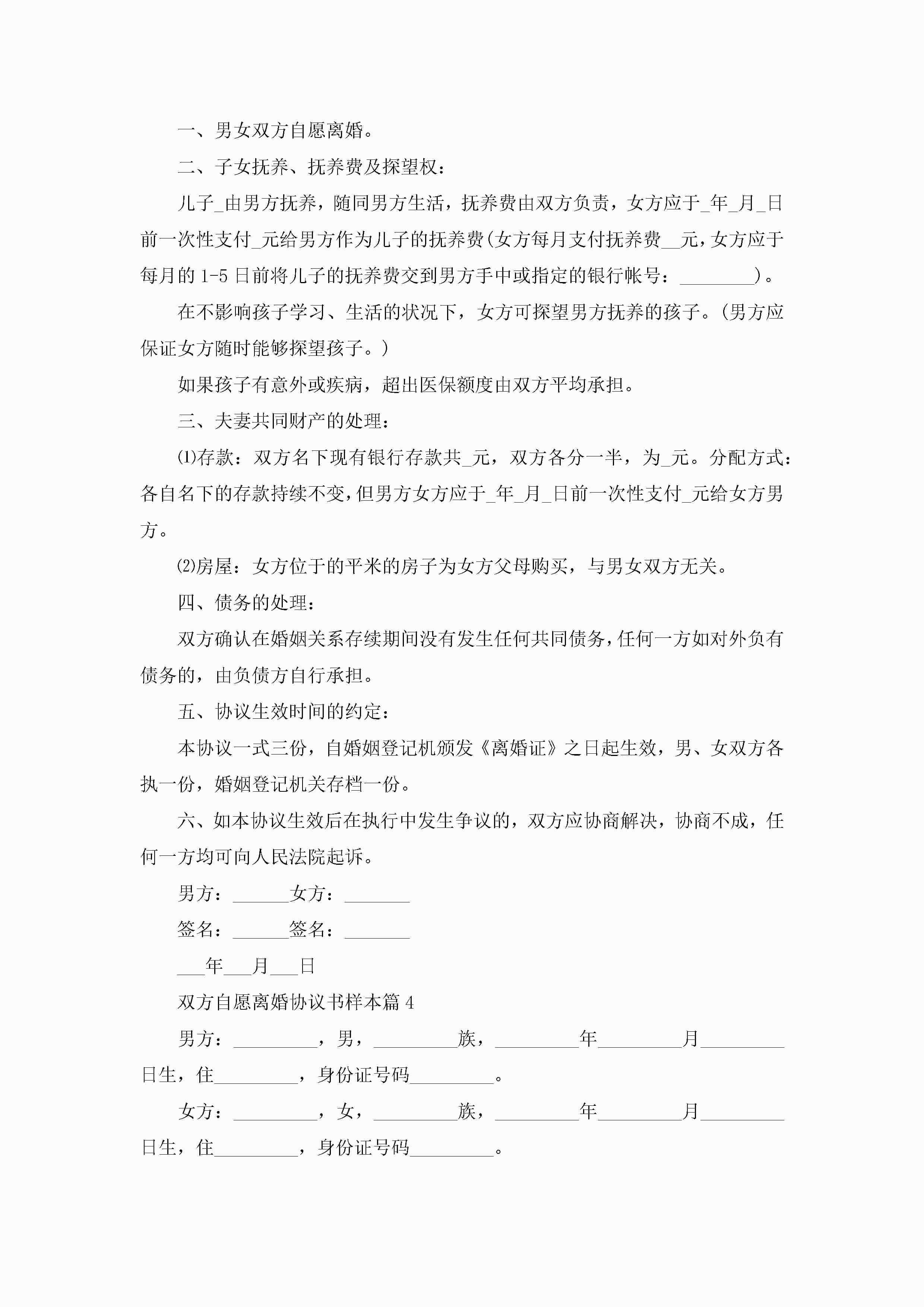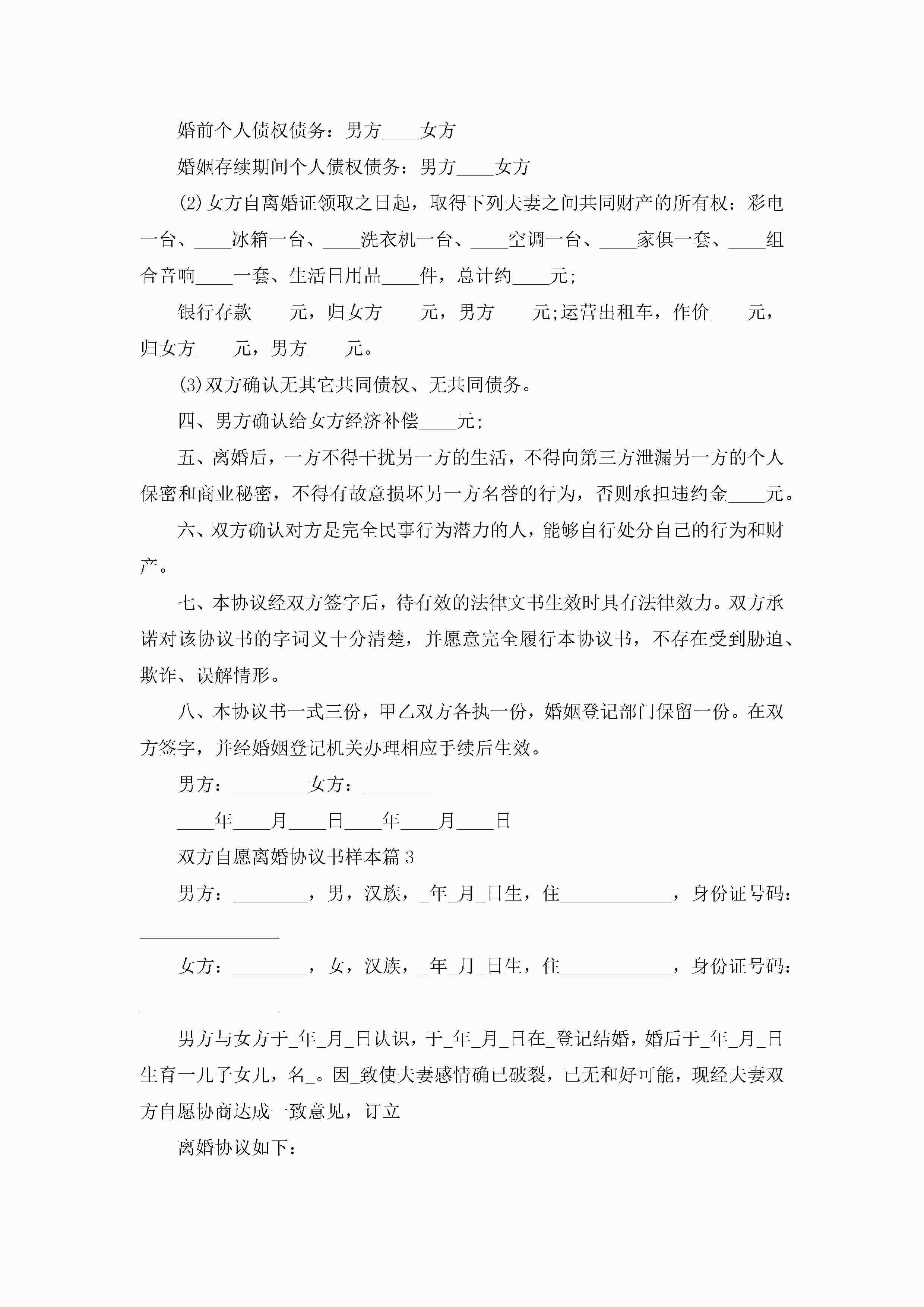 双方自愿离婚协议书样本10篇精选jugei3月22日 12:38更新关注189 双方自愿离婚协议书样本10篇精选此内容为付费资源,请付费后查看¥10.9 单篇文档限时特惠¥15个人会员开通企业会员开通立即下载无需登陆!可直接快捷下载单个模板付费资源© 版权声明THE ENDWord模板# 实用文档# 实用模板# 信函模板# 协议书 如有问题,可点击最底部“联系我们”联系客服 分享QQ空间微博QQ好友海报分享复制链接收藏
