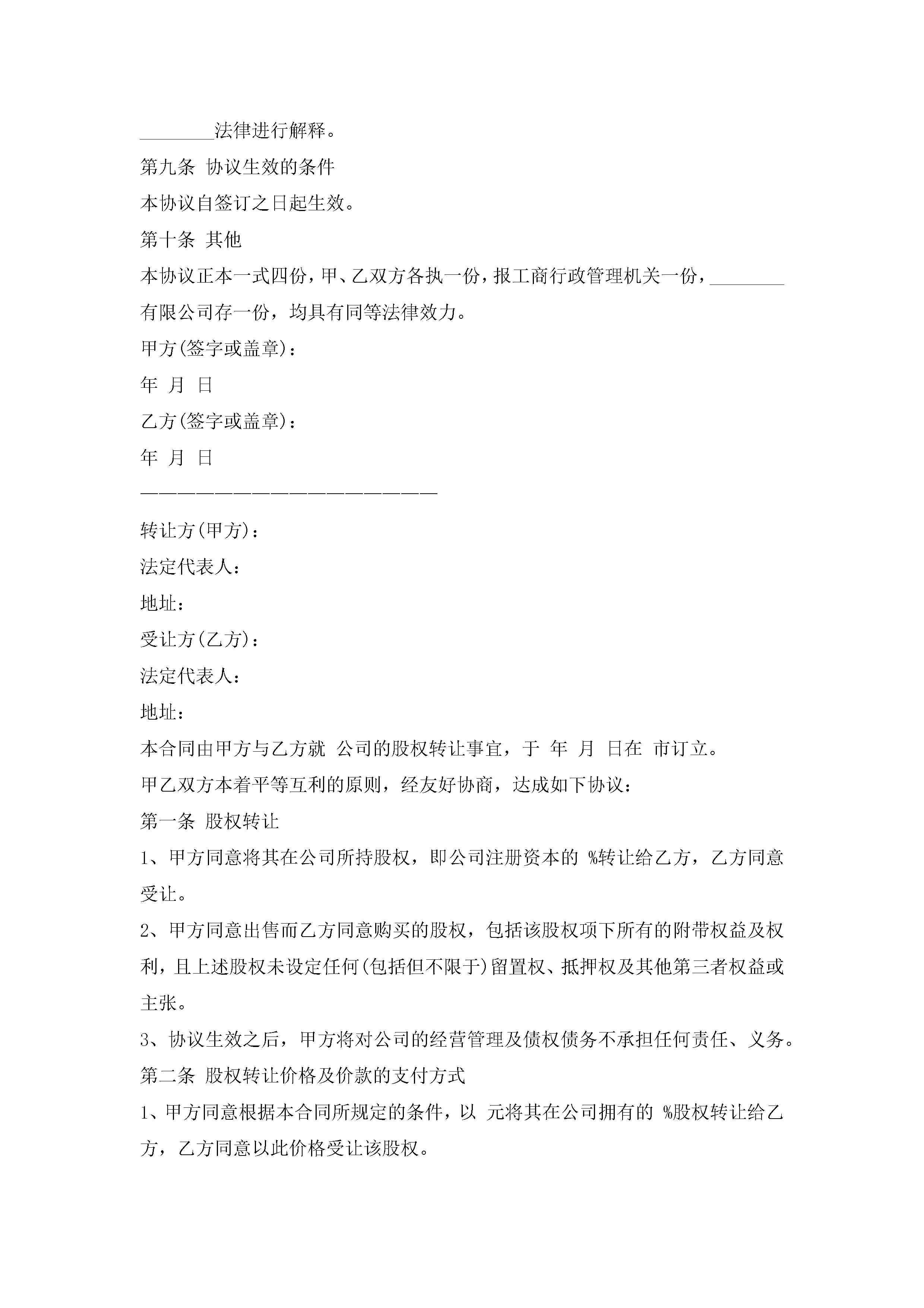 股份转让协议书范本格式10篇精选jugei3月22日 12:38更新关注210 股份转让协议书范本格式10篇精选此内容为付费资源,请付费后查看¥10.9 单篇文档限时特惠¥15个人会员开通企业会员开通立即下载无需登陆!可直接快捷下载单个模板付费资源© 版权声明THE ENDWord模板# 实用文档# 实用模板# 信函模板# 协议书 如有问题,可点击最底部“联系我们”联系客服 分享QQ空间微博QQ好友海报分享复制链接收藏