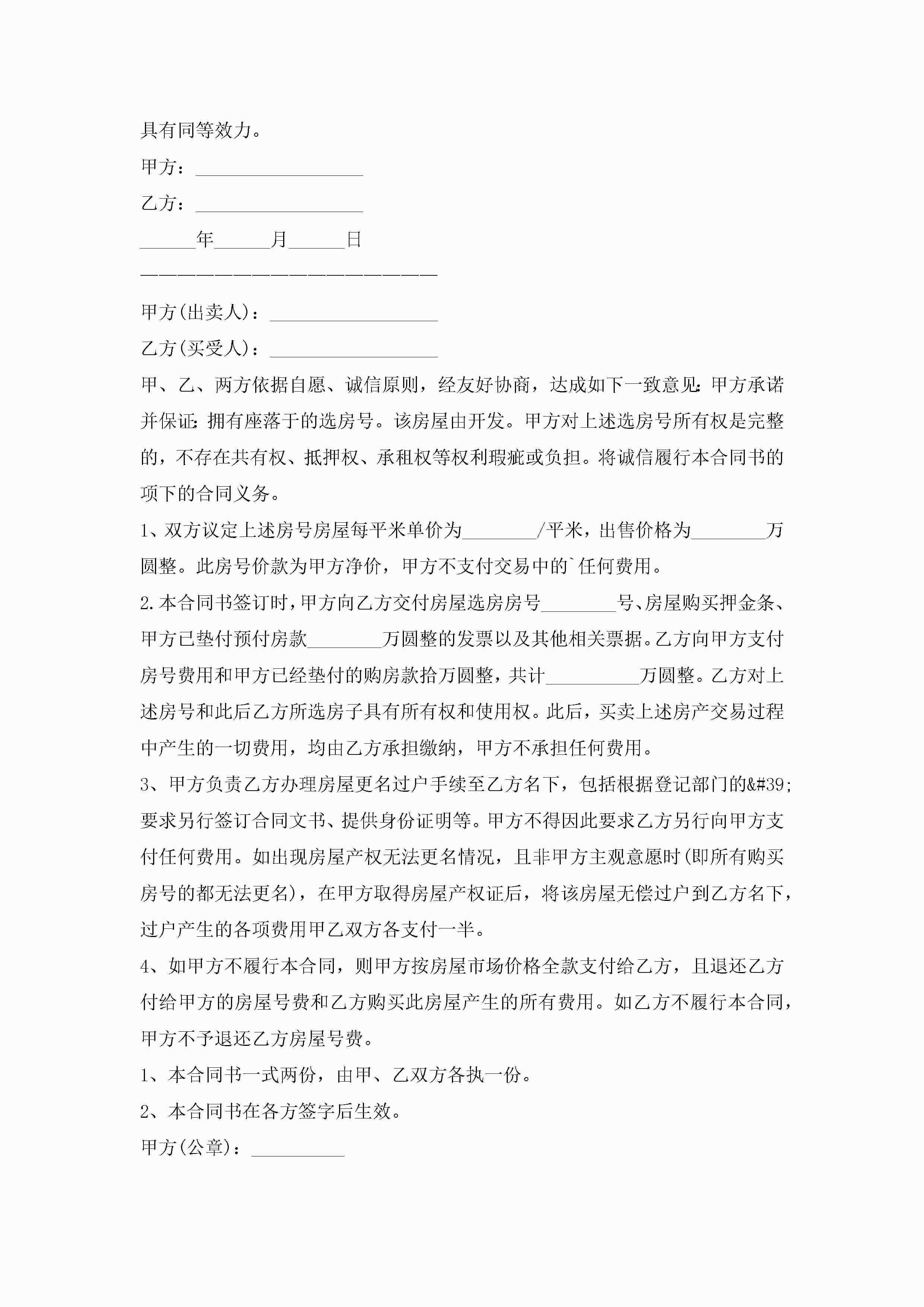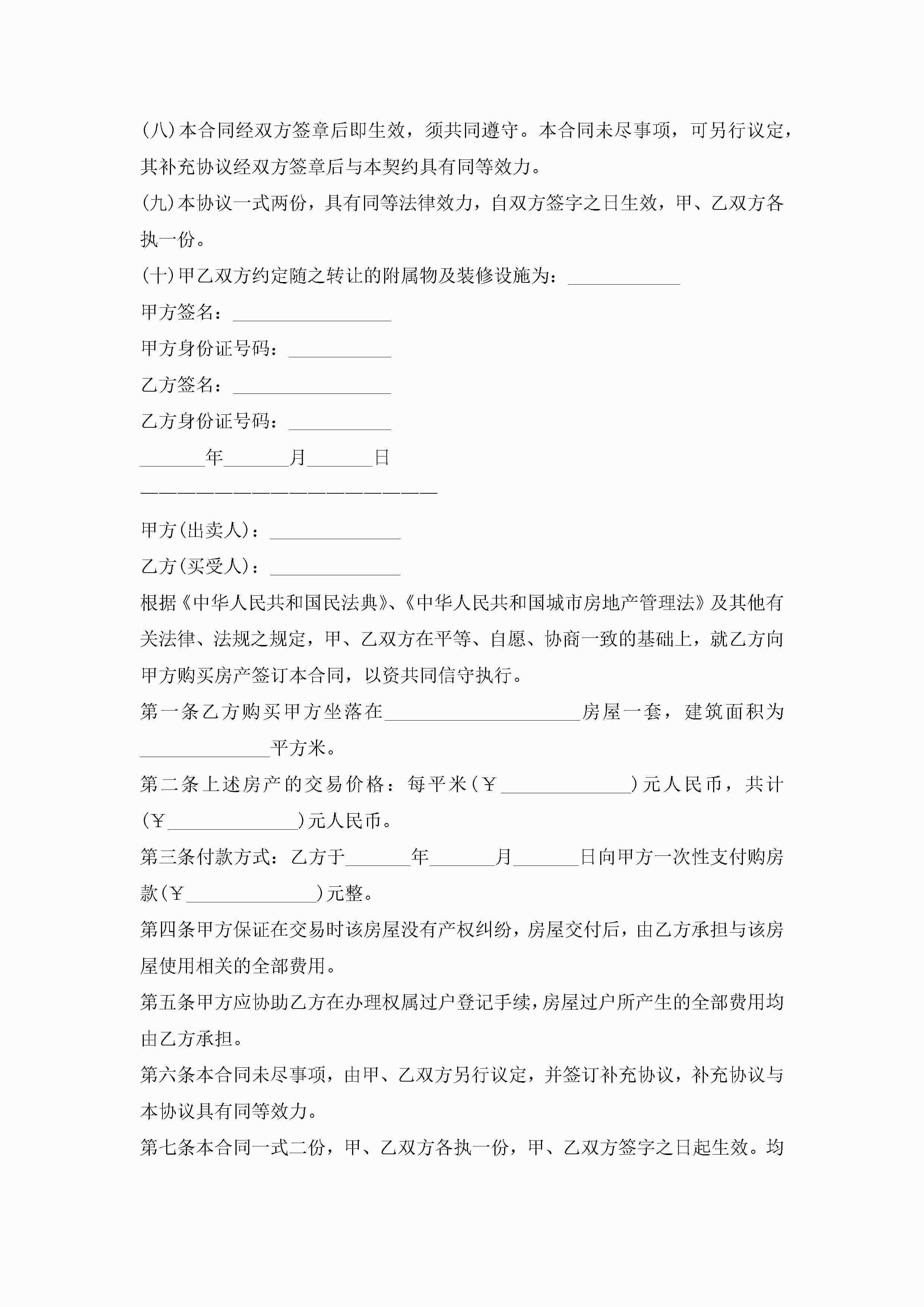 关于房屋买卖协议范本最新10篇精选jugei3月22日 12:38更新关注199 关于房屋买卖协议范本最新10篇精选此内容为付费资源,请付费后查看¥10.9 单篇文档限时特惠¥15个人会员开通企业会员开通立即下载无需登陆!可直接快捷下载单个模板付费资源© 版权声明THE ENDWord模板# 实用文档# 实用模板# 信函模板# 协议书 如有问题,可点击最底部“联系我们”联系客服 分享QQ空间微博QQ好友海报分享复制链接收藏