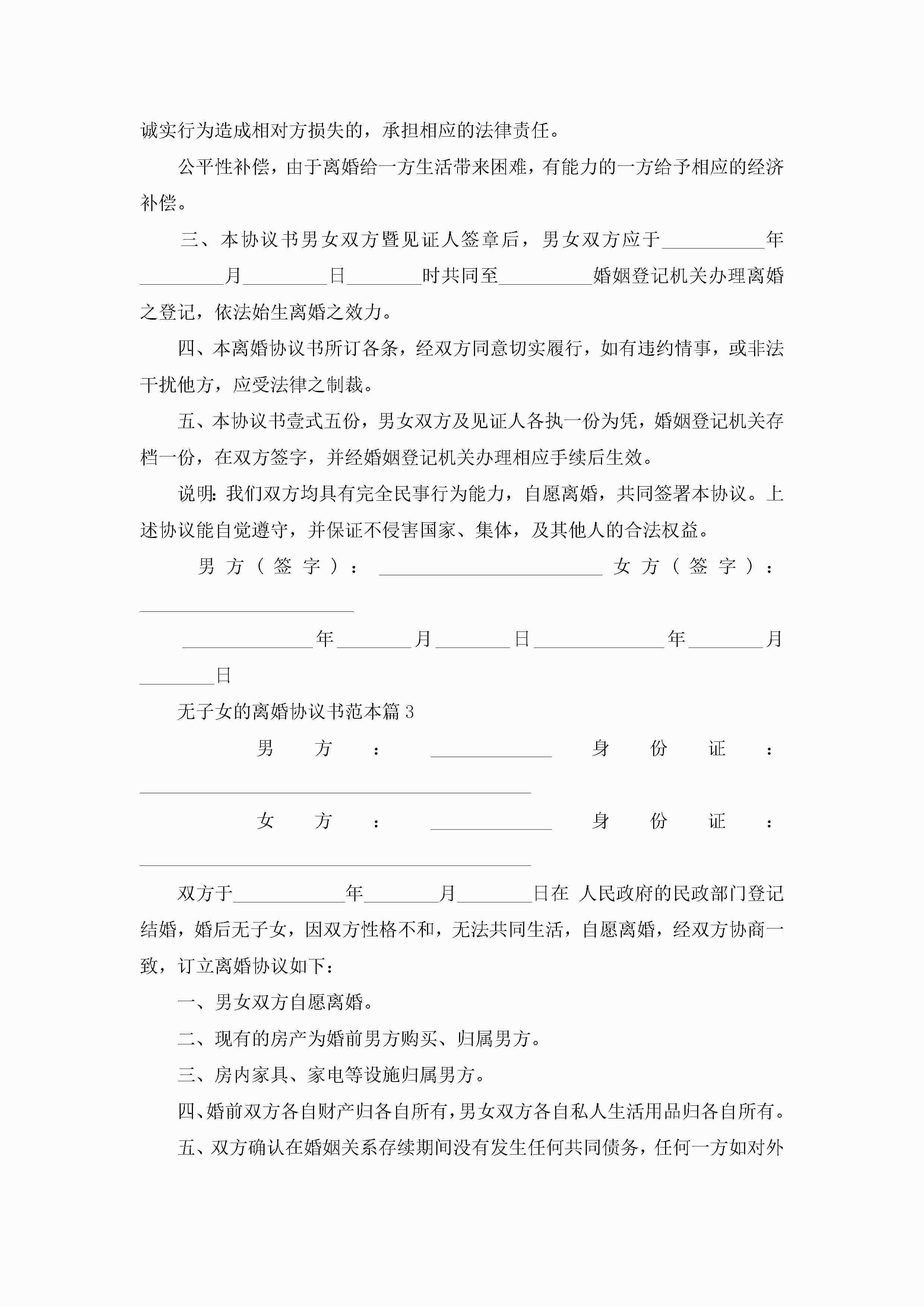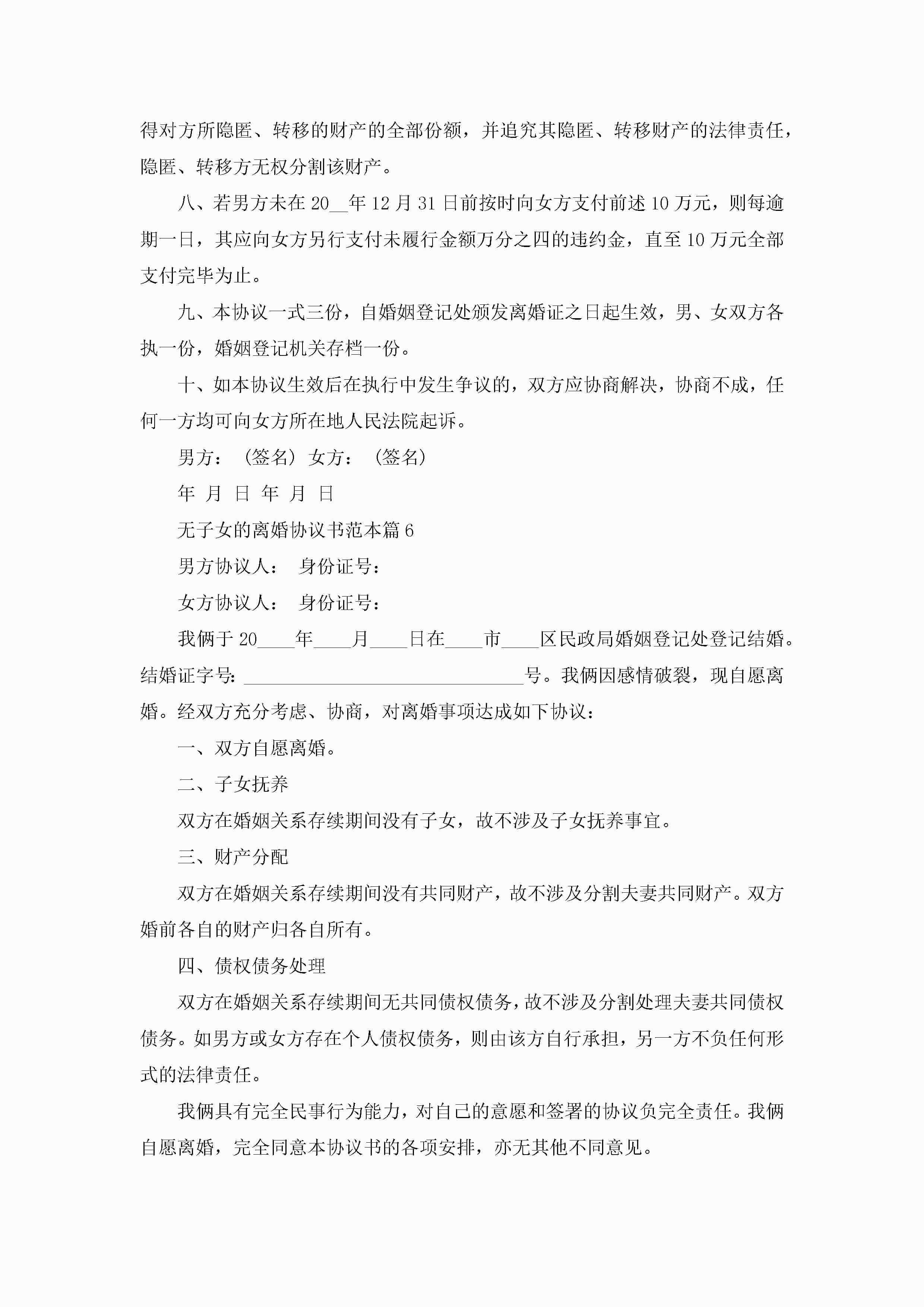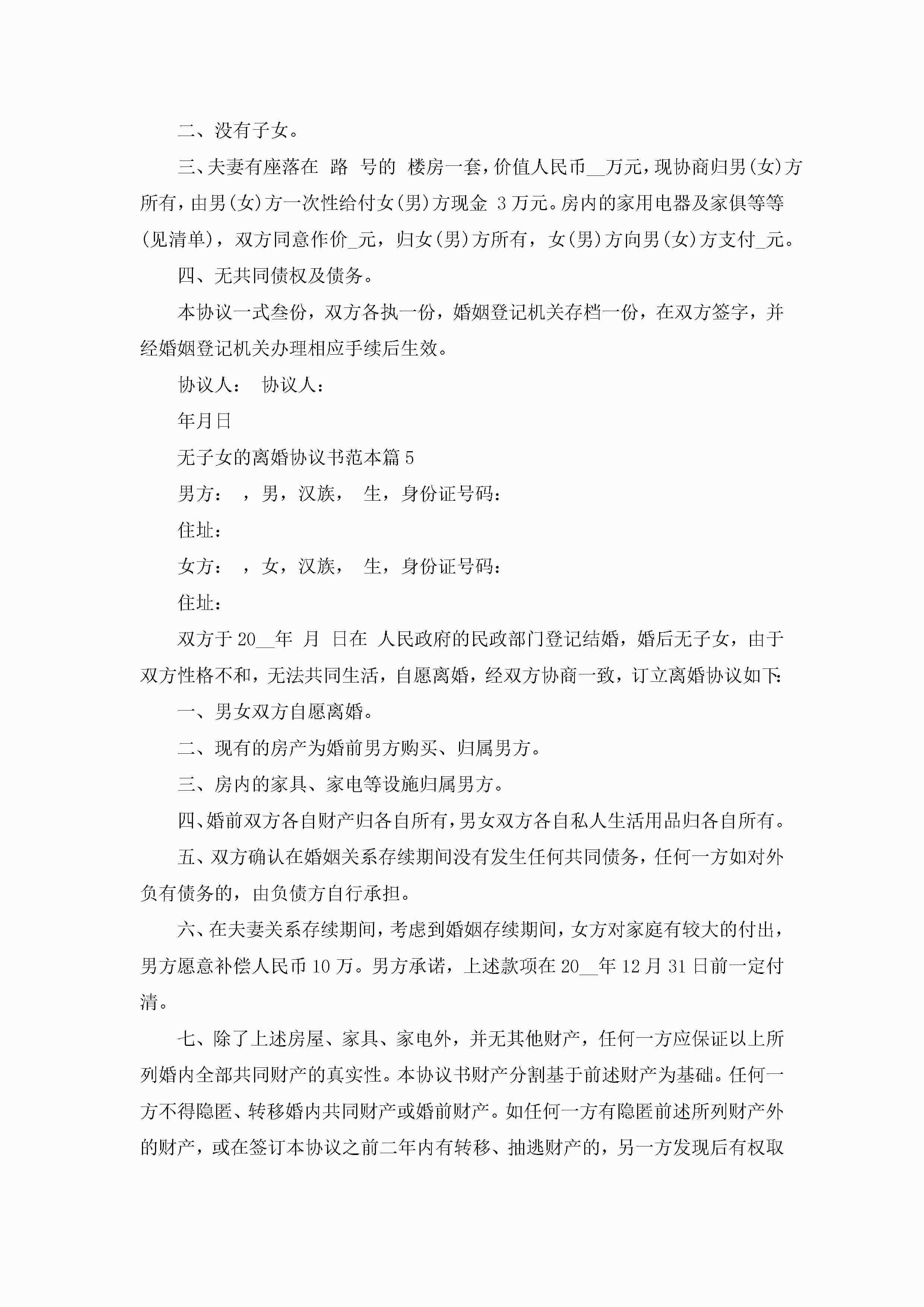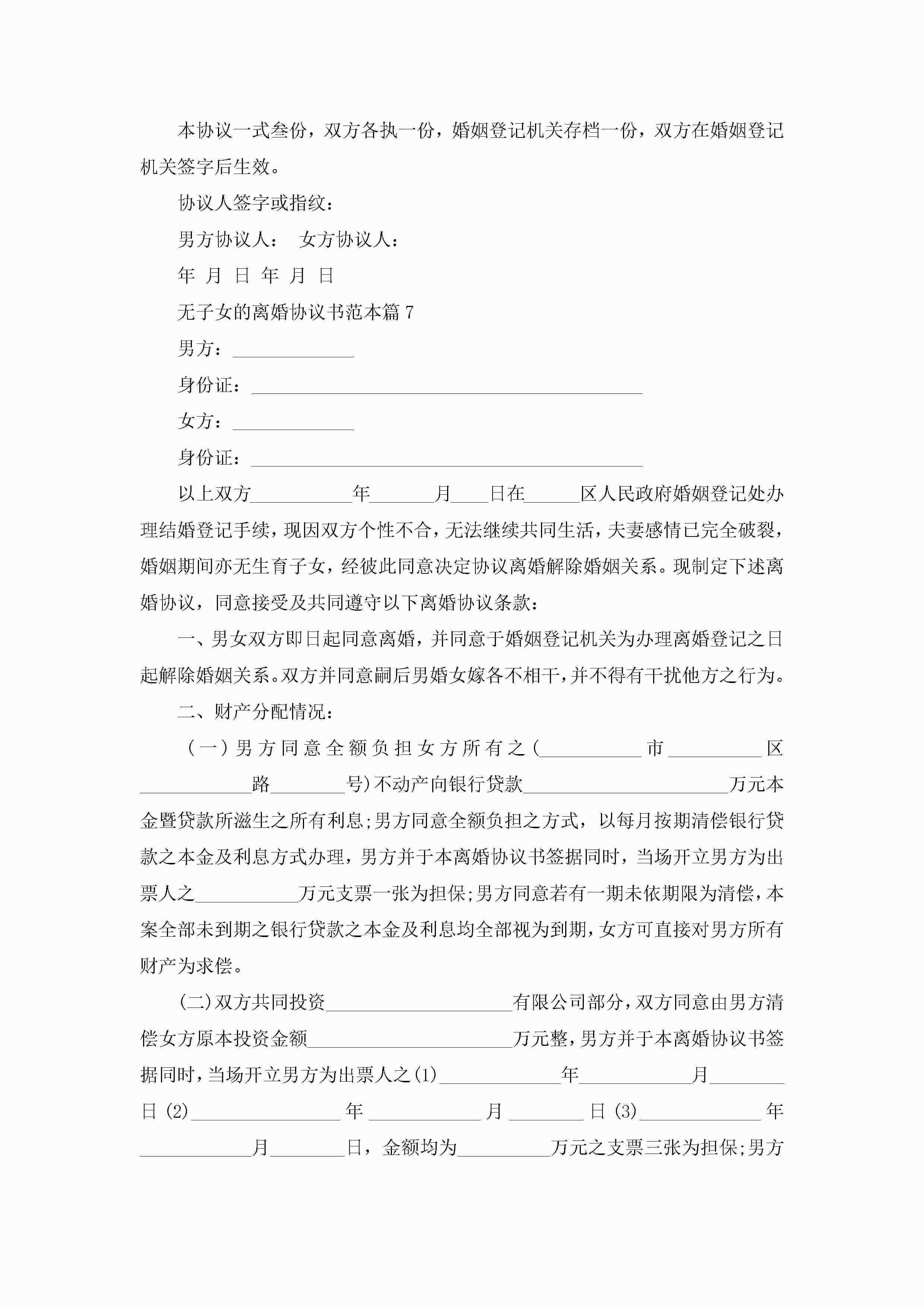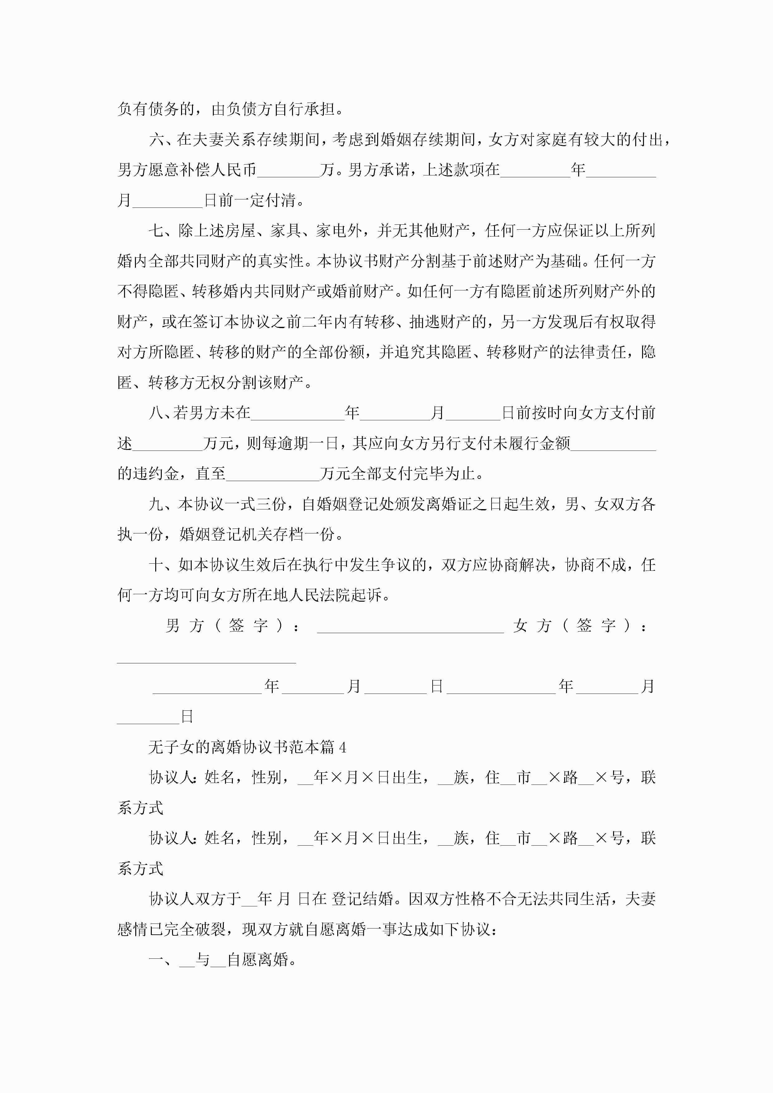 无子女的离婚协议书范本10篇精选jugei3月22日 12:38更新关注198 无子女的离婚协议书范本10篇精选此内容为付费资源,请付费后查看¥10.9 单篇文档限时特惠¥15个人会员开通企业会员开通立即下载无需登陆!可直接快捷下载单个模板付费资源© 版权声明THE ENDWord模板# 实用文档# 实用模板# 信函模板# 协议书 如有问题,可点击最底部“联系我们”联系客服 分享QQ空间微博QQ好友海报分享复制链接收藏