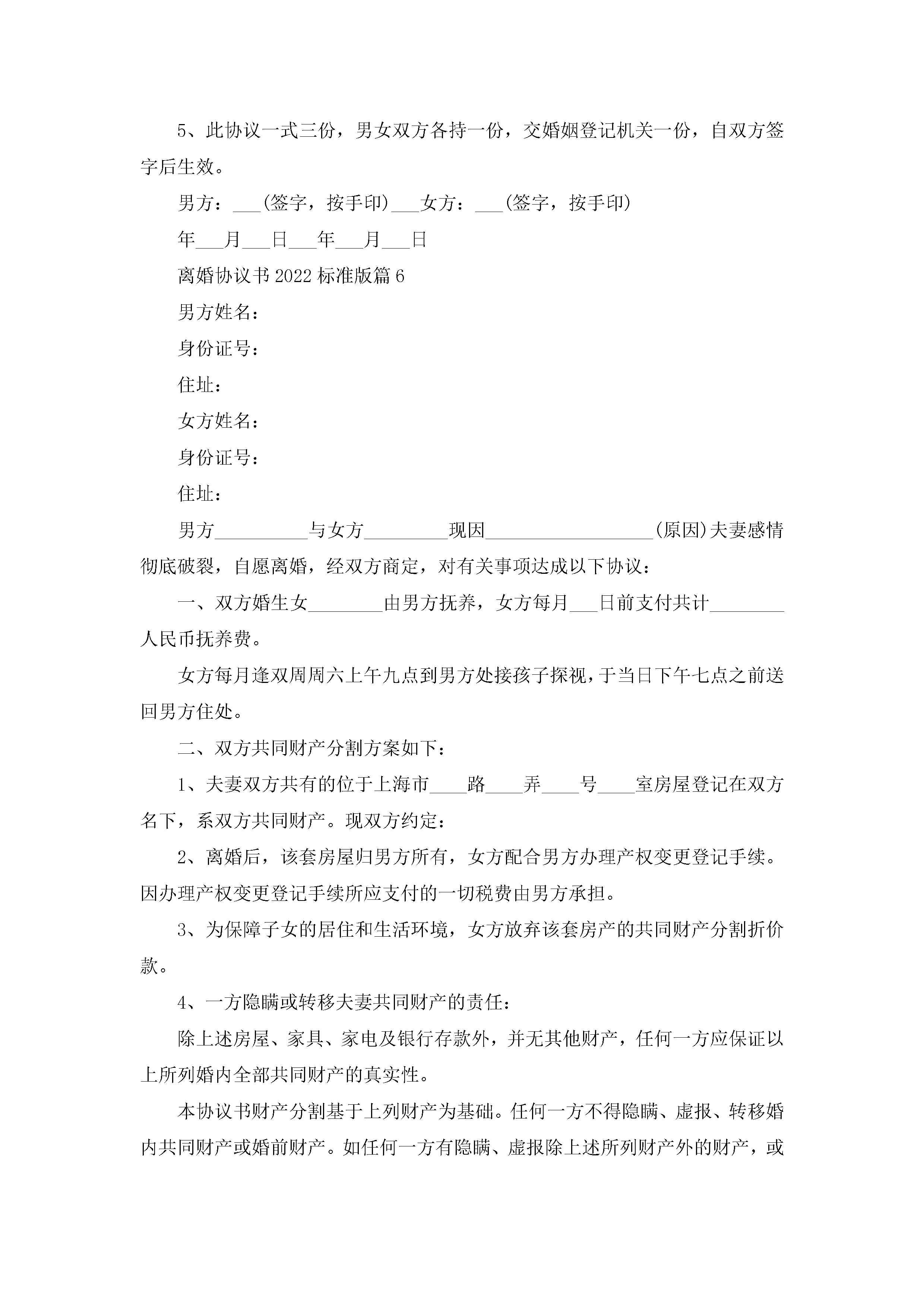 离婚协议书2022标准版10篇精选jugei3月22日 12:38更新关注243 离婚协议书2022标准版10篇精选此内容为付费资源,请付费后查看¥10.9 单篇文档限时特惠¥15个人会员开通企业会员开通立即下载无需登陆!可直接快捷下载单个模板付费资源© 版权声明THE ENDWord模板# 实用文档# 实用模板# 信函模板# 协议书 如有问题,可点击最底部“联系我们”联系客服 分享QQ空间微博QQ好友海报分享复制链接收藏