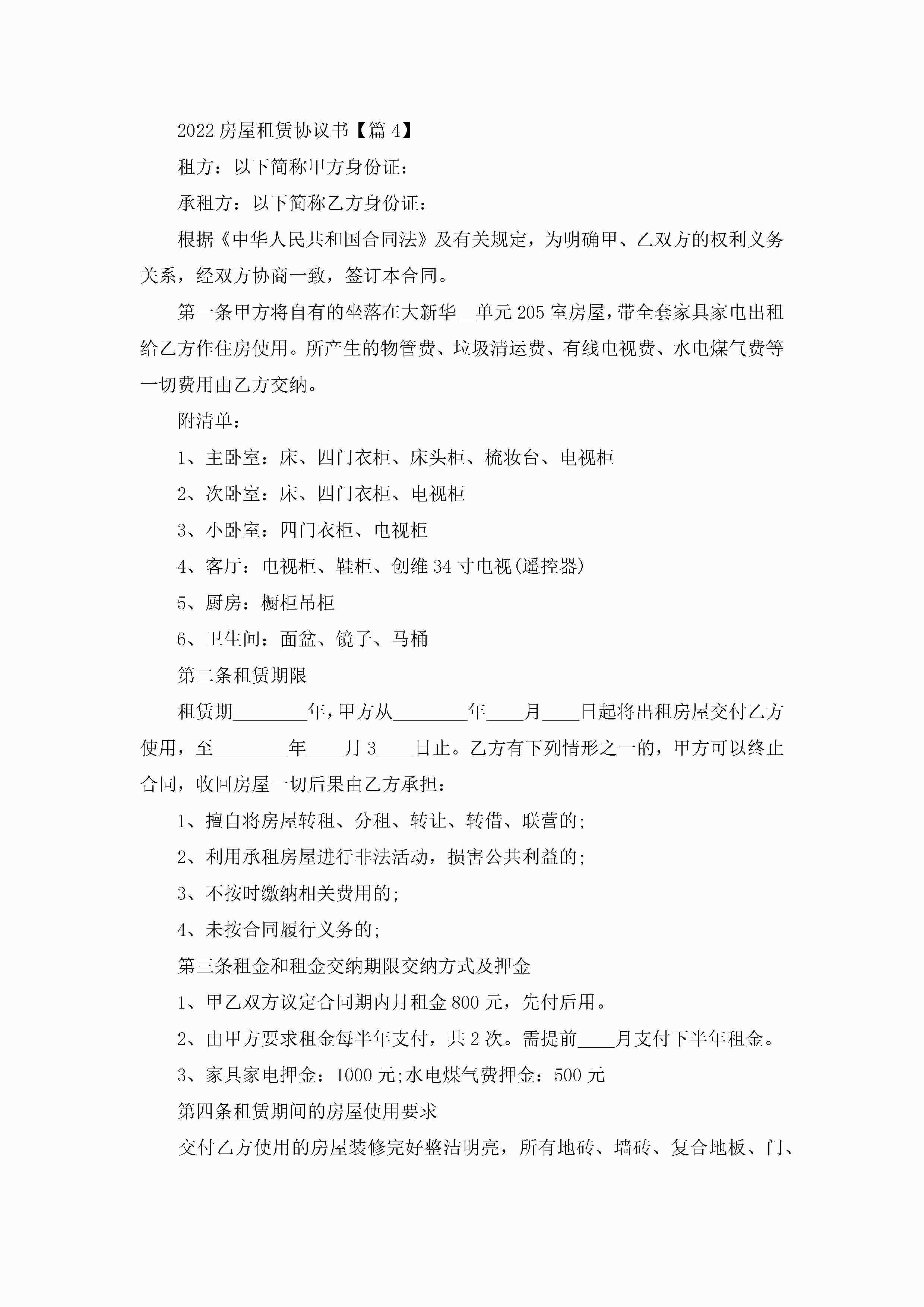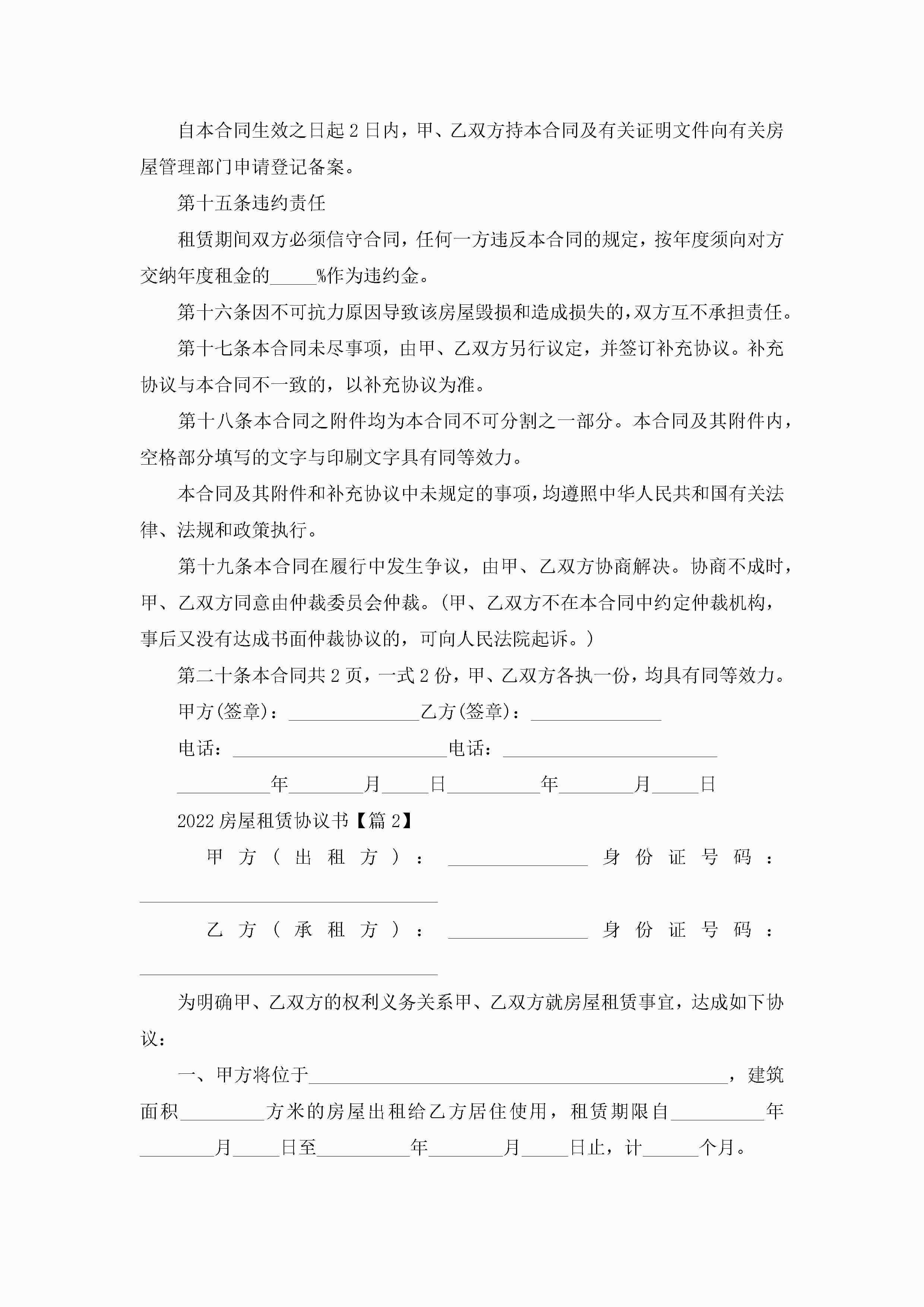 2022房屋租赁协议书精选5篇jugei3月22日 12:38更新关注282 2022房屋租赁协议书精选5篇此内容为付费资源,请付费后查看¥10.9 单篇文档限时特惠¥15个人会员开通企业会员开通立即下载无需登陆!可直接快捷下载单个模板付费资源© 版权声明THE ENDWord模板# 实用文档# 实用模板# 信函模板# 协议书 如有问题,可点击最底部“联系我们”联系客服 分享QQ空间微博QQ好友海报分享复制链接收藏