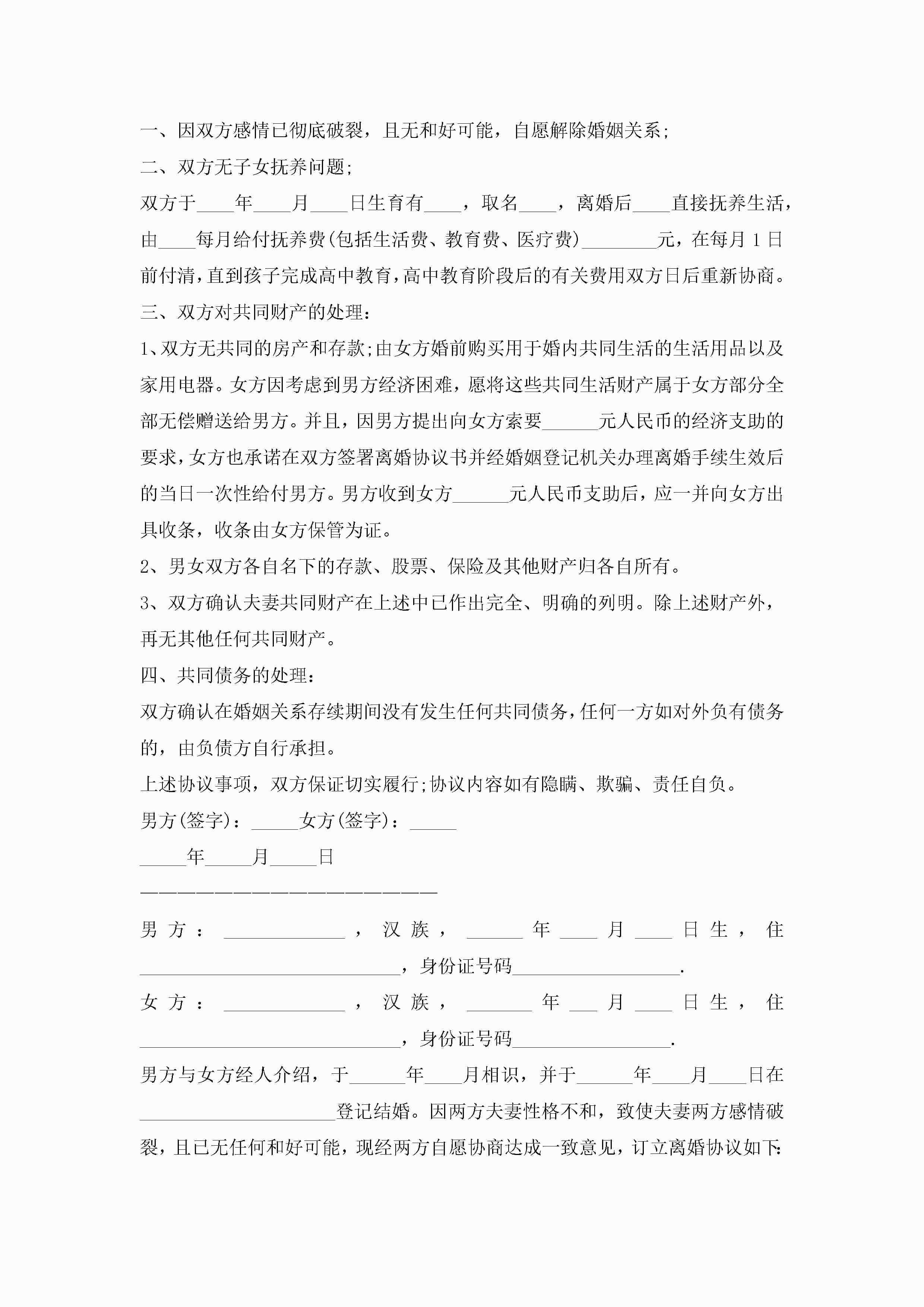 标准版离婚协议书10篇精选jugei3月22日 12:38更新关注191 标准版离婚协议书10篇精选此内容为付费资源,请付费后查看¥10.9 单篇文档限时特惠¥15个人会员开通企业会员开通立即下载无需登陆!可直接快捷下载单个模板付费资源© 版权声明THE ENDWord模板# 实用文档# 实用模板# 信函模板# 协议书 如有问题,可点击最底部“联系我们”联系客服 分享QQ空间微博QQ好友海报分享复制链接收藏