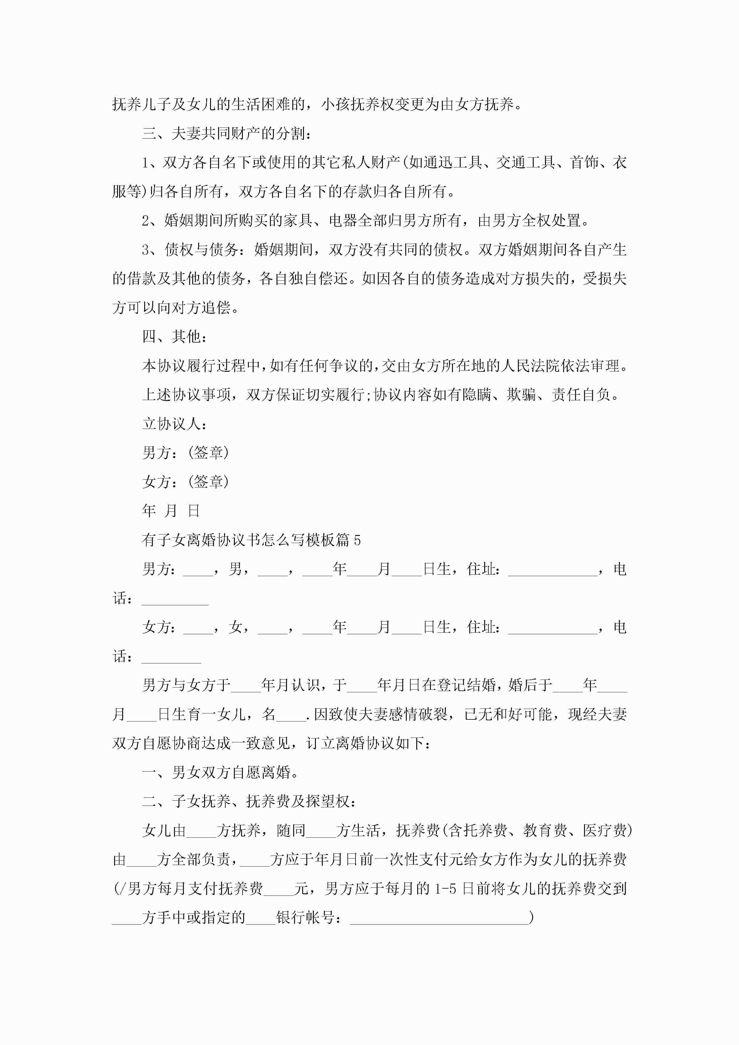 有子女离婚协议书怎么写模板10篇精选jugei3月22日 12:38更新关注200 有子女离婚协议书怎么写模板10篇精选此内容为付费资源,请付费后查看¥10.9 单篇文档限时特惠¥15个人会员开通企业会员开通立即下载无需登陆!可直接快捷下载单个模板付费资源© 版权声明THE ENDWord模板# 实用文档# 实用模板# 信函模板# 协议书 如有问题,可点击最底部“联系我们”联系客服 分享QQ空间微博QQ好友海报分享复制链接收藏
