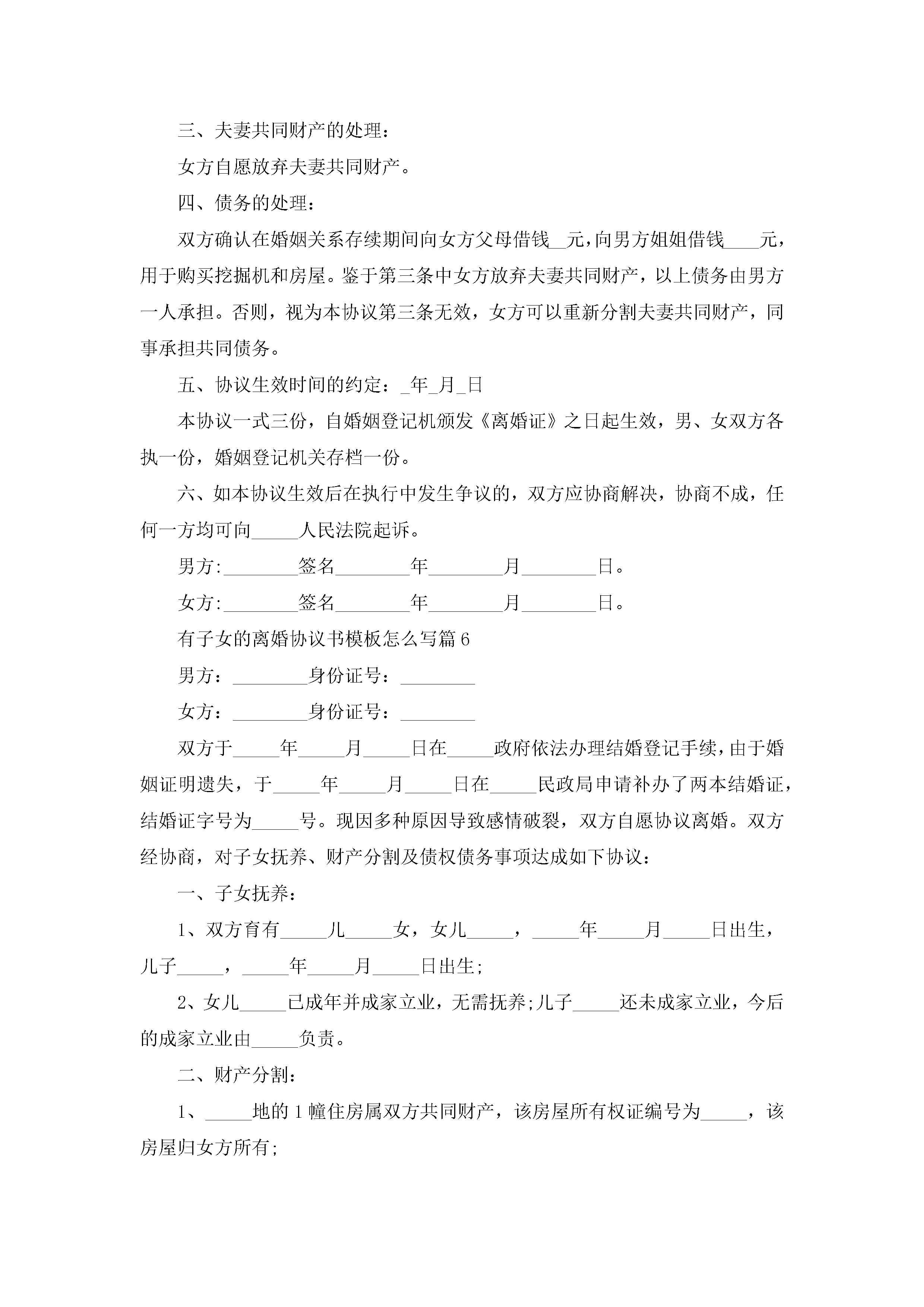 有子女的离婚协议书模板怎么写10篇精选jugei3月22日 12:38更新关注308 有子女的离婚协议书模板怎么写10篇精选此内容为付费资源,请付费后查看¥10.9 单篇文档限时特惠¥15个人会员开通企业会员开通立即下载无需登陆!可直接快捷下载单个模板付费资源© 版权声明THE ENDWord模板# 实用文档# 实用模板# 信函模板# 协议书 如有问题,可点击最底部“联系我们”联系客服 分享QQ空间微博QQ好友海报分享复制链接收藏