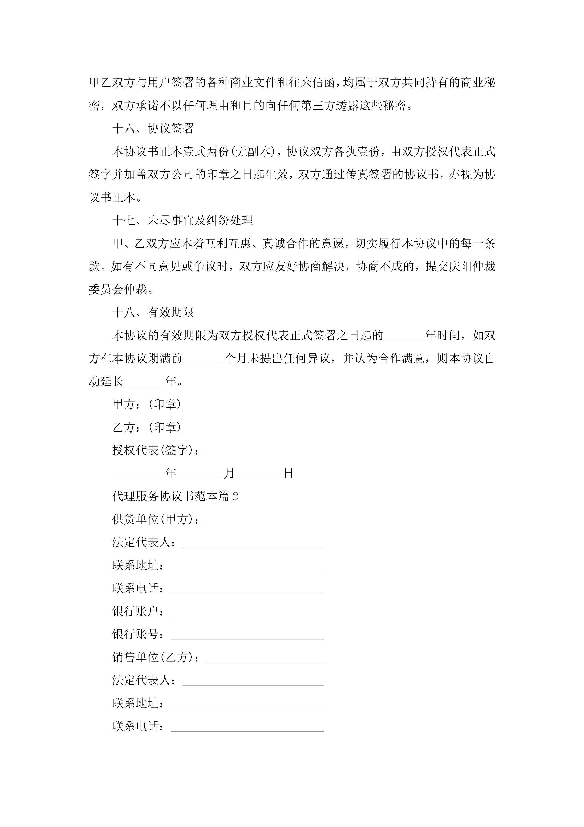 代理服务协议书范本10篇精选jugei3月22日 12:38更新关注258 代理服务协议书范本10篇精选此内容为付费资源,请付费后查看¥10.9 单篇文档限时特惠¥15个人会员开通企业会员开通立即下载无需登陆!可直接快捷下载单个模板付费资源© 版权声明THE ENDWord模板# 实用文档# 实用模板# 信函模板# 协议书 如有问题,可点击最底部“联系我们”联系客服 分享QQ空间微博QQ好友海报分享复制链接收藏