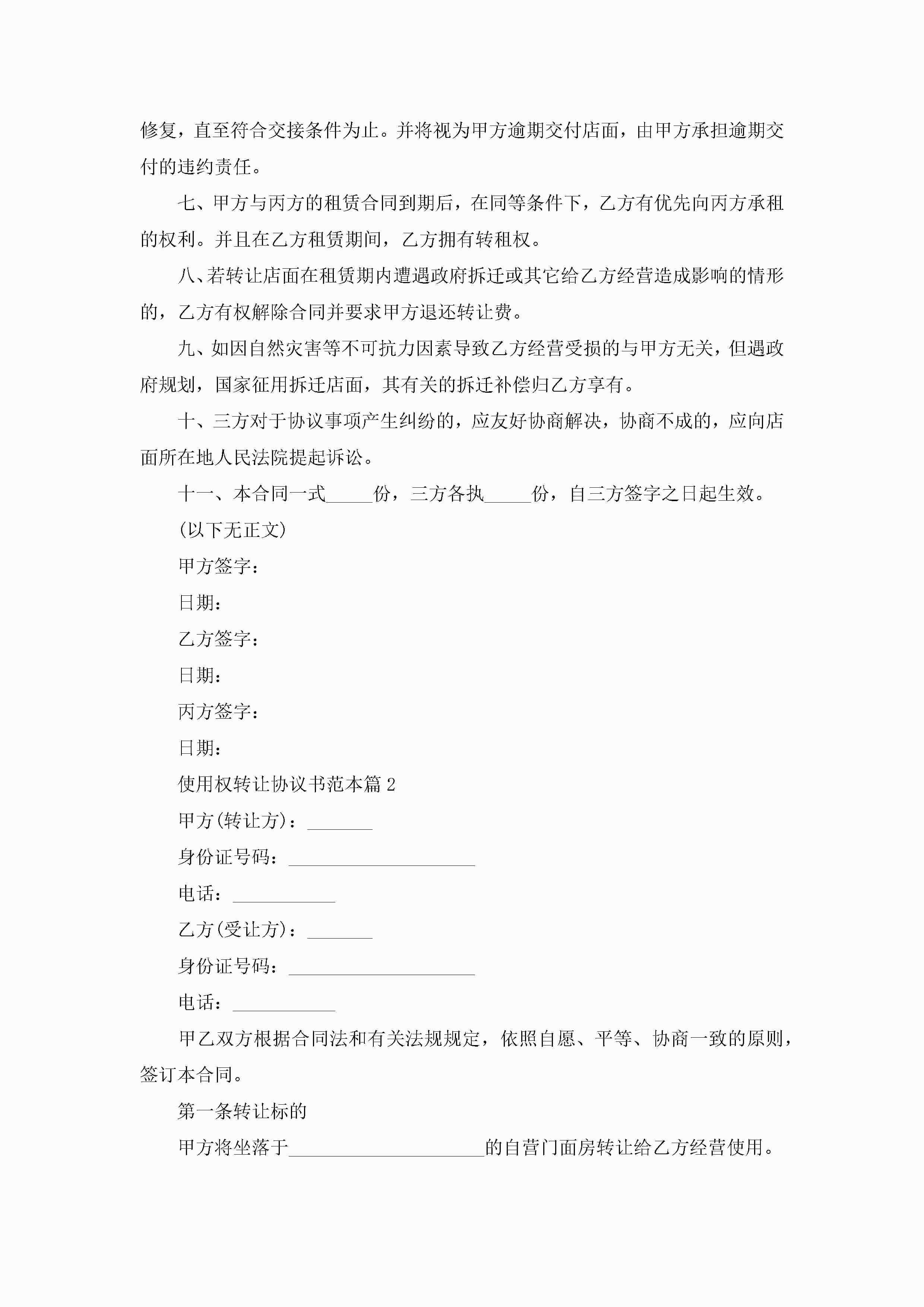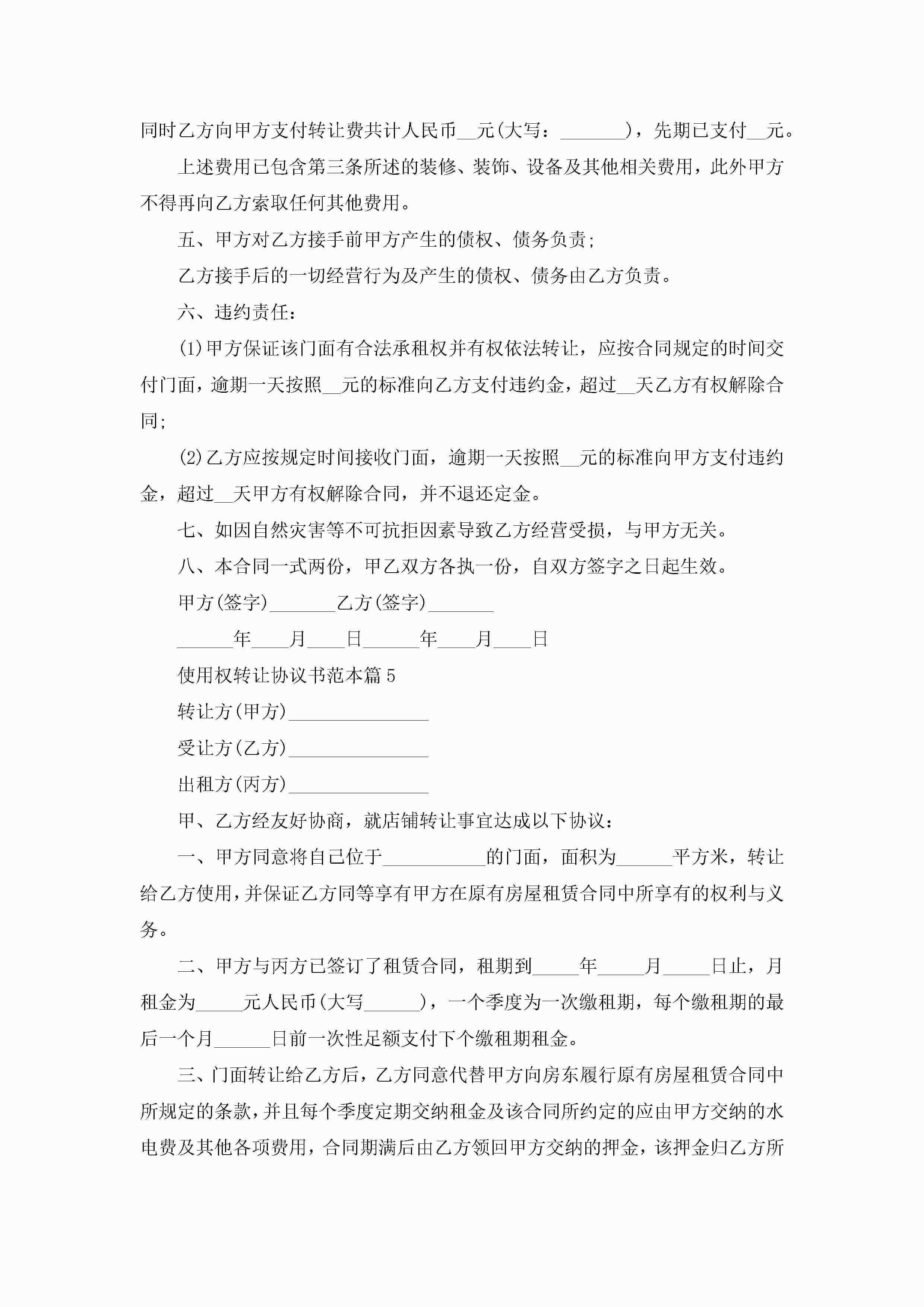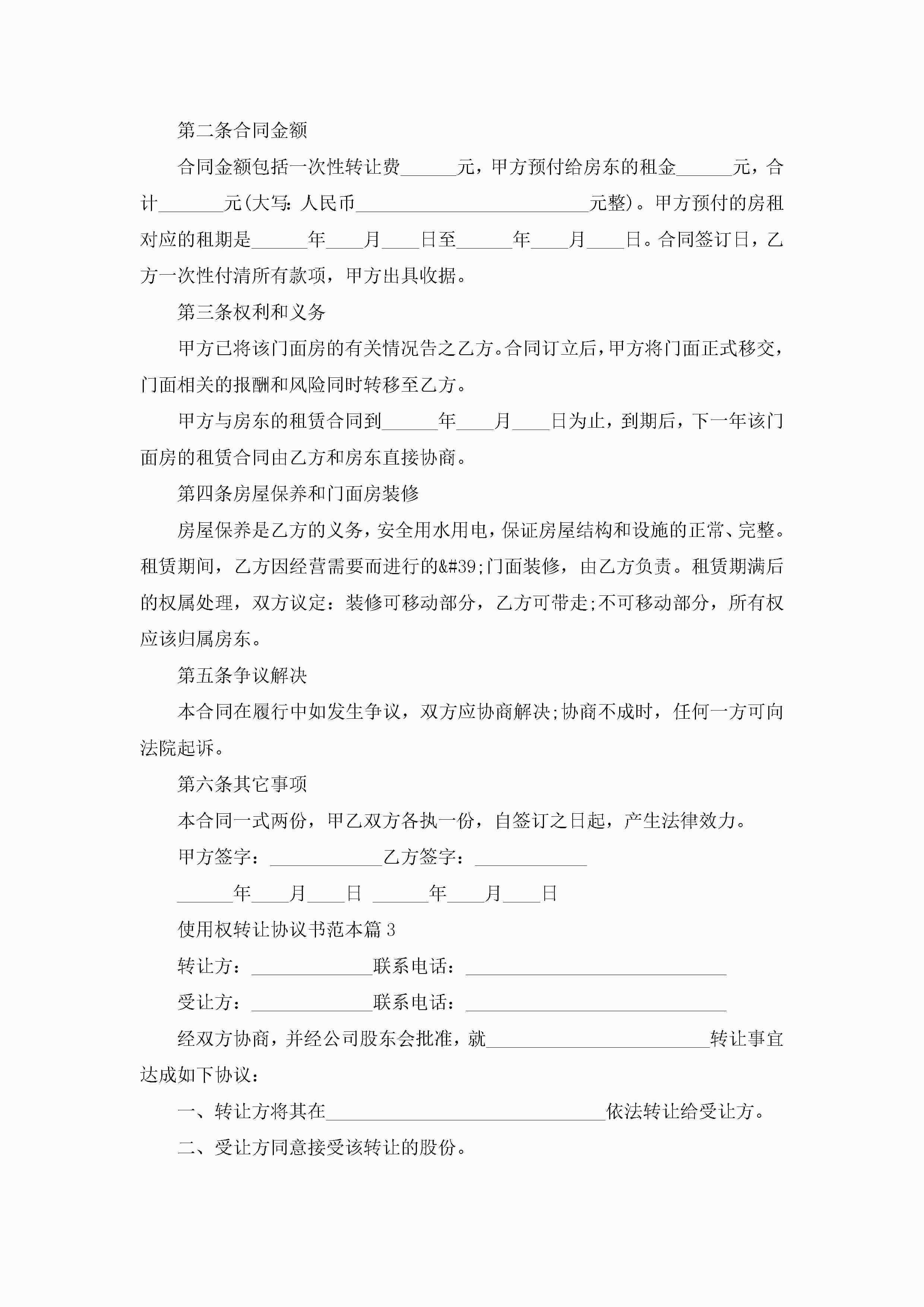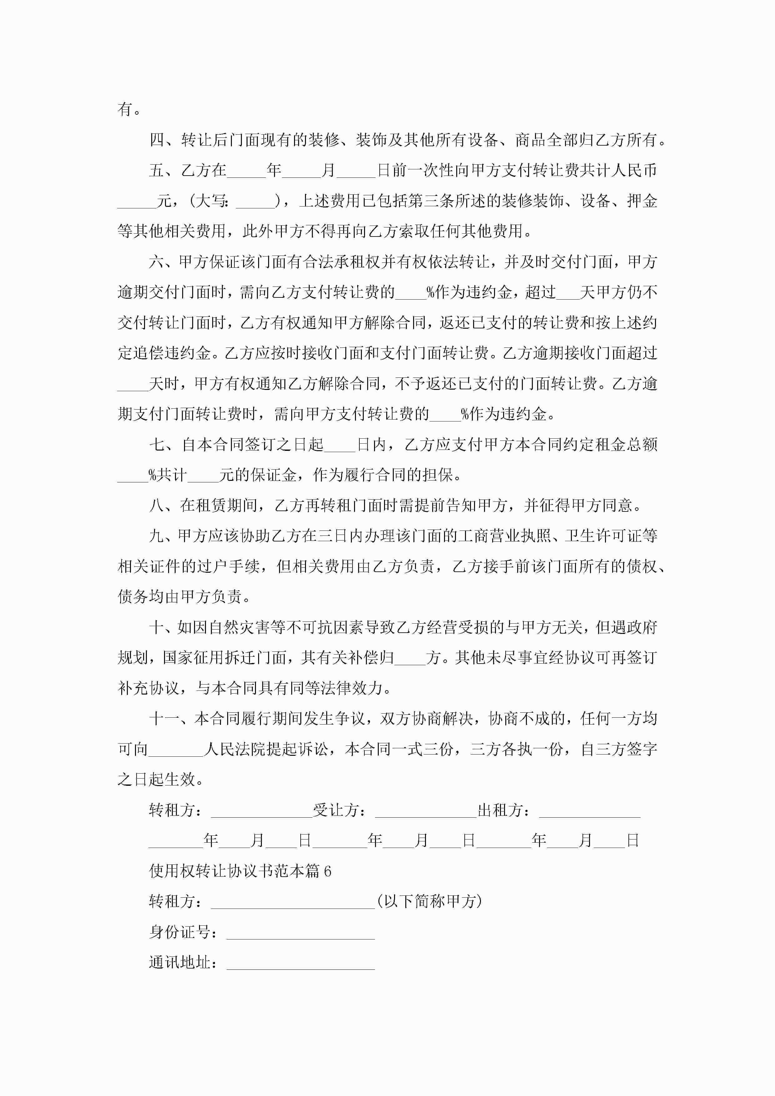 使用权转让协议书范本10篇精选jugei3月22日 12:38更新关注210 使用权转让协议书范本10篇精选此内容为付费资源,请付费后查看¥10.9 单篇文档限时特惠¥15个人会员开通企业会员开通立即下载无需登陆!可直接快捷下载单个模板付费资源© 版权声明THE ENDWord模板# 实用文档# 实用模板# 信函模板# 协议书 如有问题,可点击最底部“联系我们”联系客服 分享QQ空间微博QQ好友海报分享复制链接收藏