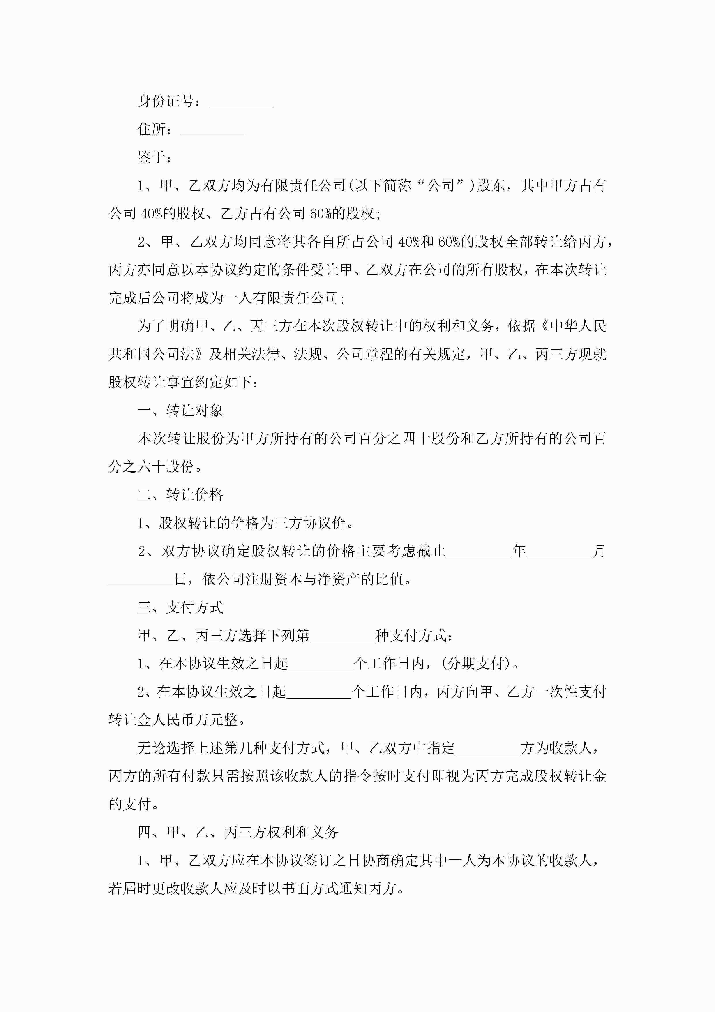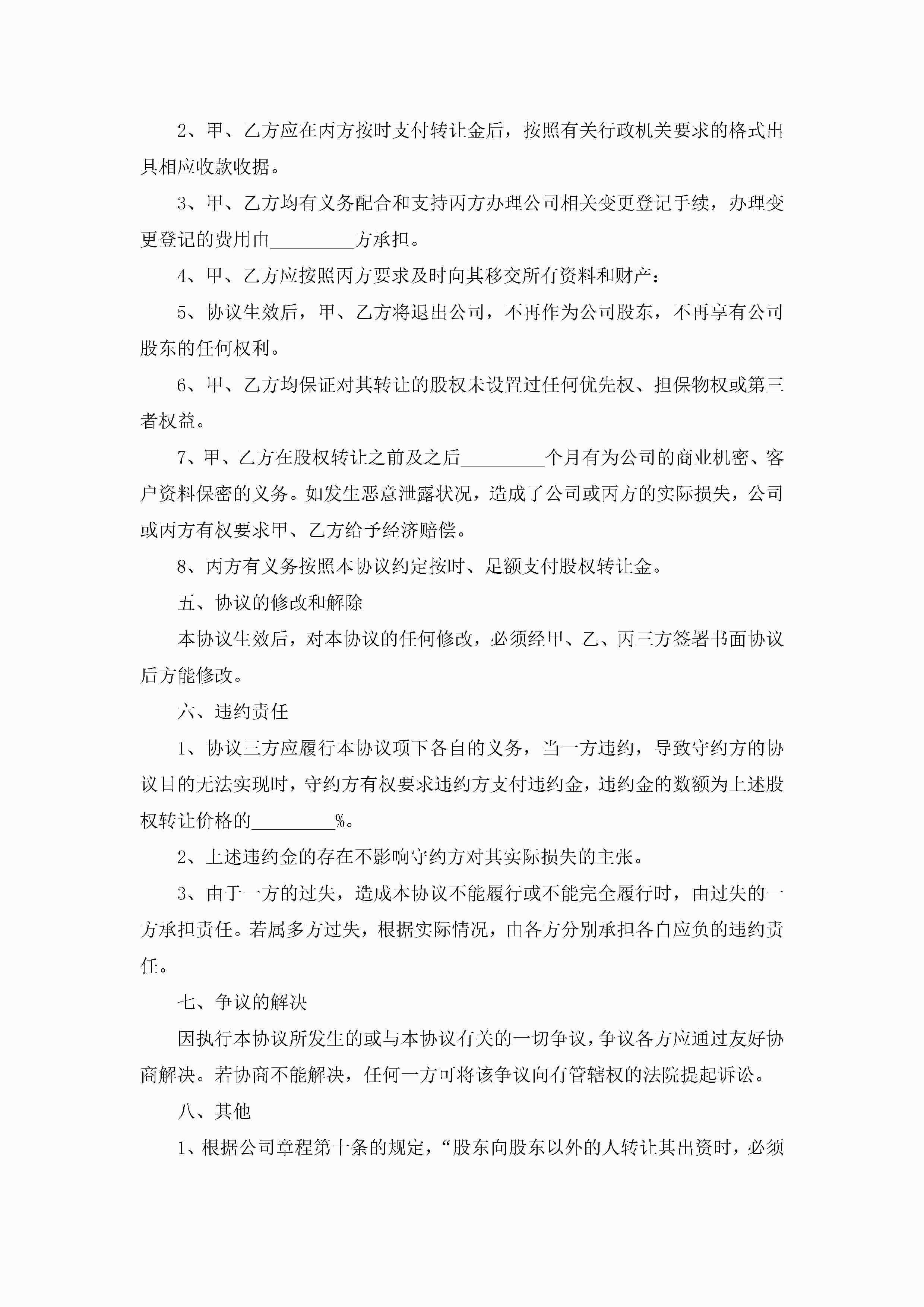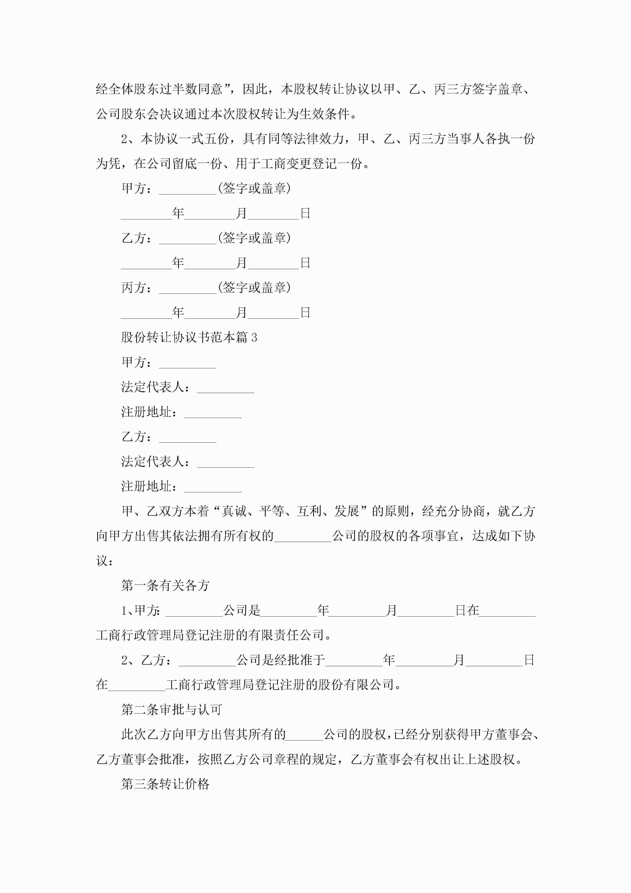 股份转让协议书范本10篇精选jugei3月22日 12:38更新关注258 股份转让协议书范本10篇精选此内容为付费资源,请付费后查看¥10.9 单篇文档限时特惠¥15个人会员开通企业会员开通立即下载无需登陆!可直接快捷下载单个模板付费资源© 版权声明THE ENDWord模板# 实用文档# 实用模板# 信函模板# 协议书 如有问题,可点击最底部“联系我们”联系客服 分享QQ空间微博QQ好友海报分享复制链接收藏