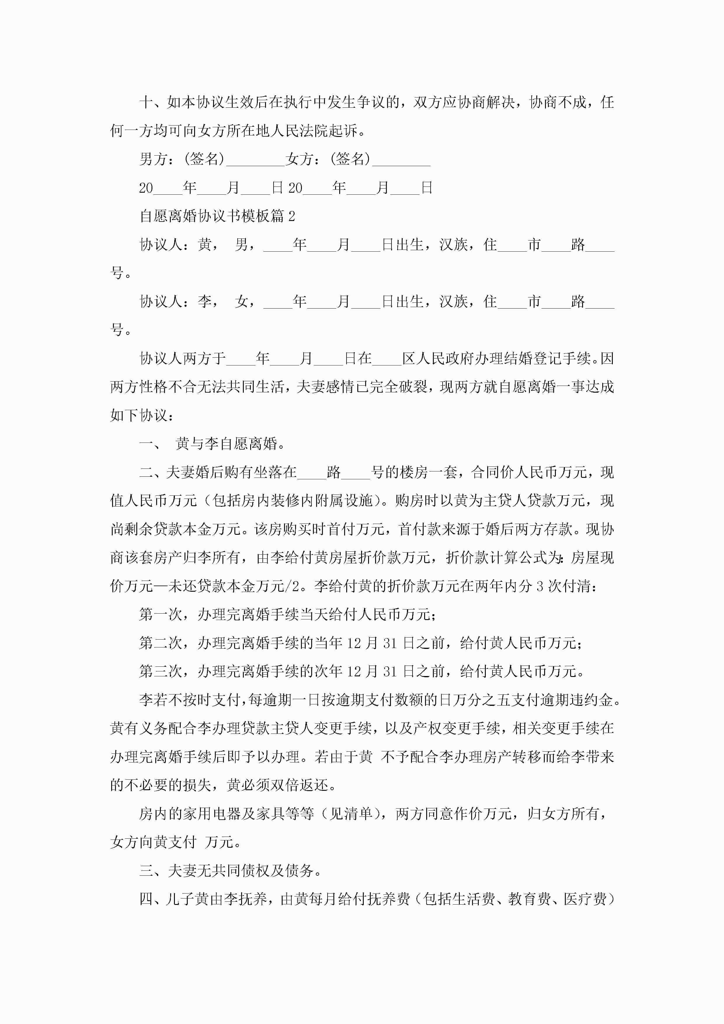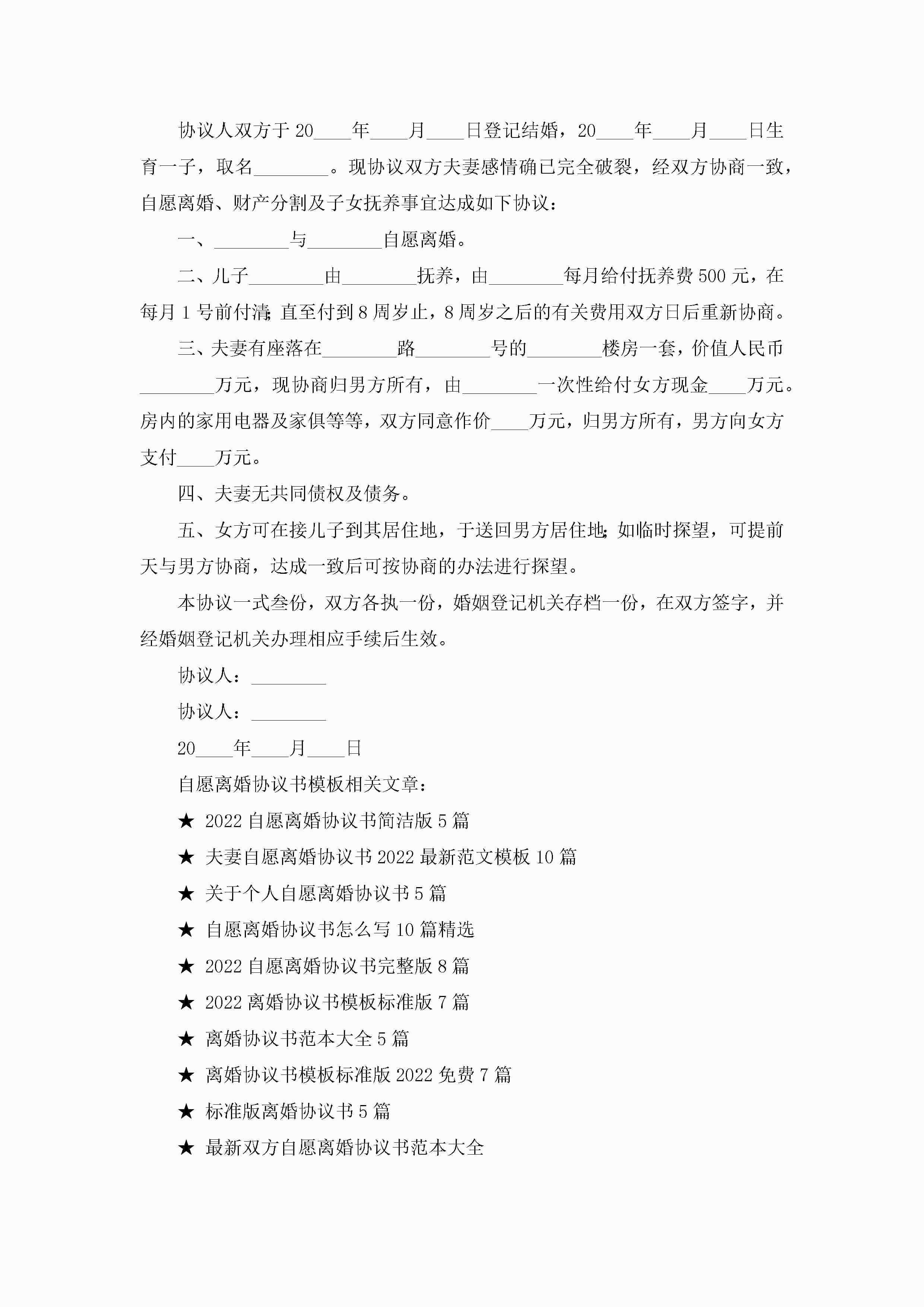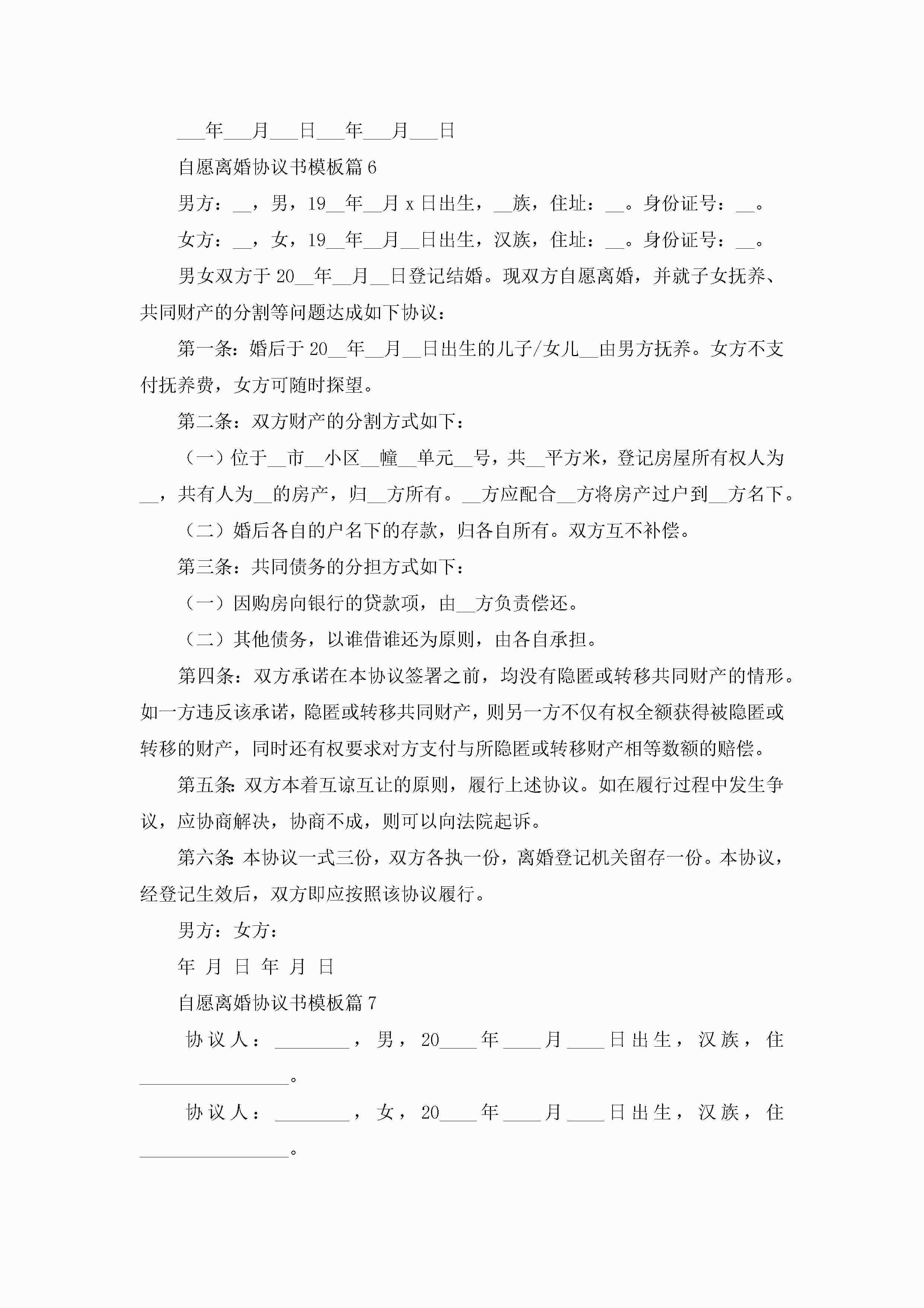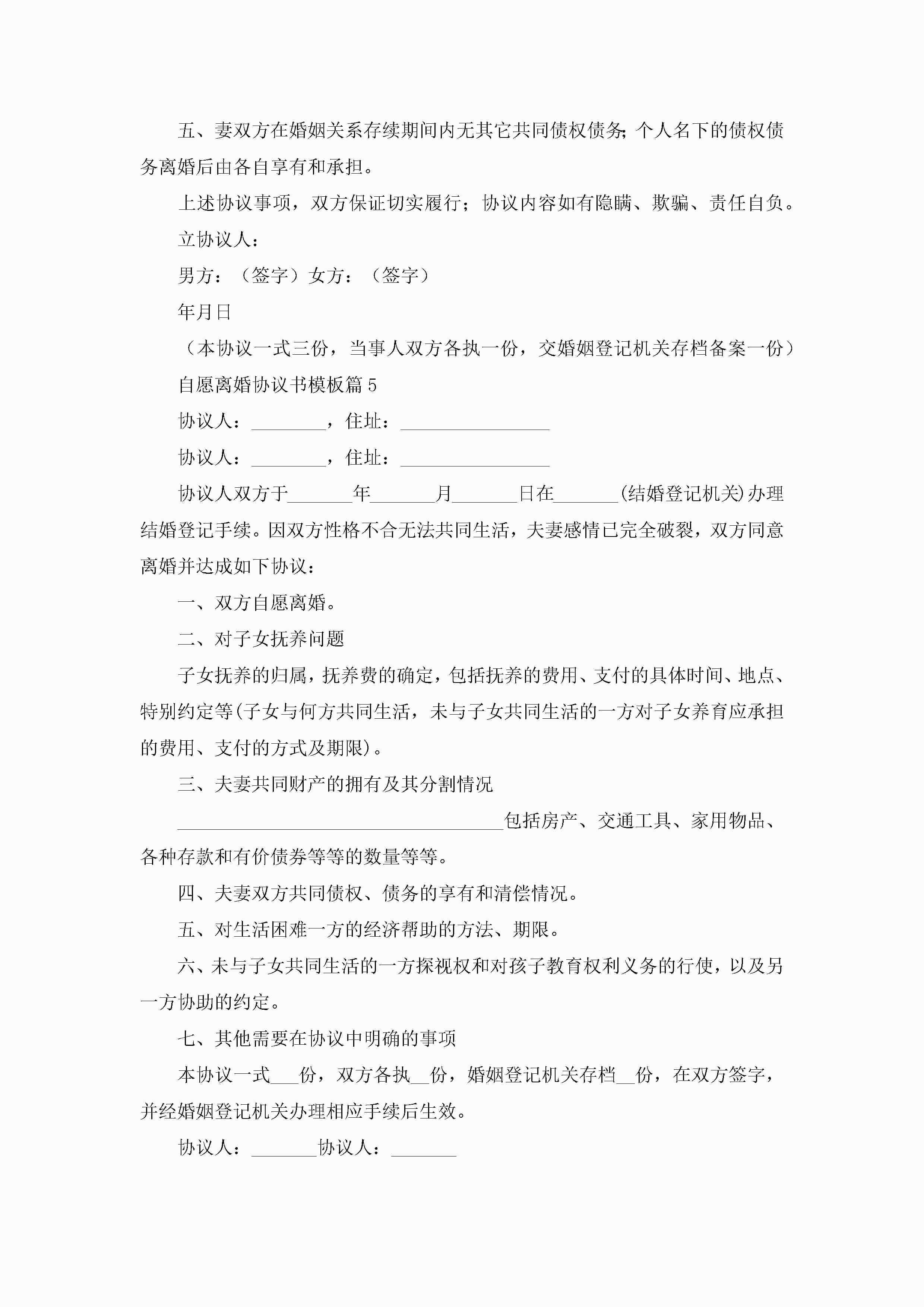 自愿离婚协议书模板7篇jugei3月22日 12:38更新关注190 自愿离婚协议书模板7篇此内容为付费资源,请付费后查看¥10.9 单篇文档限时特惠¥15个人会员开通企业会员开通立即下载无需登陆!可直接快捷下载单个模板付费资源© 版权声明THE ENDWord模板# 实用文档# 实用模板# 信函模板# 协议书 如有问题,可点击最底部“联系我们”联系客服 分享QQ空间微博QQ好友海报分享复制链接收藏