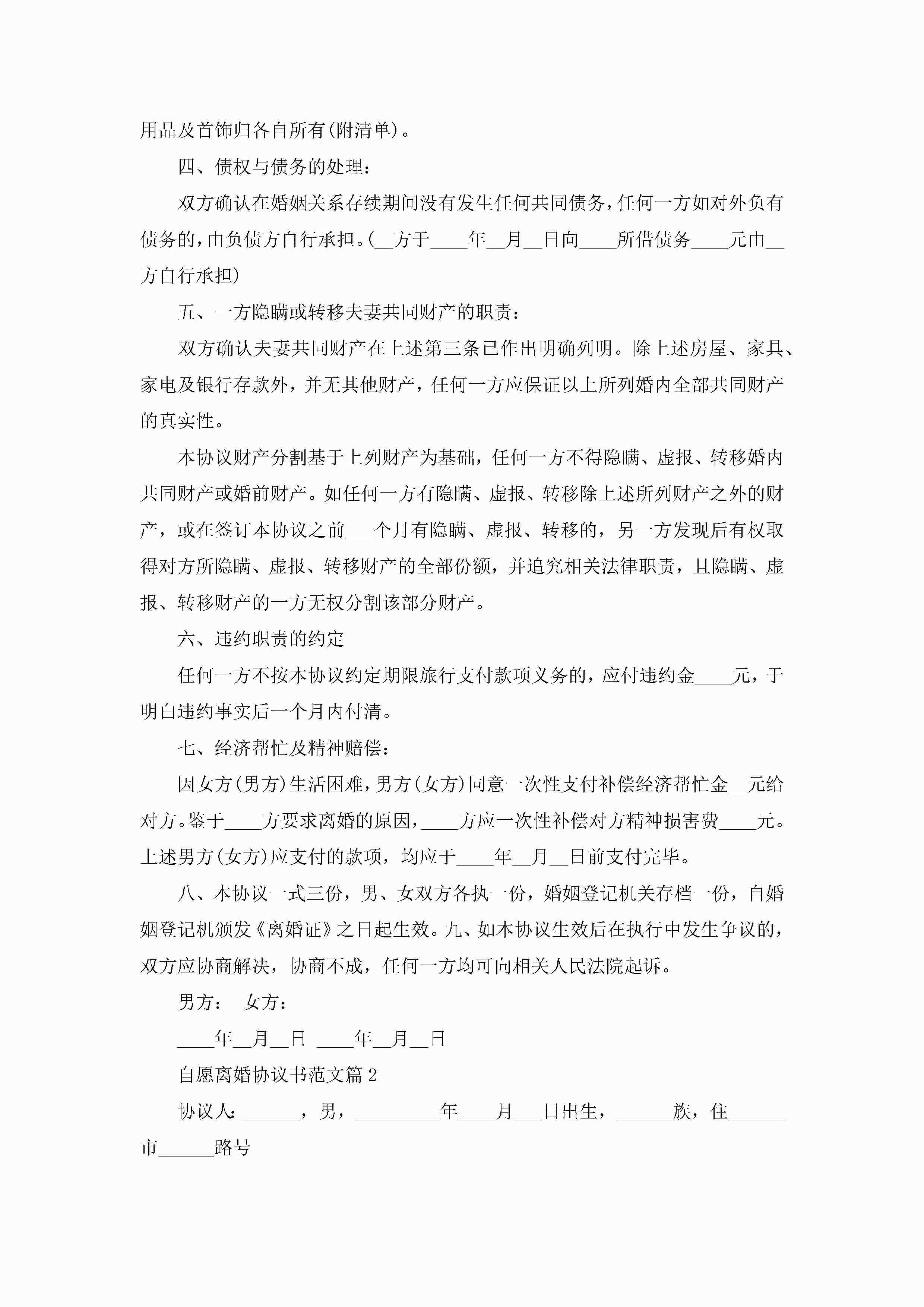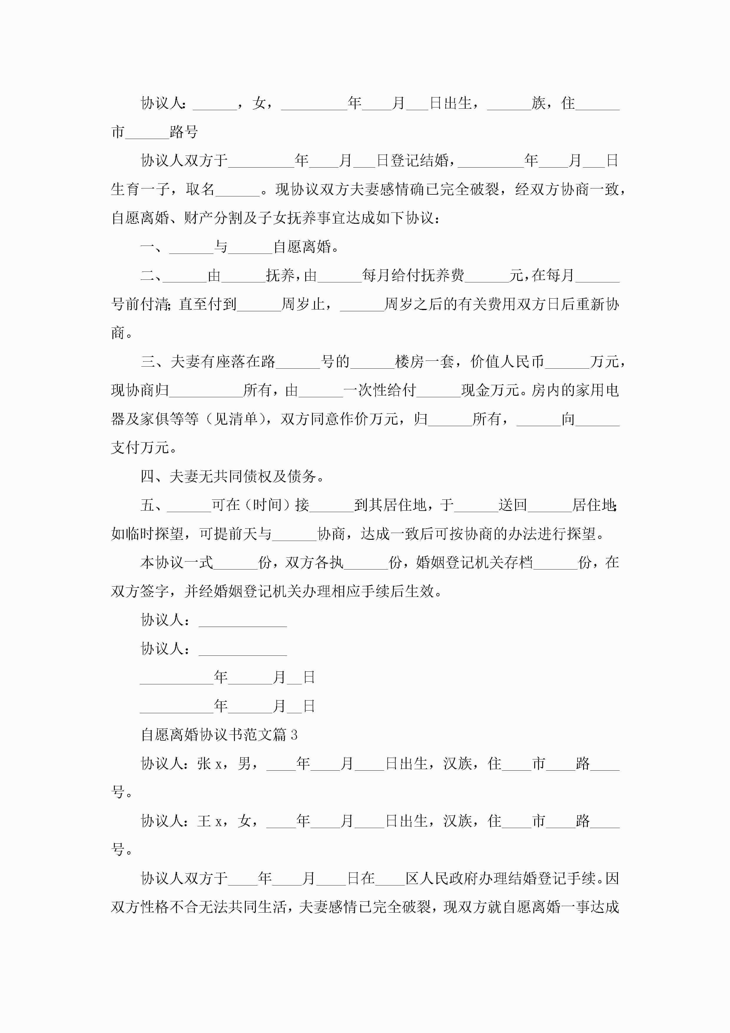 自愿离婚协议书怎么写(精选12篇)jugei3月22日 12:38更新关注284 自愿离婚协议书怎么写(精选12篇)此内容为付费资源,请付费后查看¥10.9 单篇文档限时特惠¥15个人会员开通企业会员开通立即下载无需登陆!可直接快捷下载单个模板付费资源© 版权声明THE ENDWord模板# 实用文档# 实用模板# 信函模板# 协议书 如有问题,可点击最底部“联系我们”联系客服 分享QQ空间微博QQ好友海报分享复制链接收藏